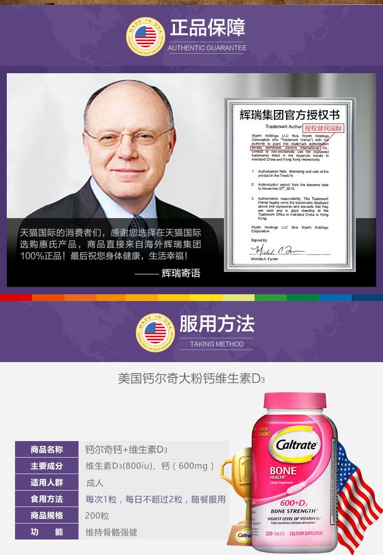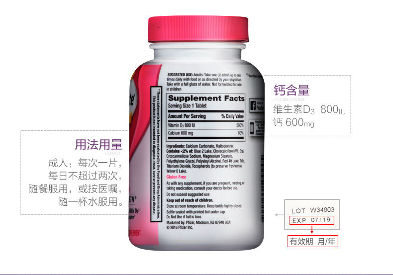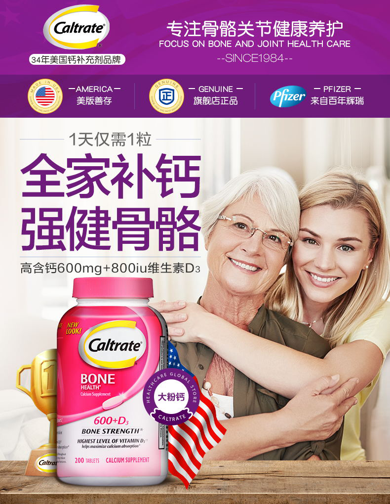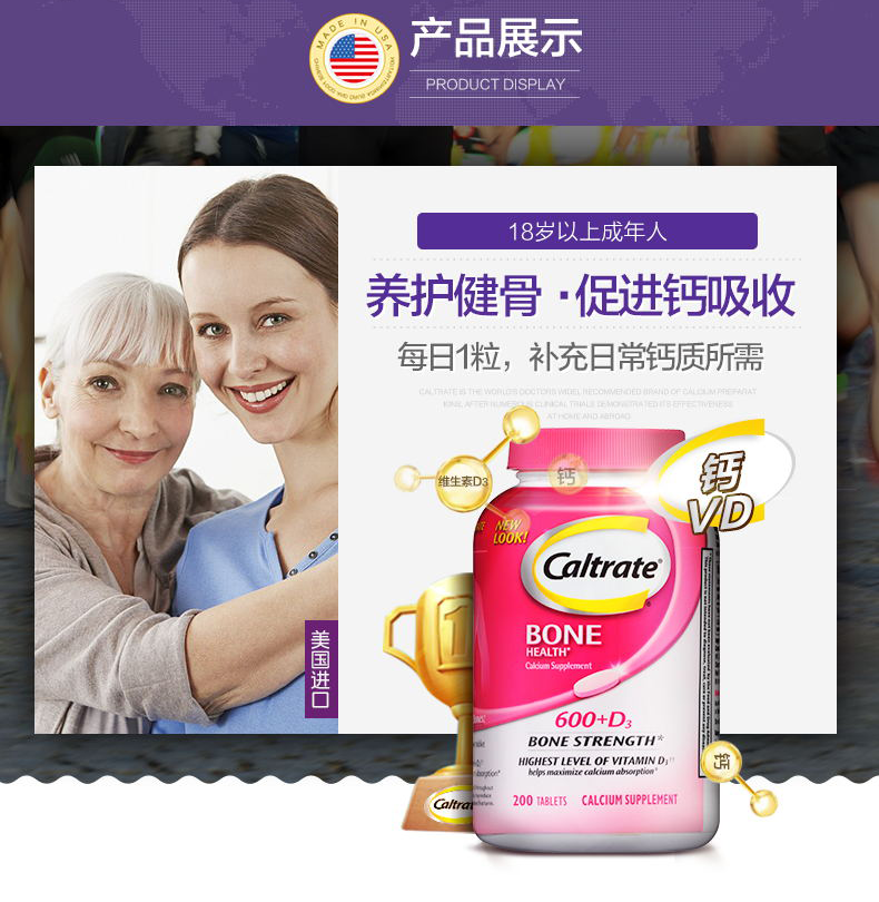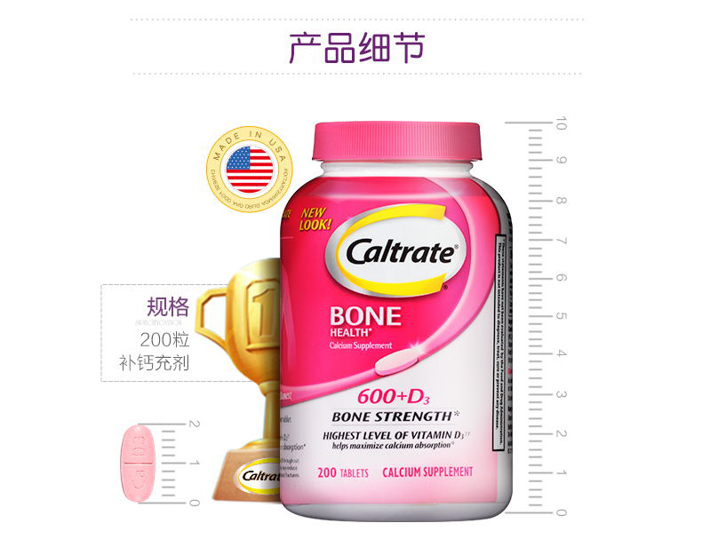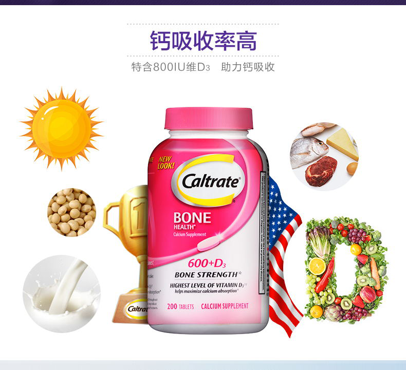 【保税仓】美国 CALTRATE钙尔奇 钙+维生素D3 200片/瓶 粉瓶