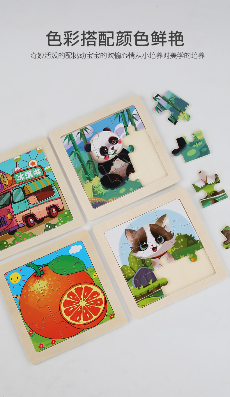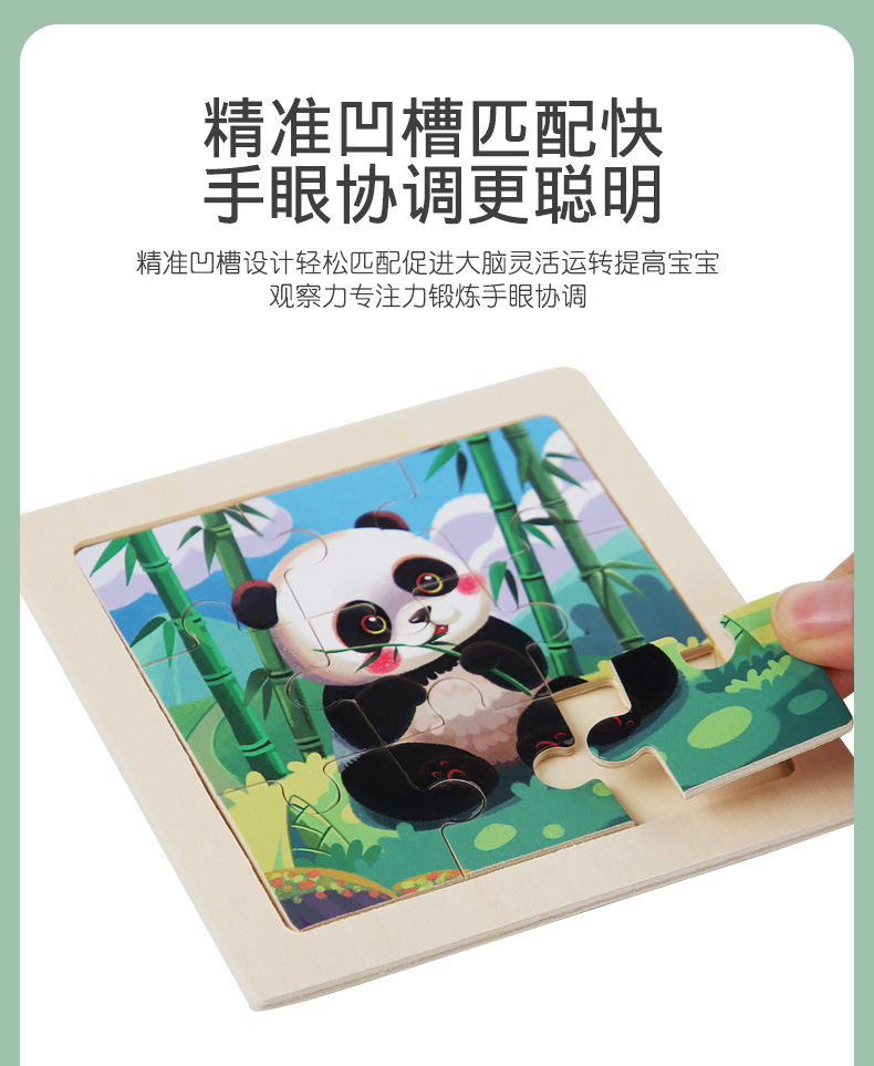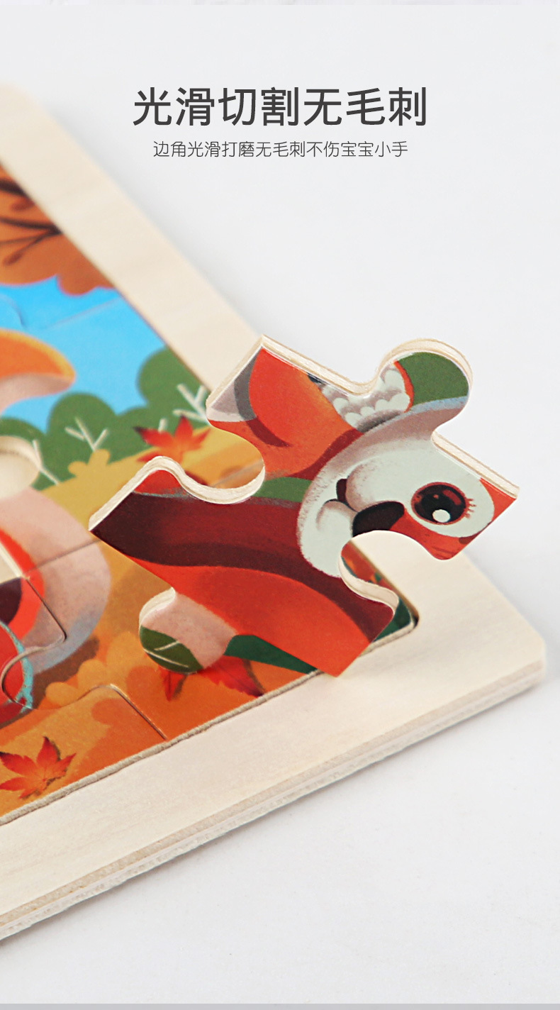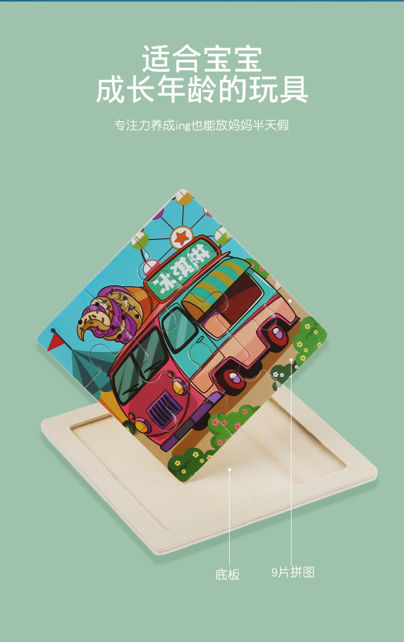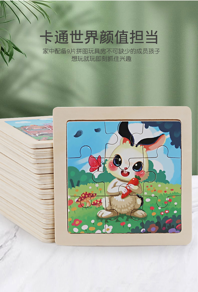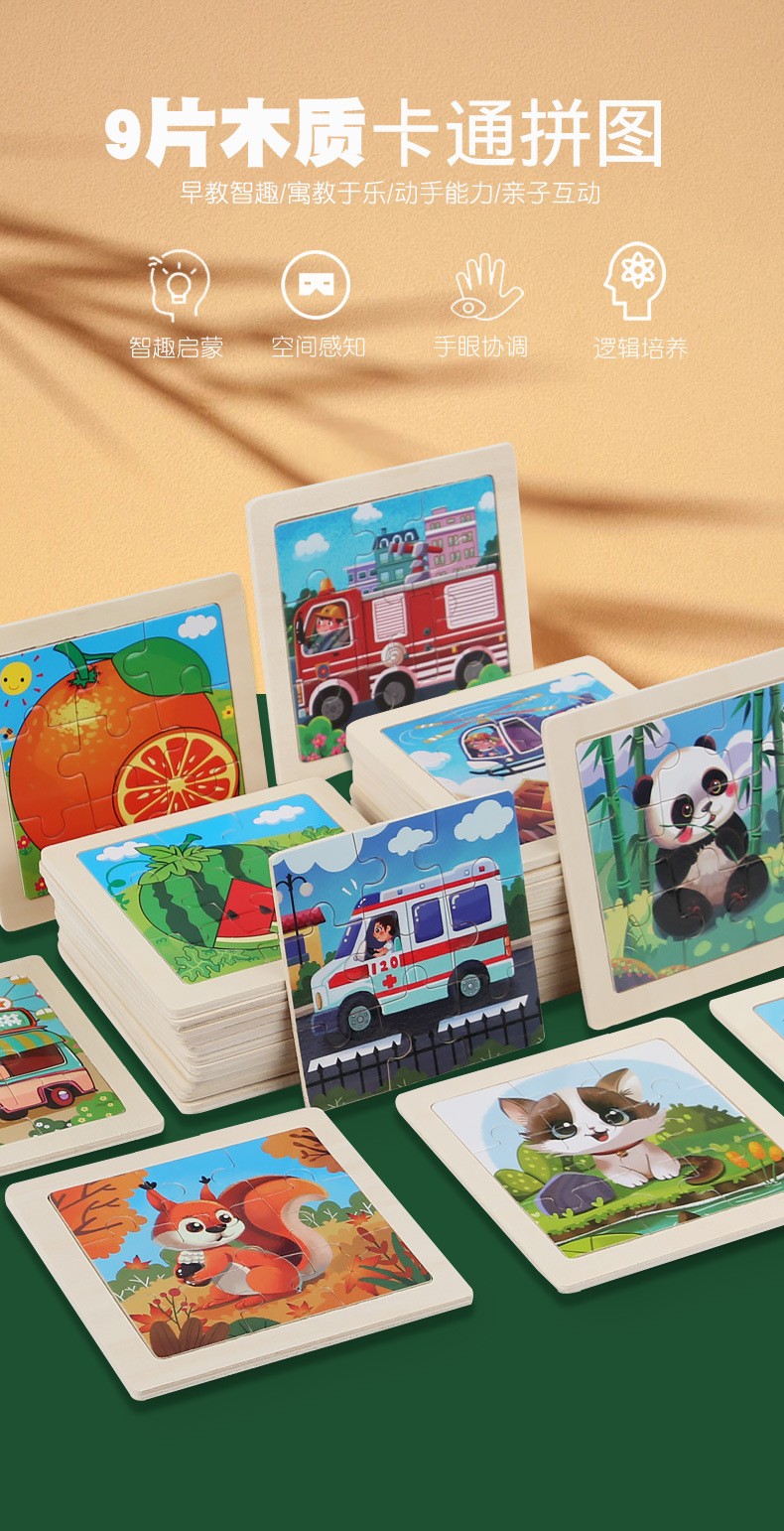 【16.8元/任选5件】儿童拼图卡通动物9片平面拼板婴幼儿早教启蒙认知木质制玩具