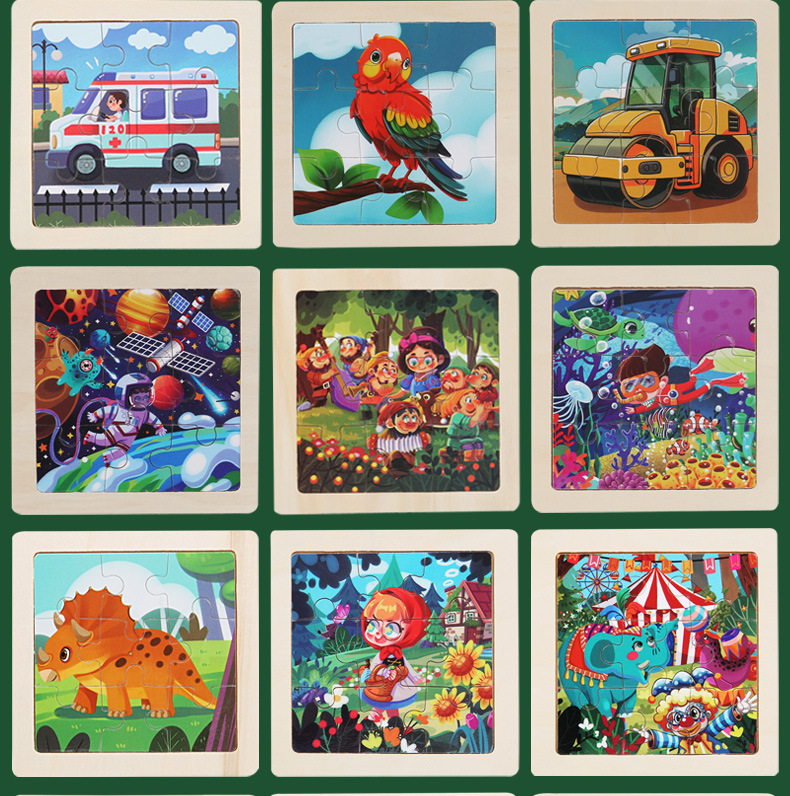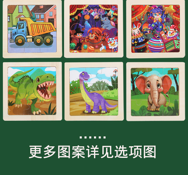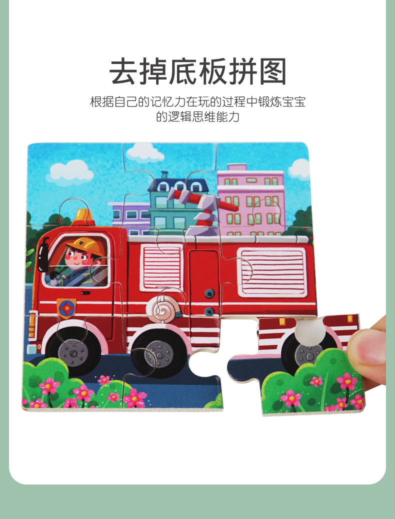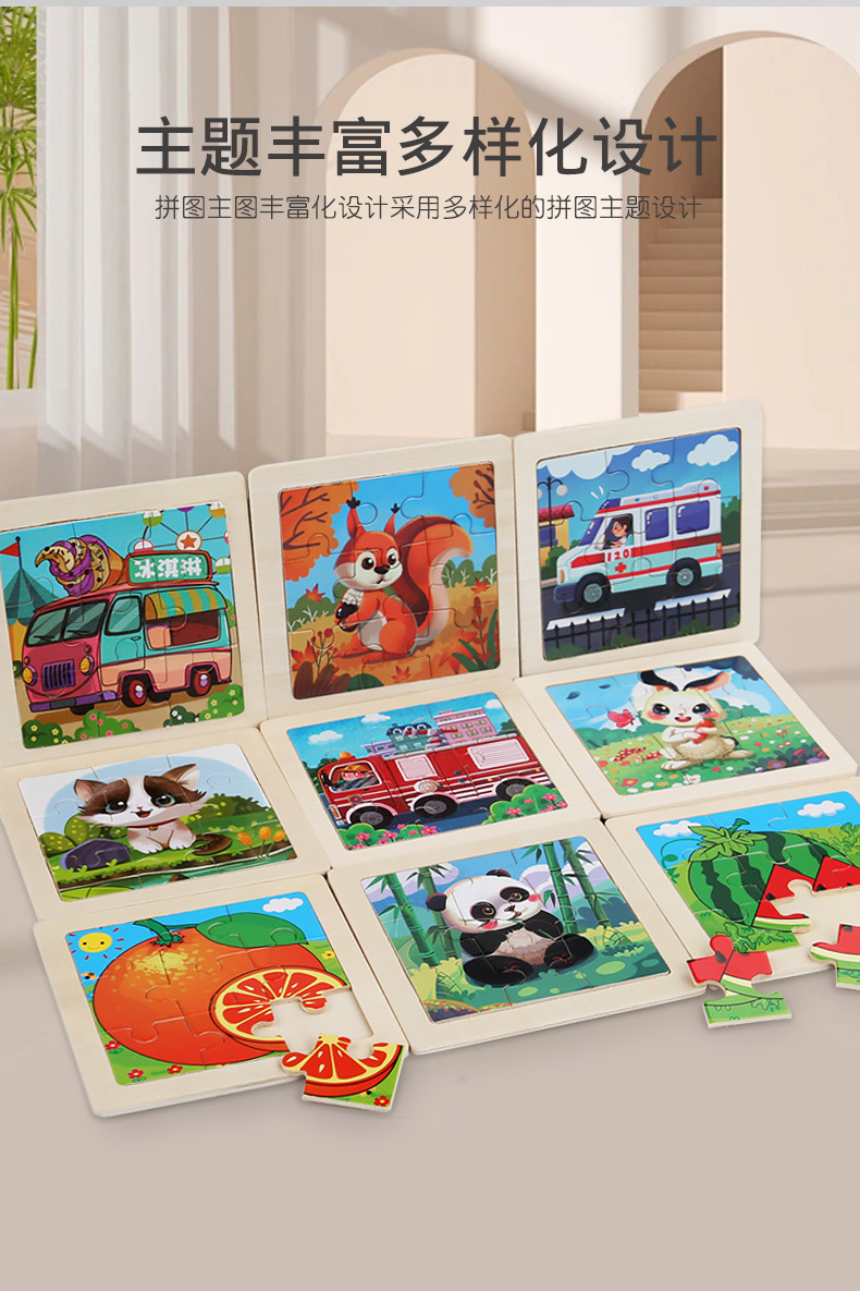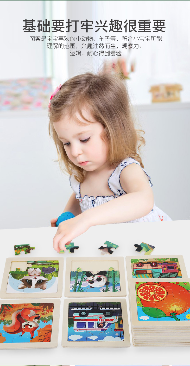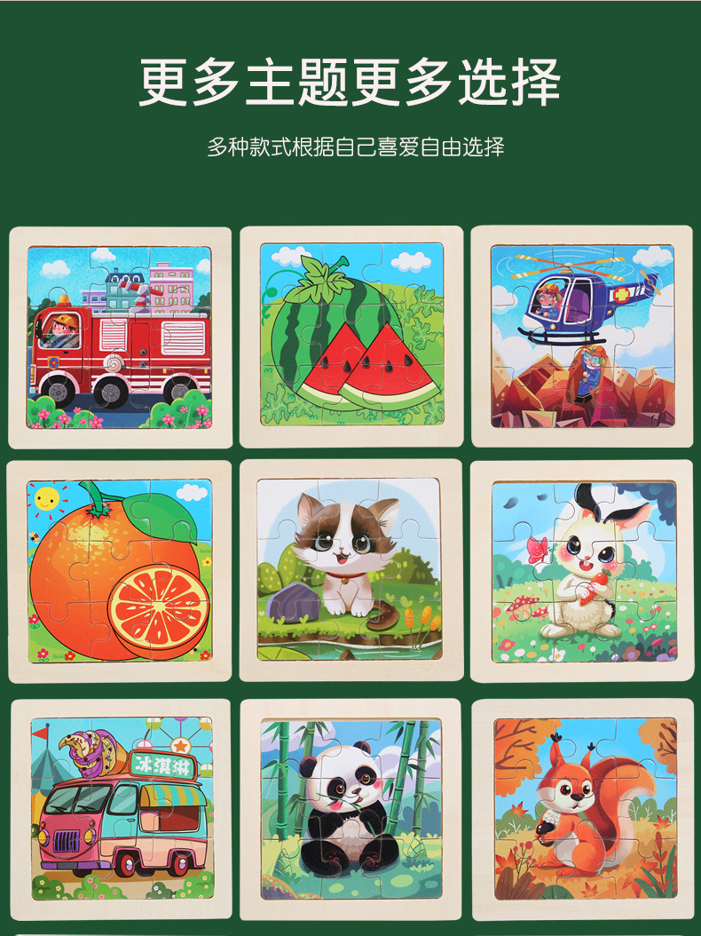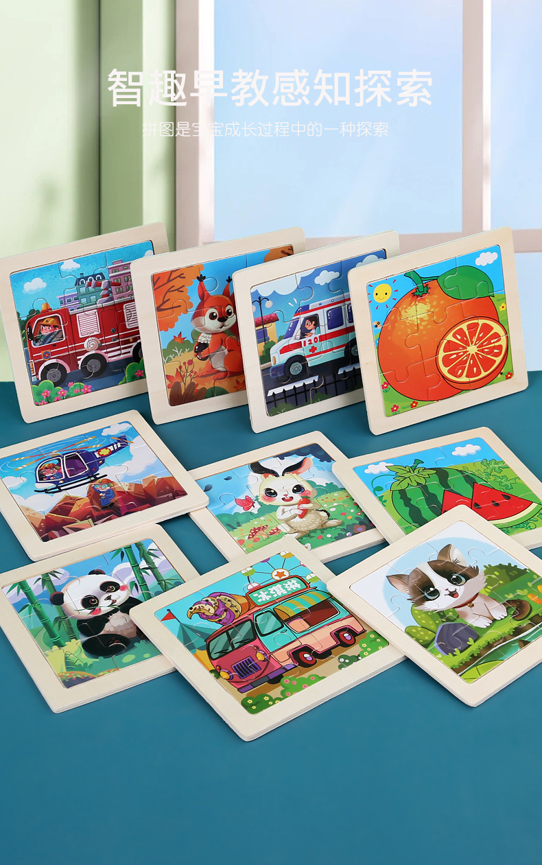 【16.8元/任选5件】儿童拼图卡通动物9片平面拼板婴幼儿早教启蒙认知木质制玩具