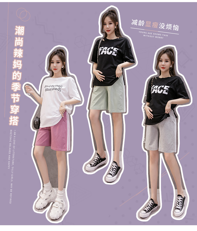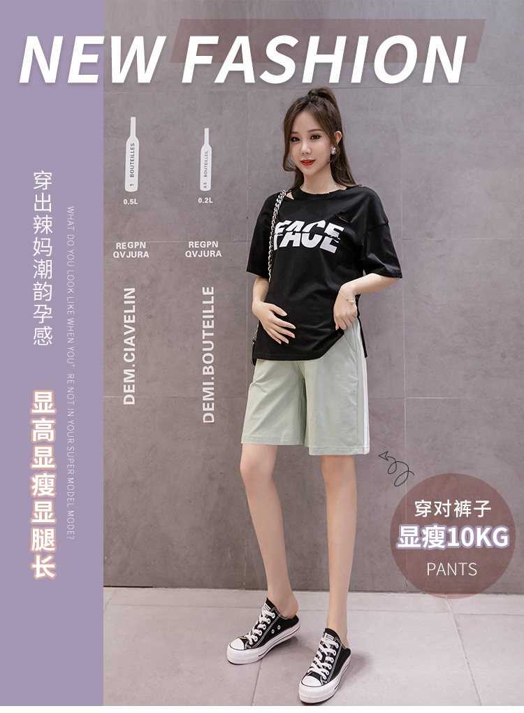 【孕妈潮搭 时尚舒适 】网红孕妇裤子小个子2022夏薄款外穿纯棉托腹五分运动短裤宽松 显瘦