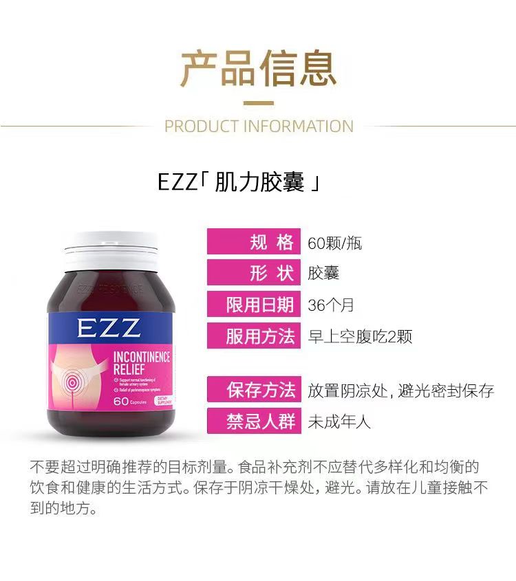 【保税仓】澳洲EZZ盆底肌紧致胶囊 南瓜子 蔓越莓 60粒瓶