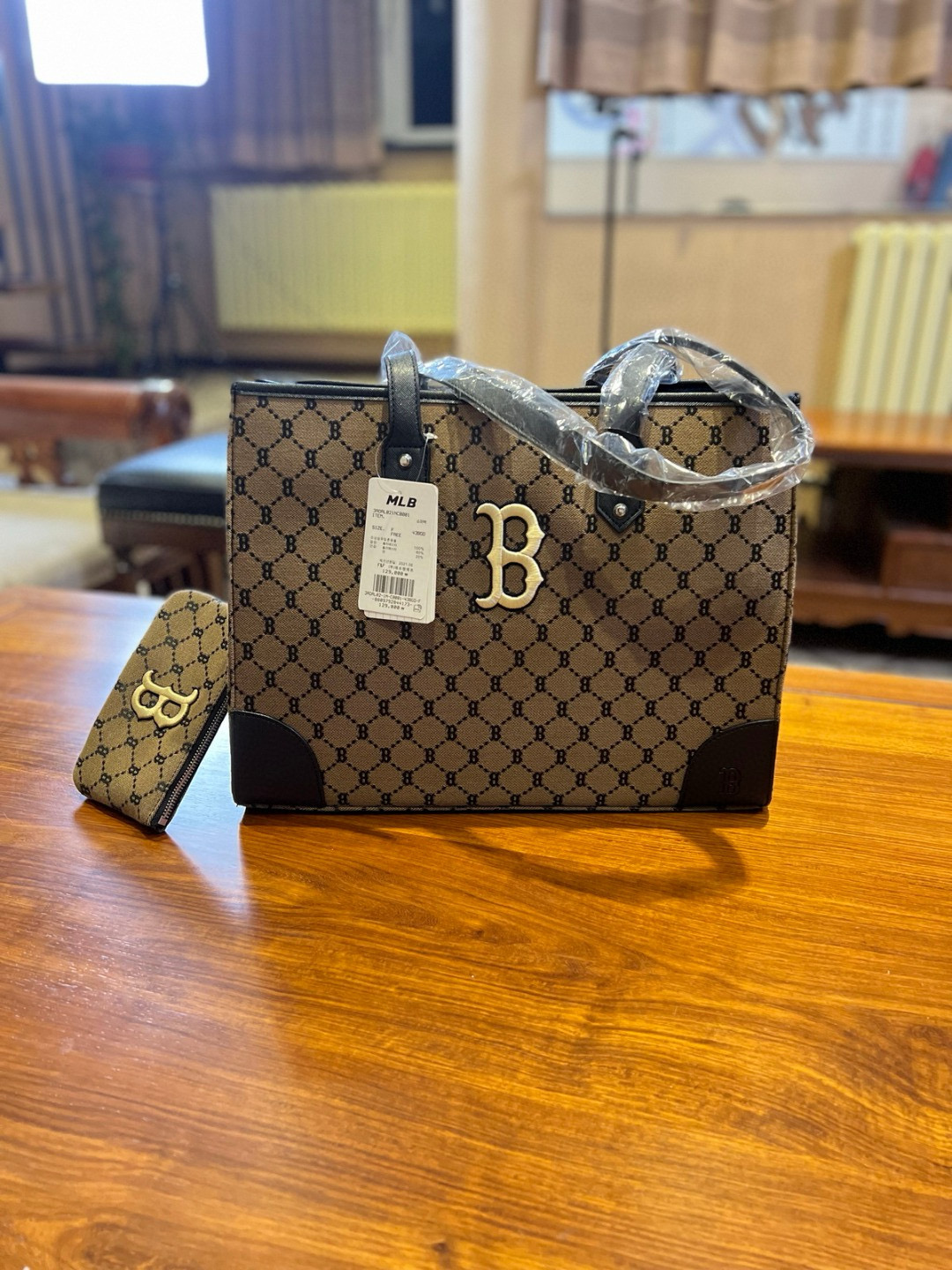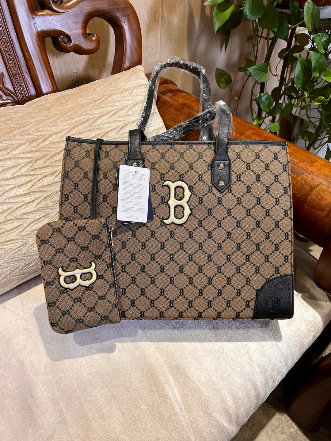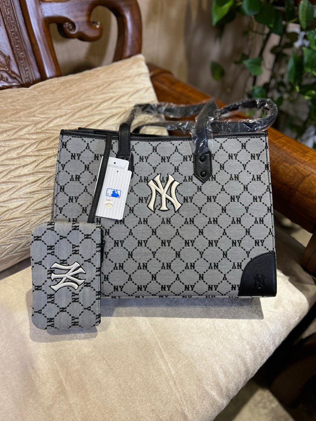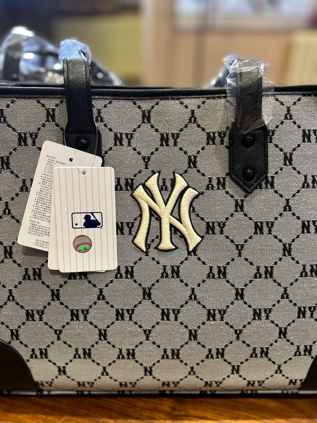 随便对比专柜!!之前买过的入手!!夏季必备!韩国MLB 复古老花满标手提单肩包, 超大号 二合一托特包加零钱包 超大托特包