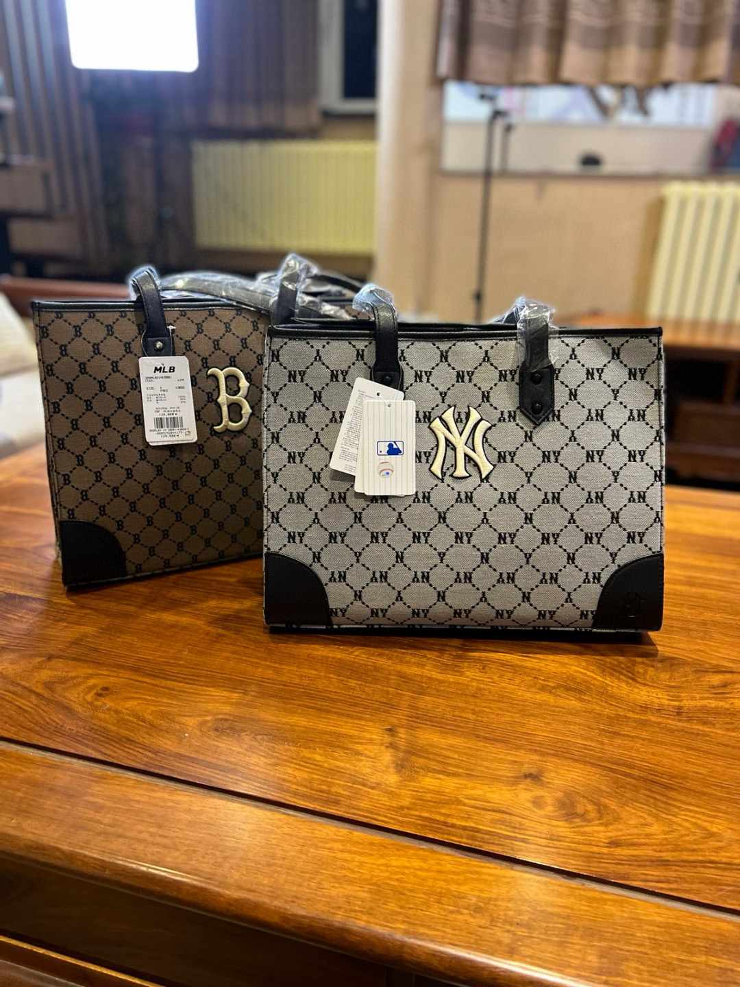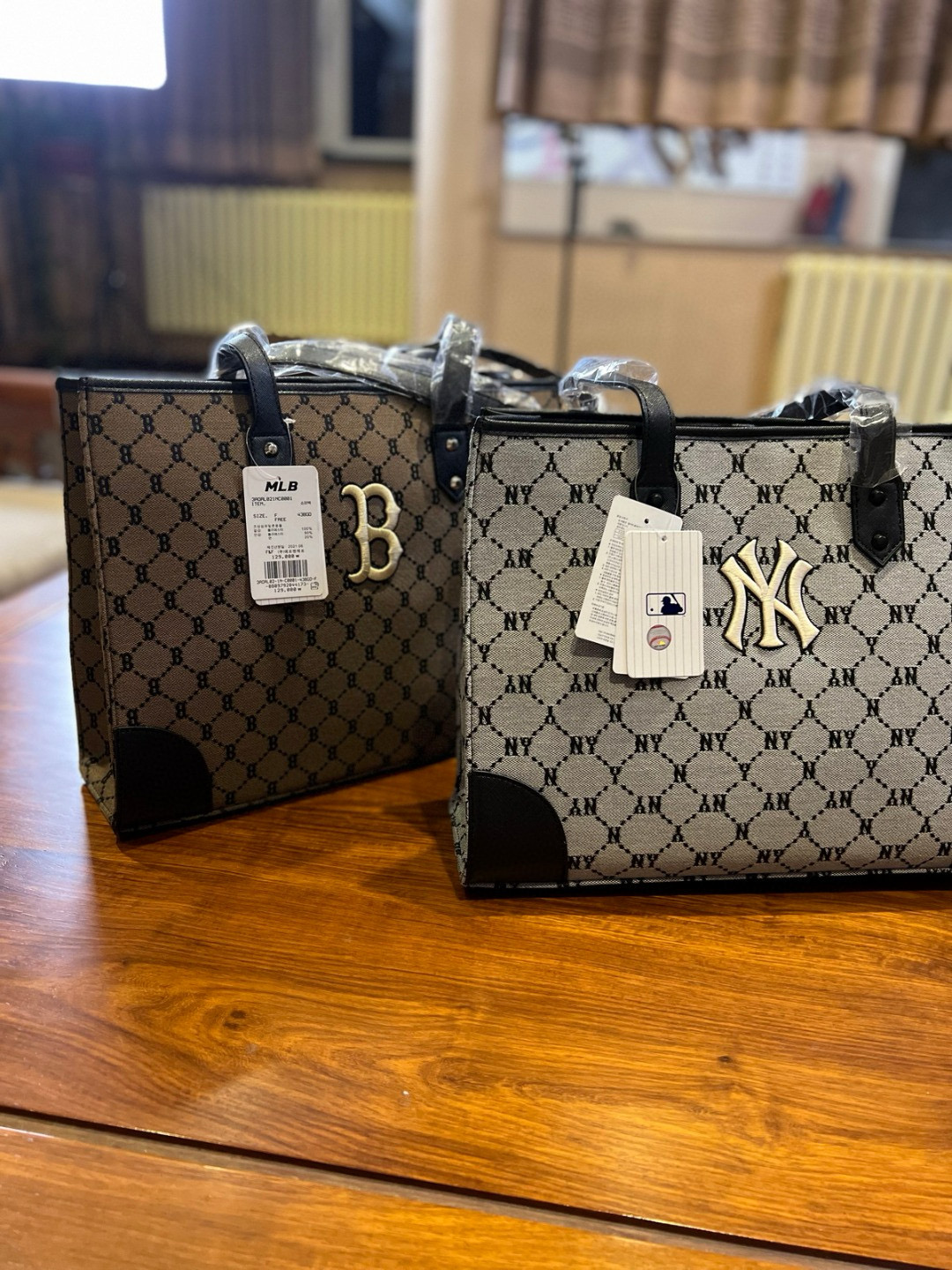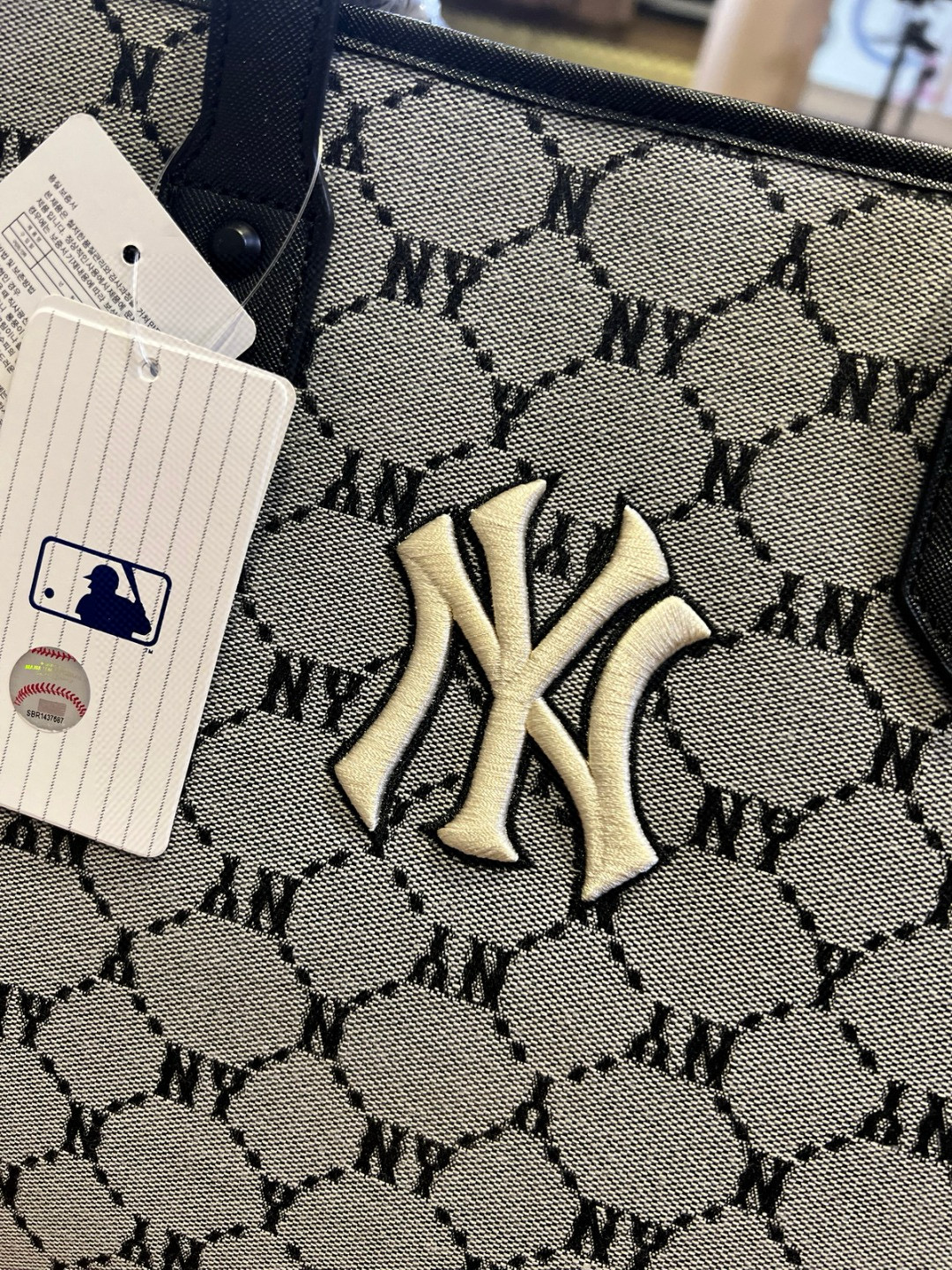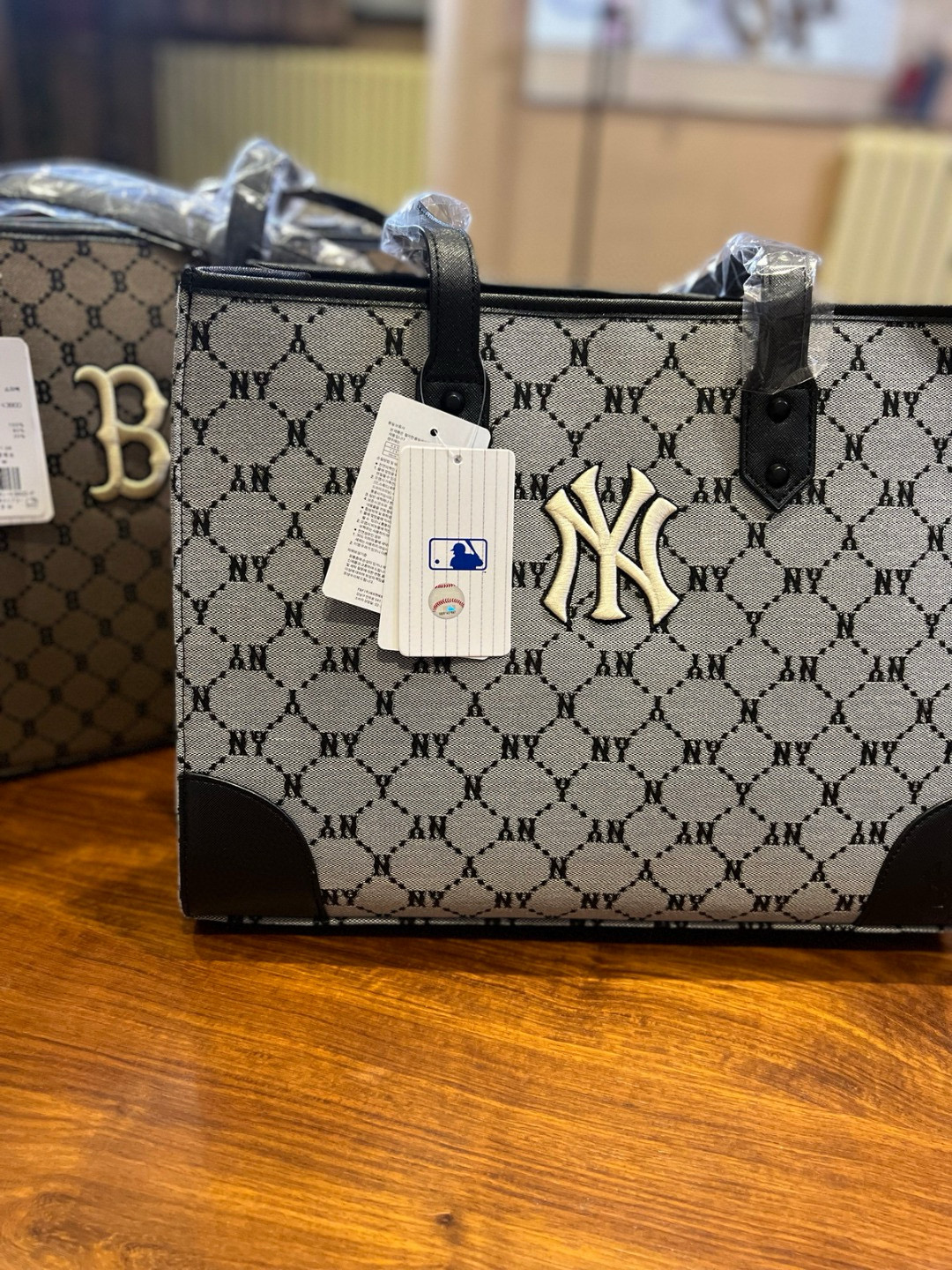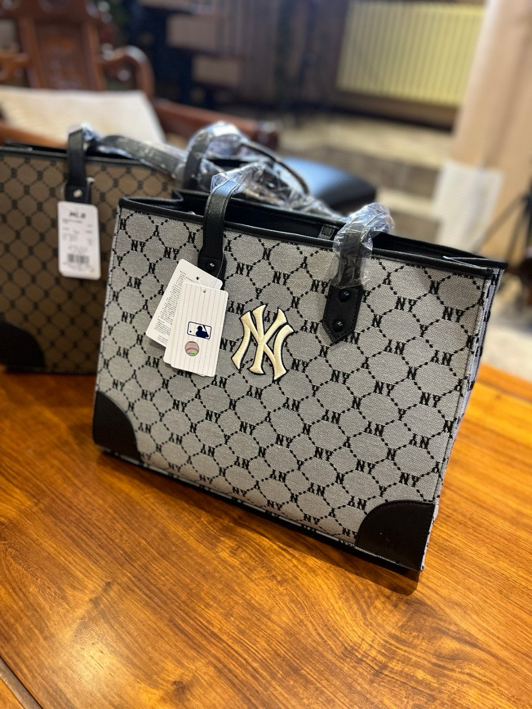 随便对比专柜!!之前买过的入手!!夏季必备!韩国MLB 复古老花满标手提单肩包, 超大号 二合一托特包加零钱包 超大托特包