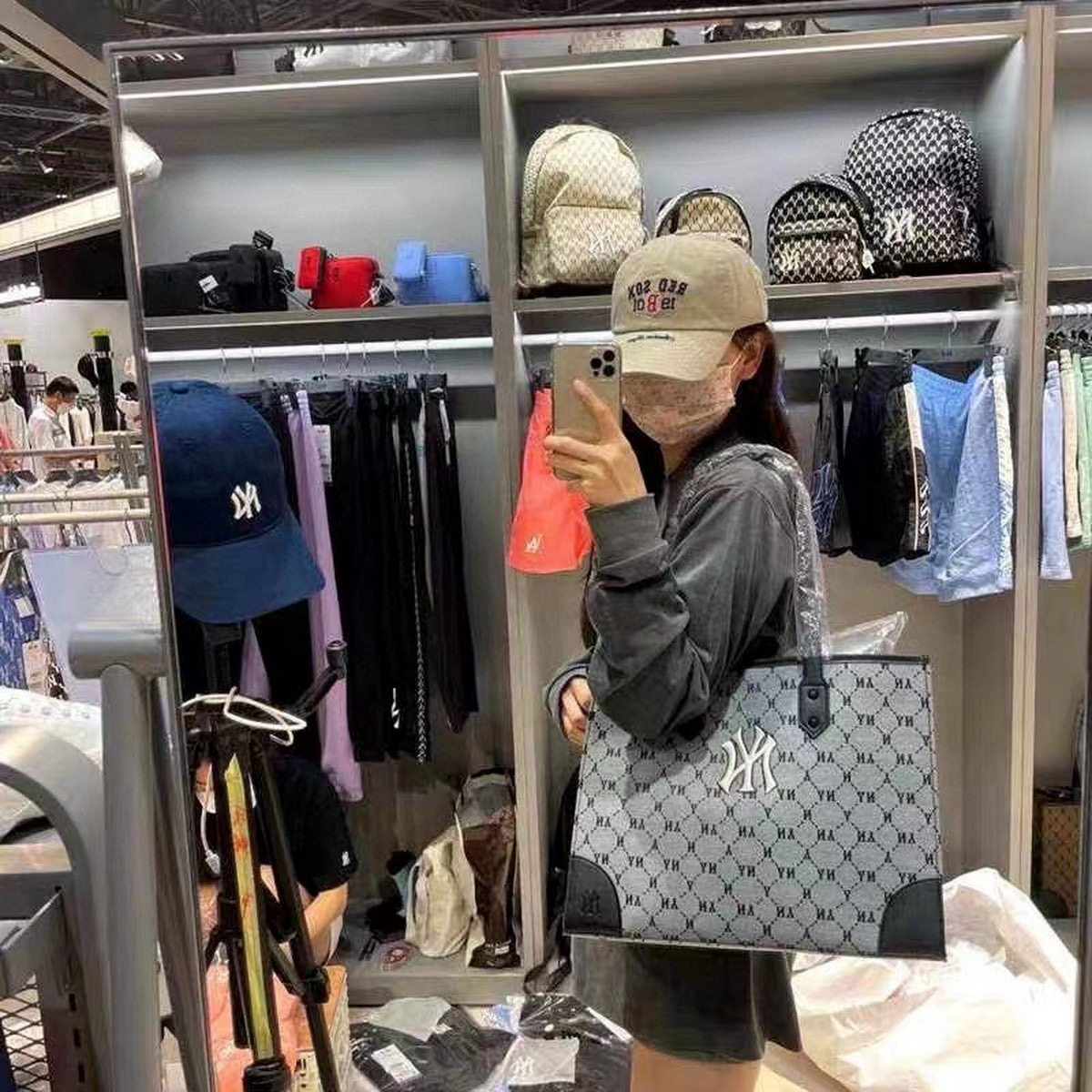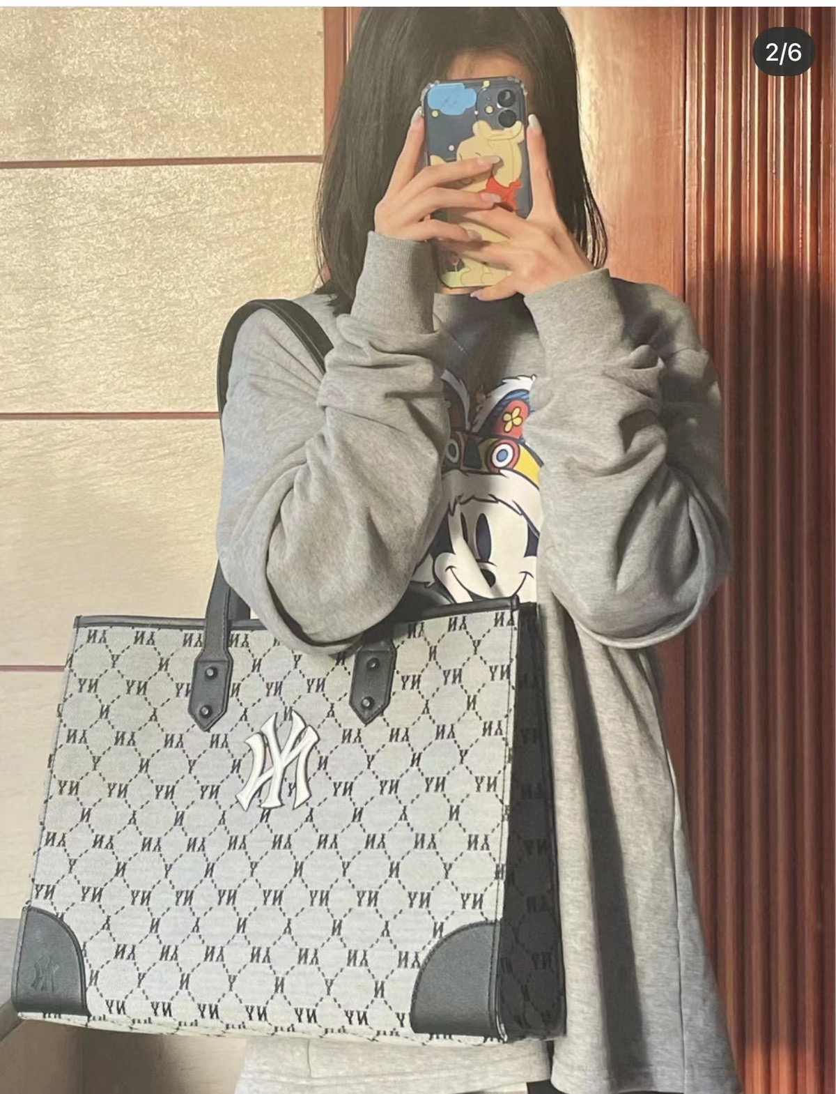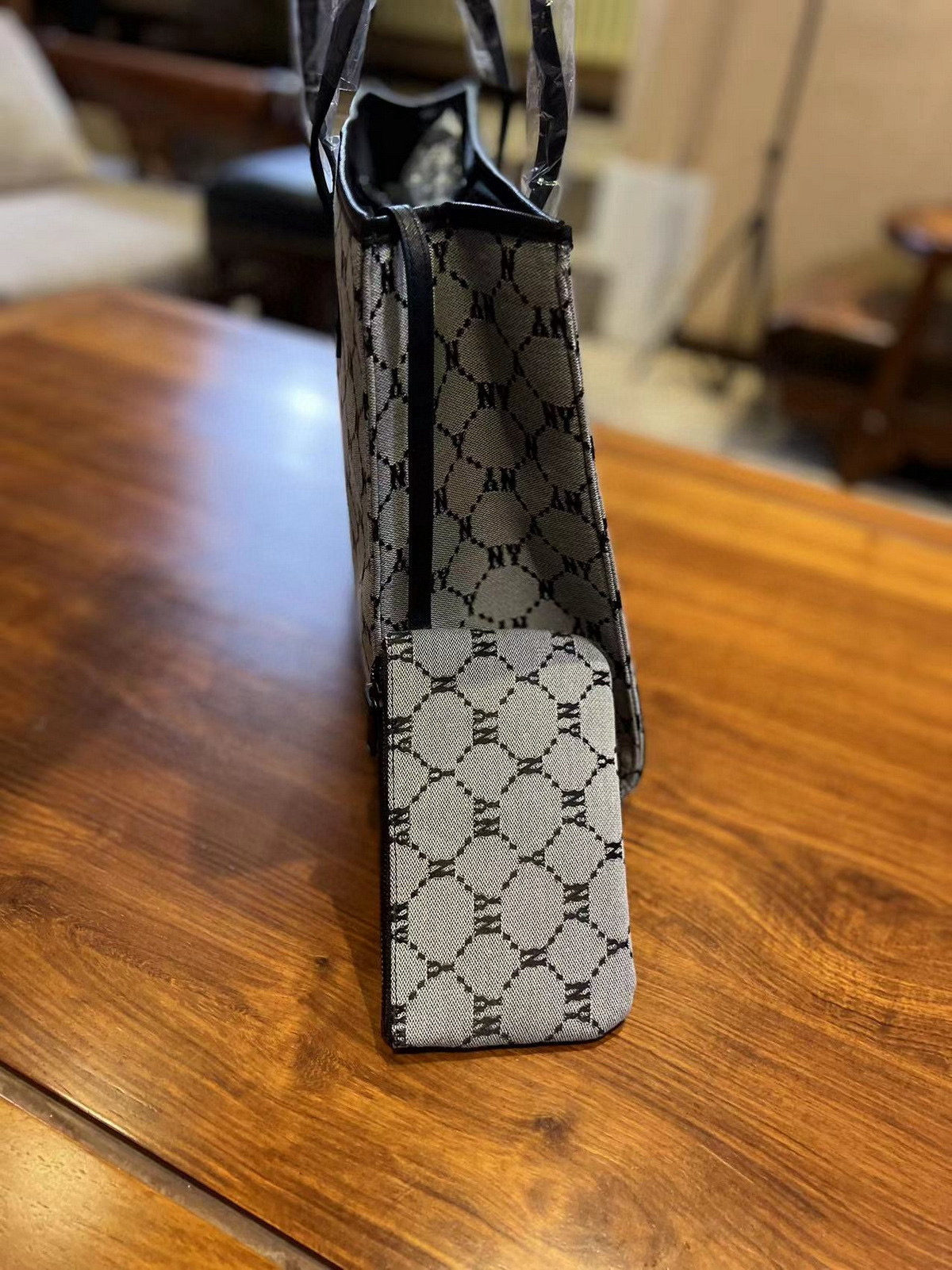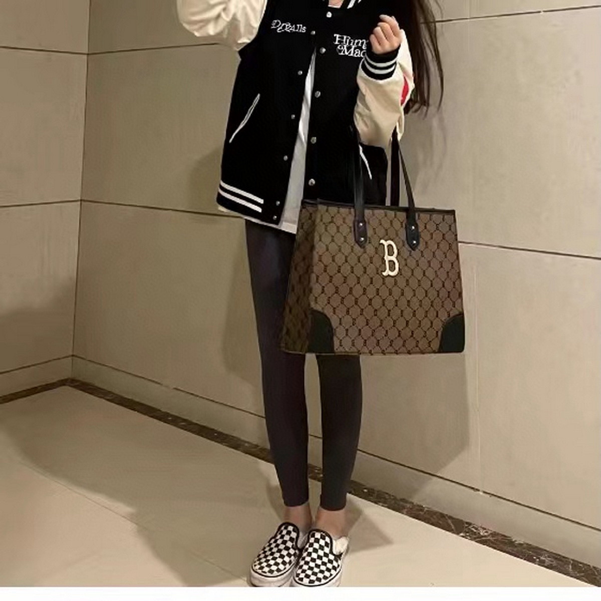 随便对比专柜!!之前买过的入手!!夏季必备!韩国MLB 复古老花满标手提单肩包, 超大号 二合一托特包加零钱包 超大托特包