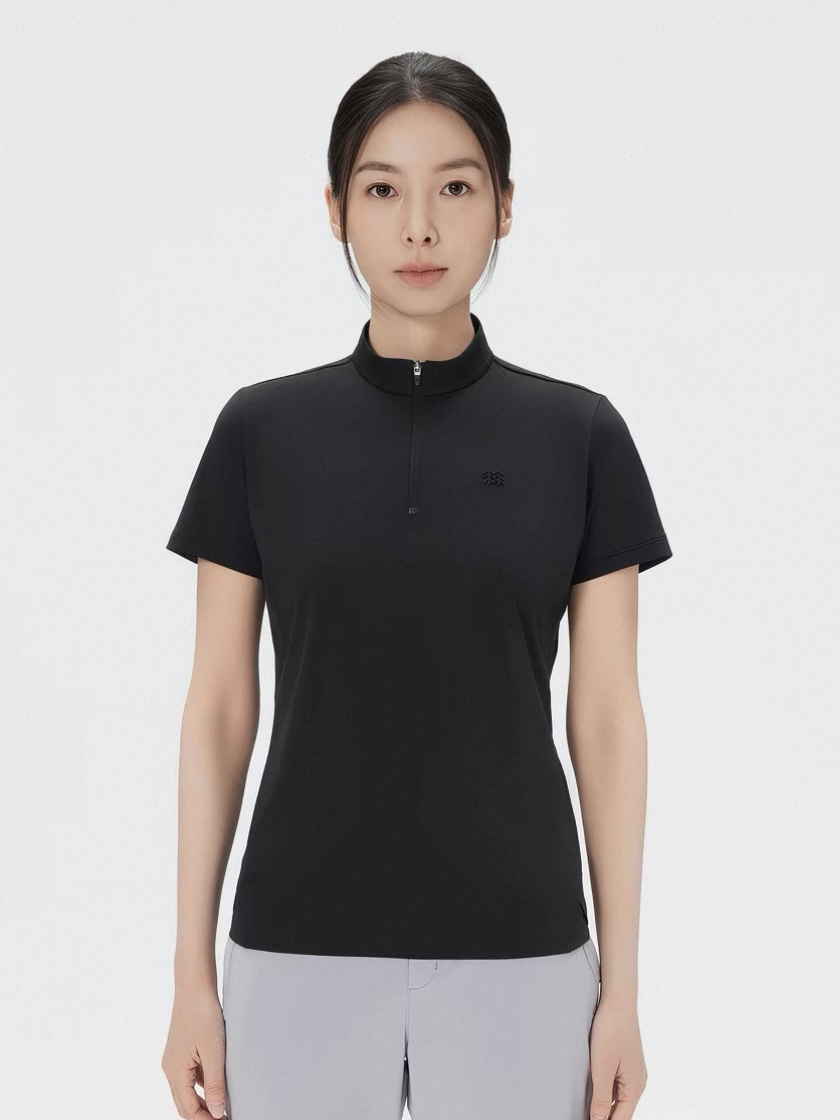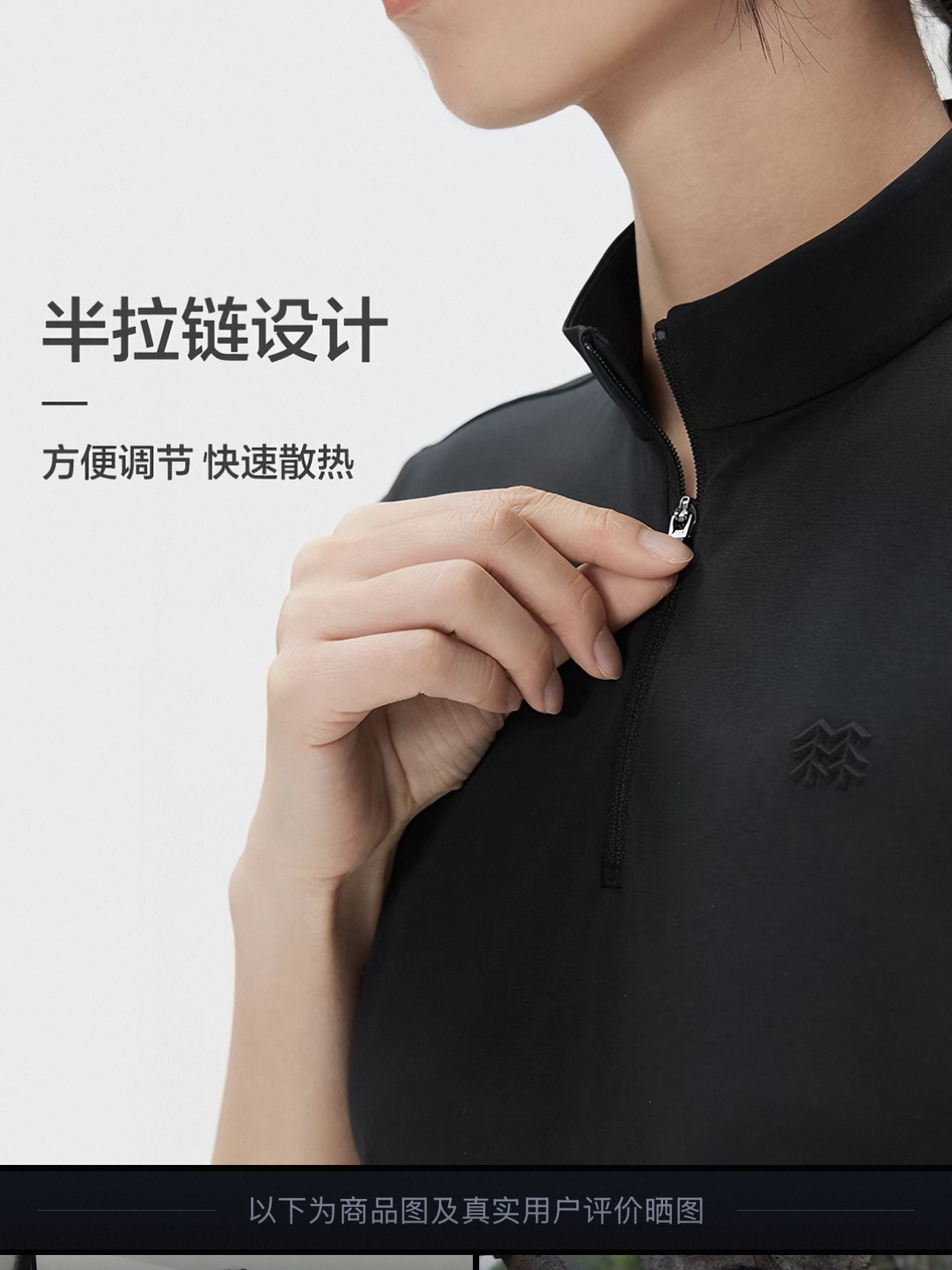 吸湿排汗;半拉链立领+立体拼接,修饰身形,