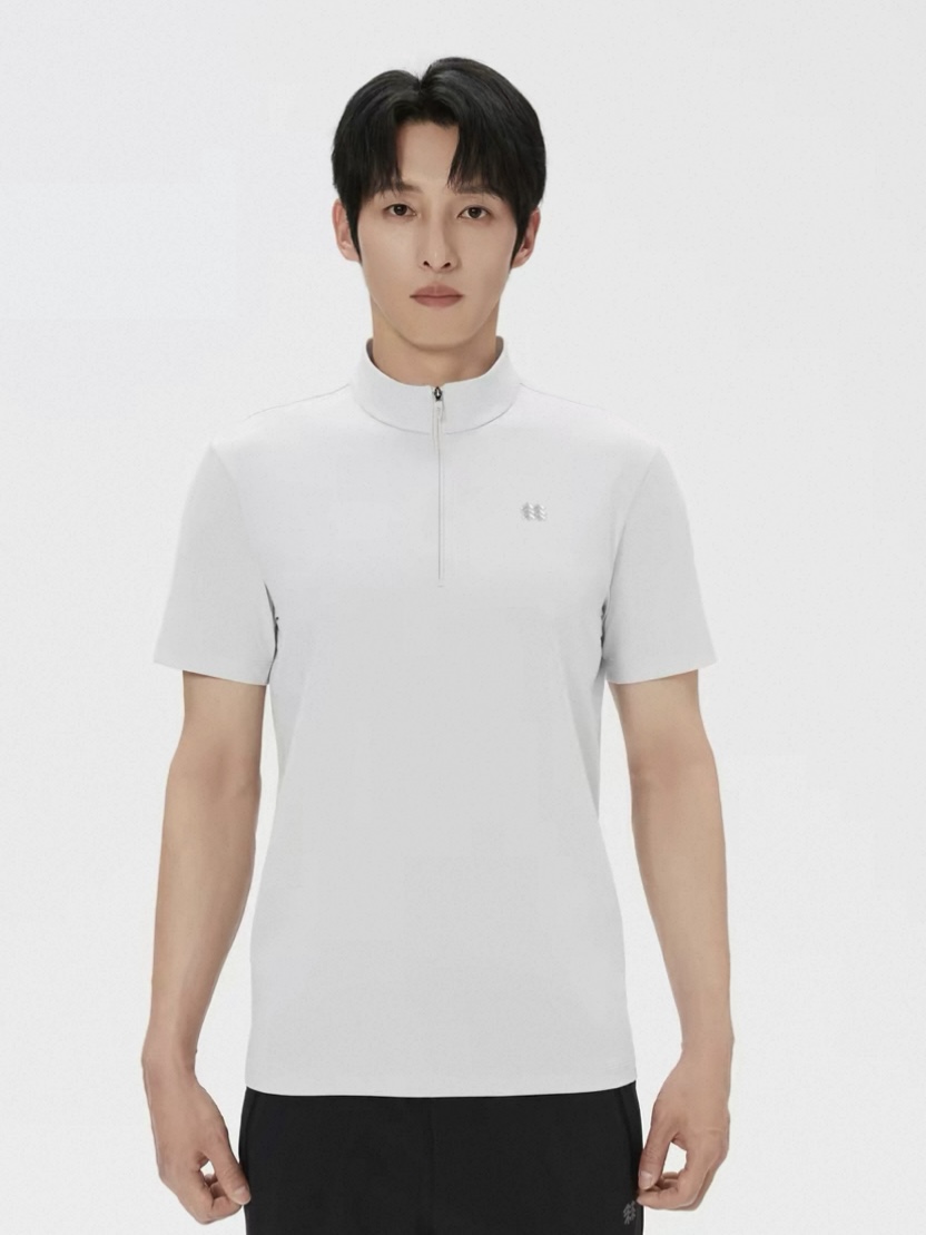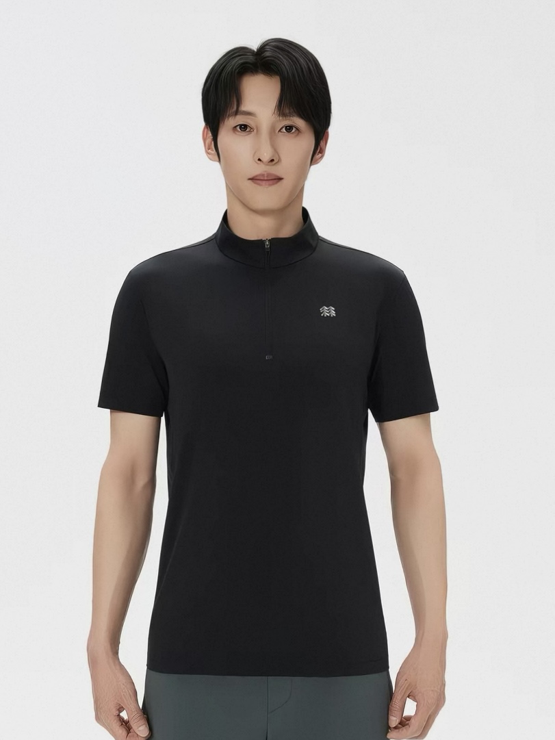 威海迪尚排单,新款2026夏季Kl可*隆 男士吸湿速干半拉链立领短袖T恤