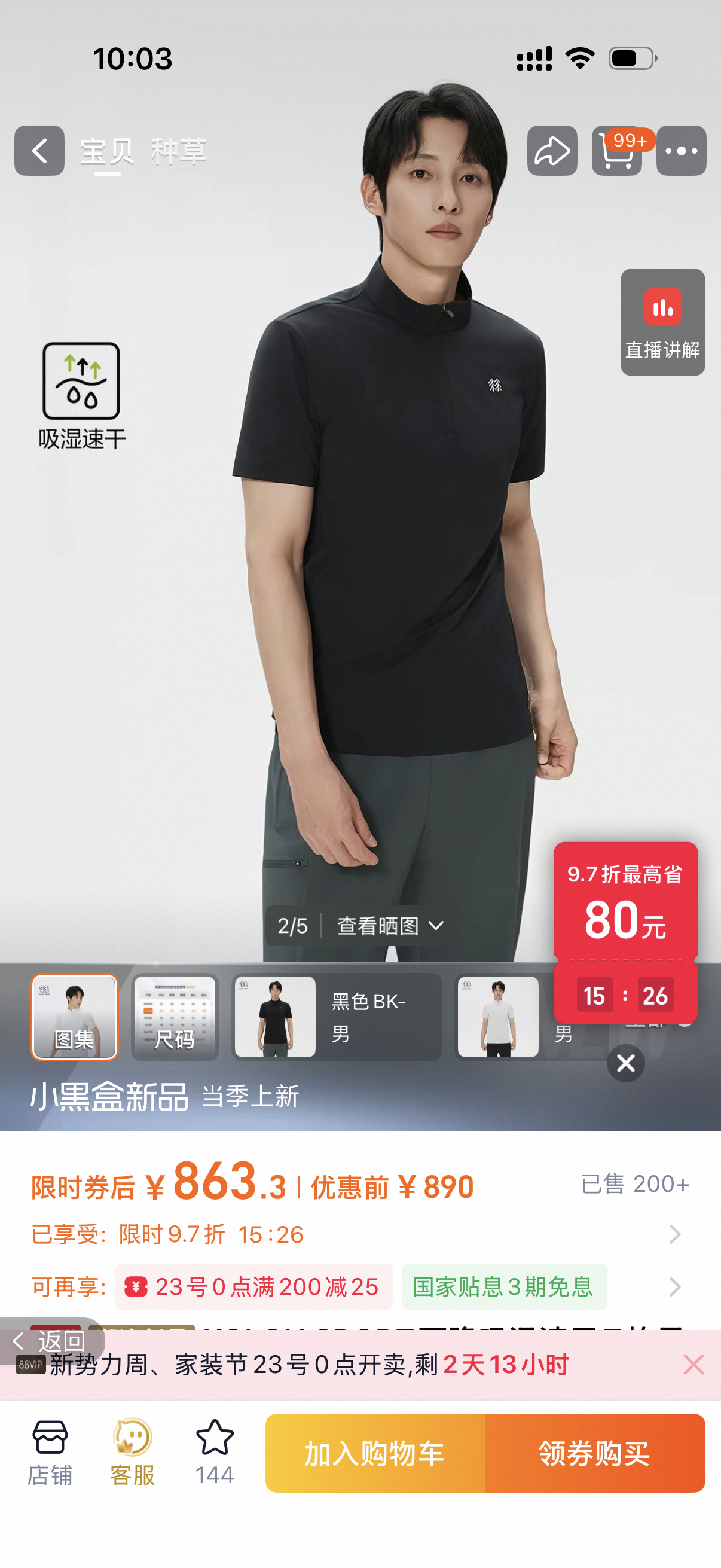 新款2026夏季Kl可*隆 男士吸湿速干半拉链立领短袖T恤