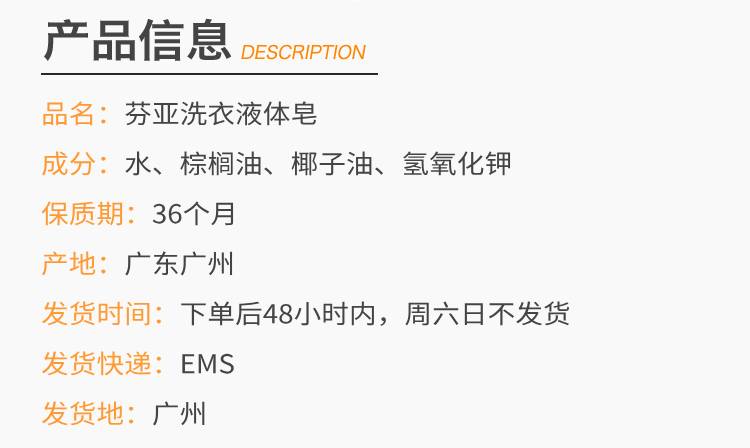 【特惠7.4折】芬亚 洗衣液 温和去渍不伤衣物 2L/桶