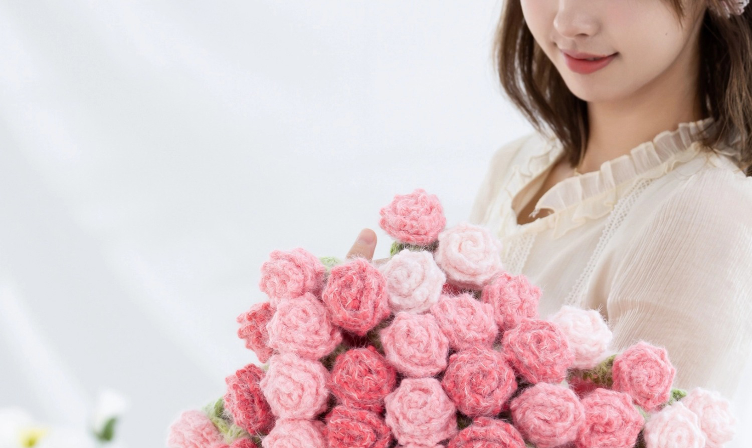 苏苏姐家梦羽玫瑰花束毯线材组合手工编织DIY打发时间送礼物