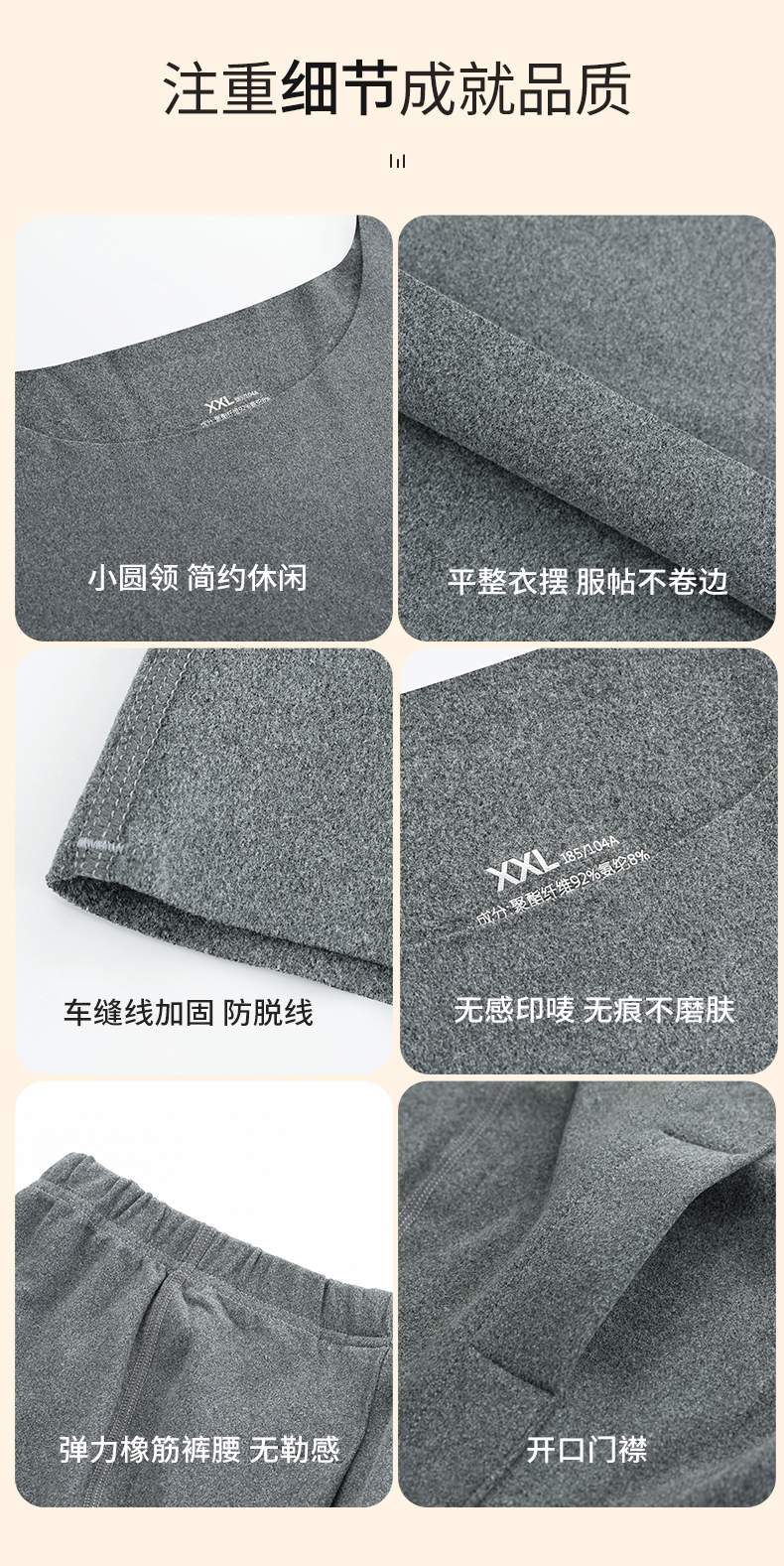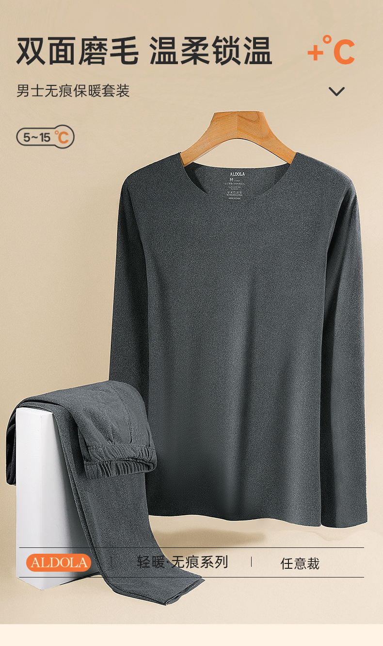 雅黛丽秋衣秋裤套装男纯色双面磨毛打底内衣男士秋冬季无痕保暖衣