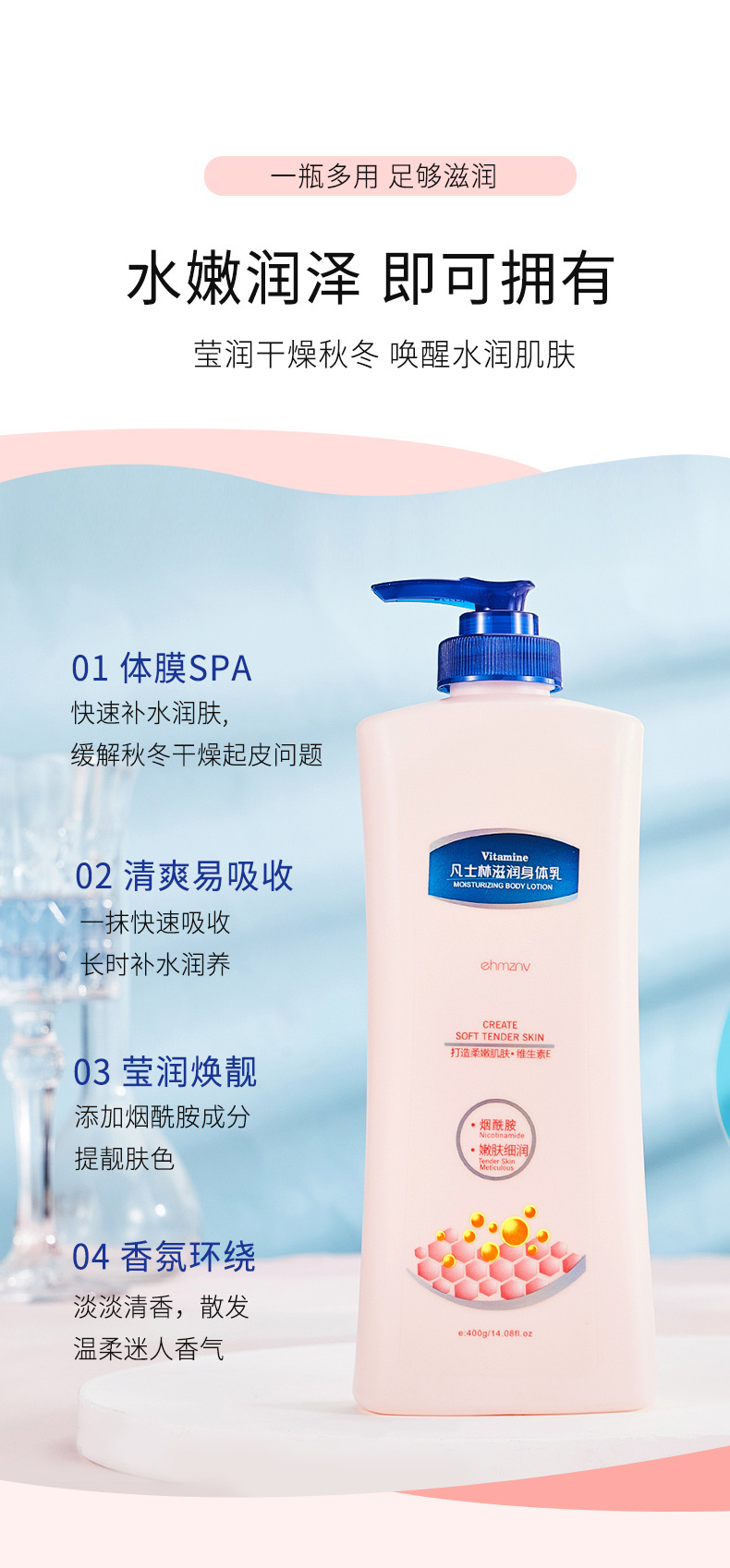 【立减10元❗凡士林滋润身体乳】瞬间缓解干燥肌,一抹瞬间吸收,清爽不油腻,柔润光滑,莹润透亮,光感焕靓,告别粗糙肌,补水保湿滋润全身烟酰胺亮肤留香润肤乳秋冬QQ
