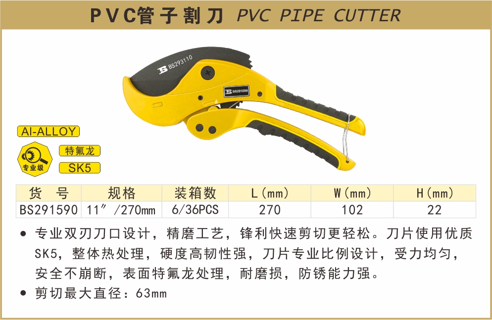 波斯PVC管子割刀11"/270mm 最大剪切直径63mm BS291590