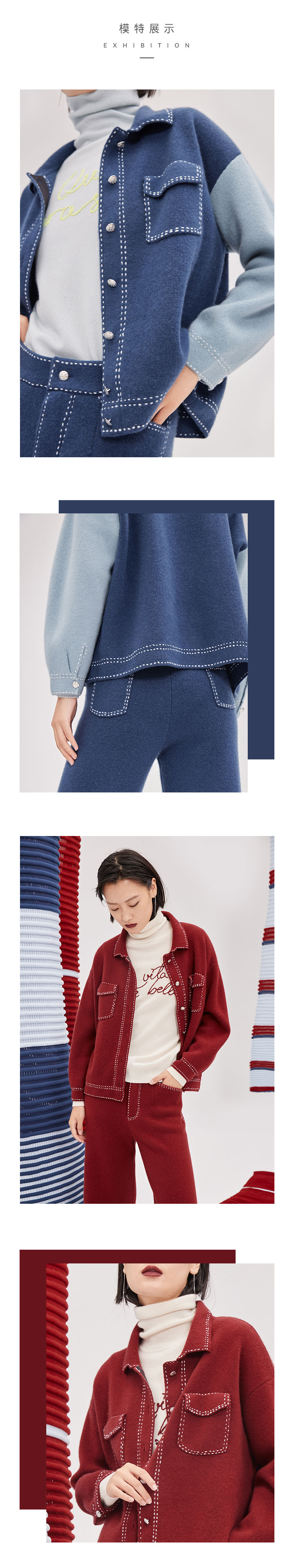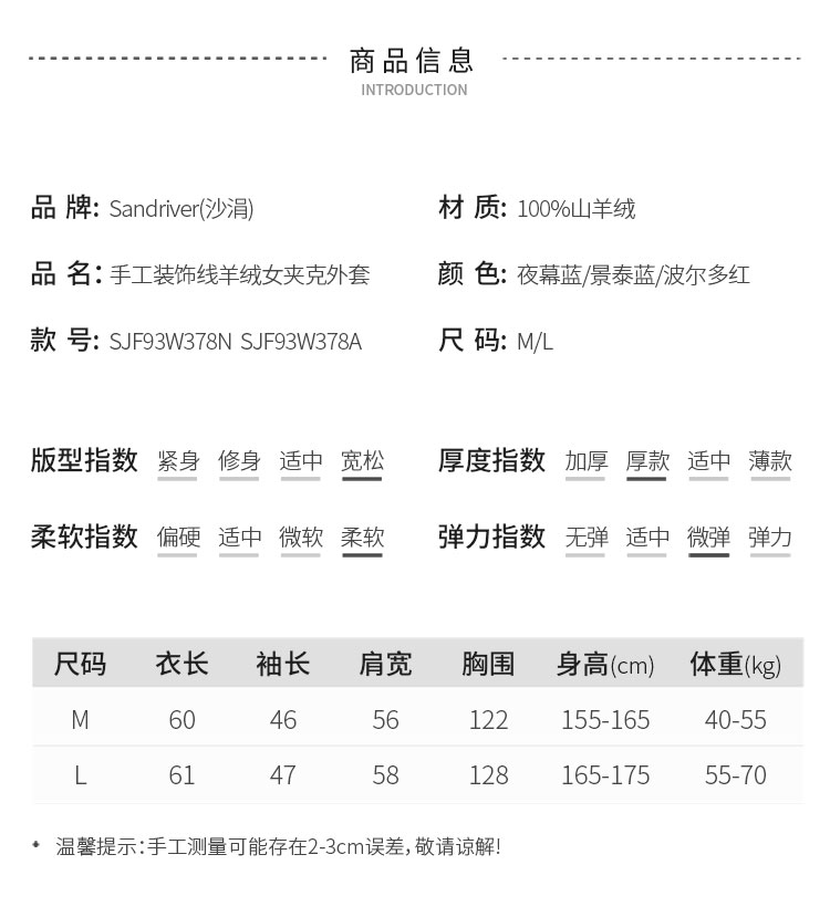 手工装饰线羊绒女夹克外套 SJF93W378A、SJF93W378N
