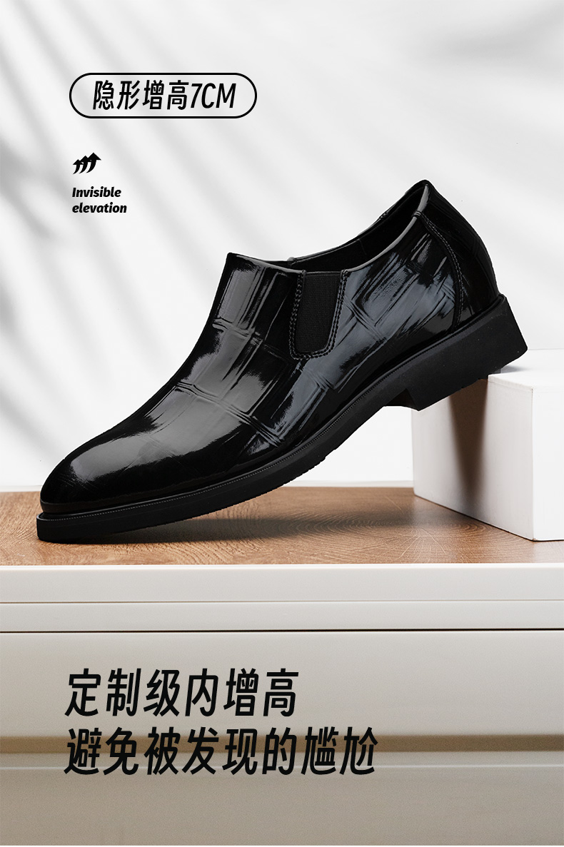 男士内增高皮鞋增高7cm套脚一脚蹬商务正装英伦系带结婚新郎鞋