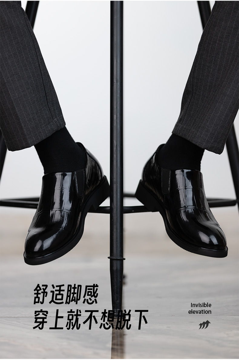 舒乐高皮鞋男结婚男士正装皮鞋内增高6cm商务尖头皮鞋厚底秋冬款