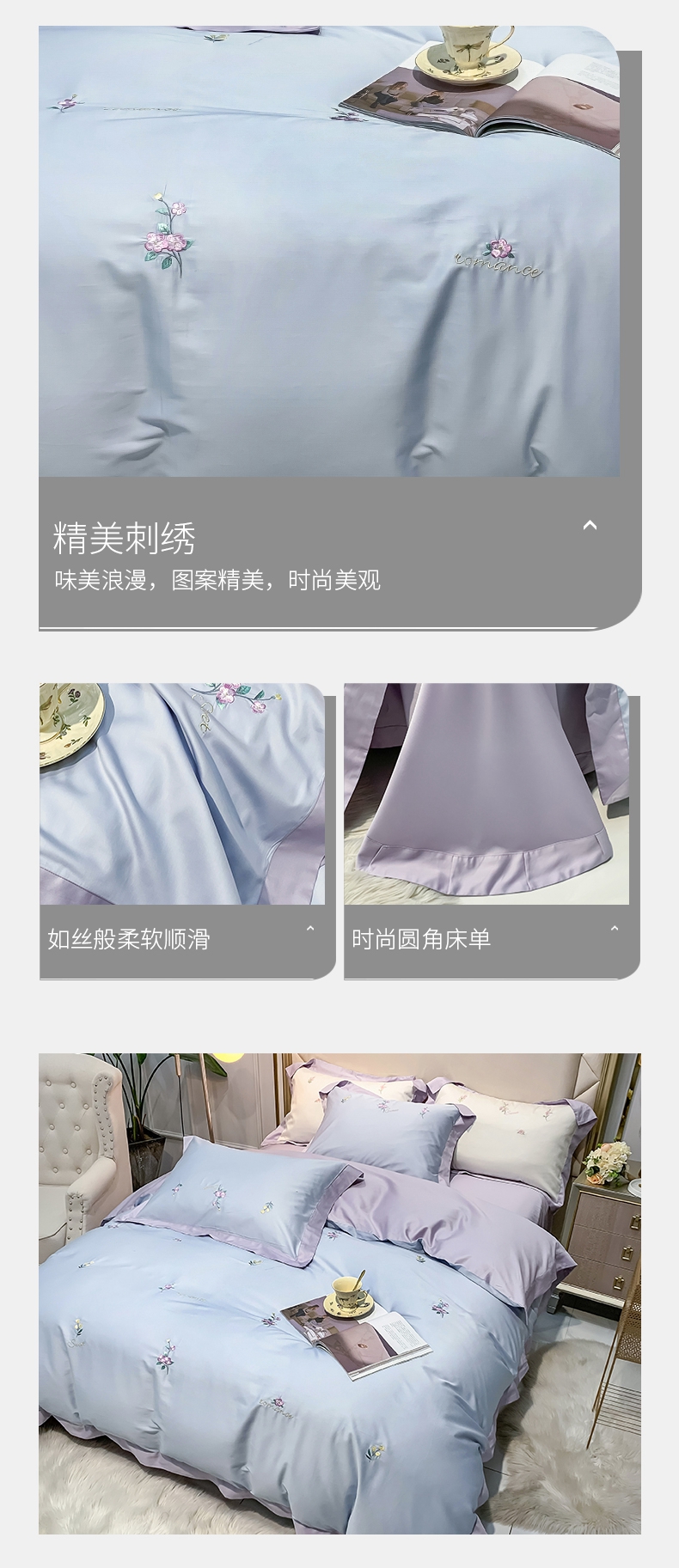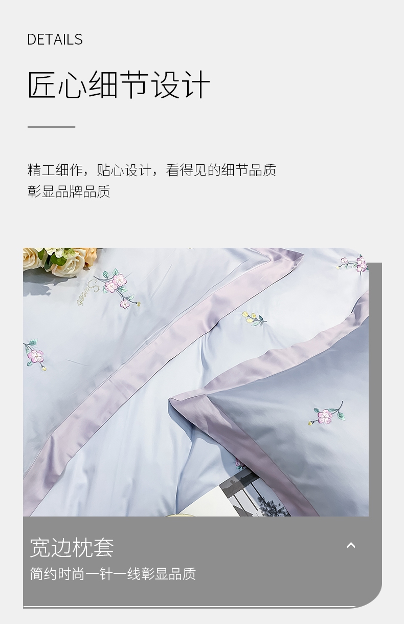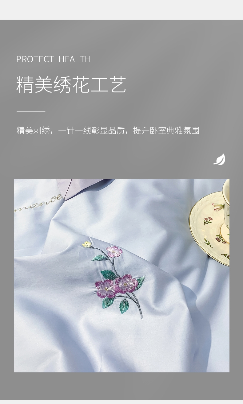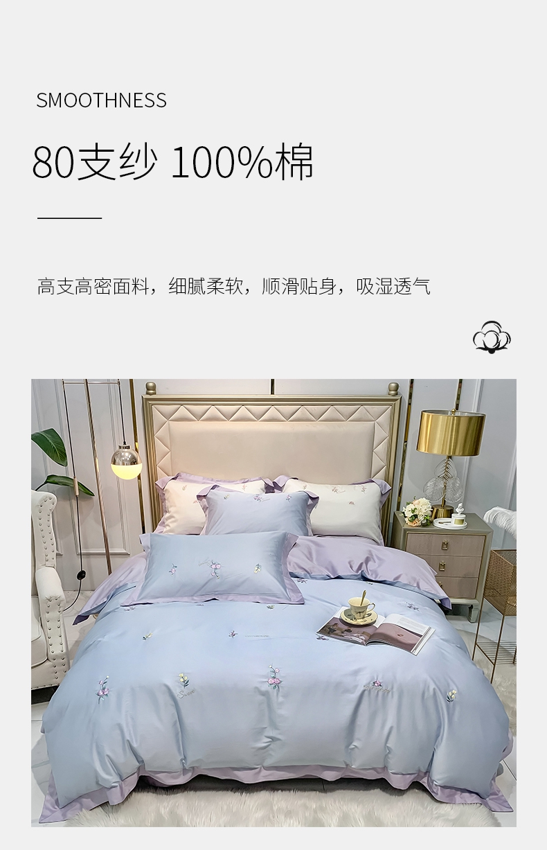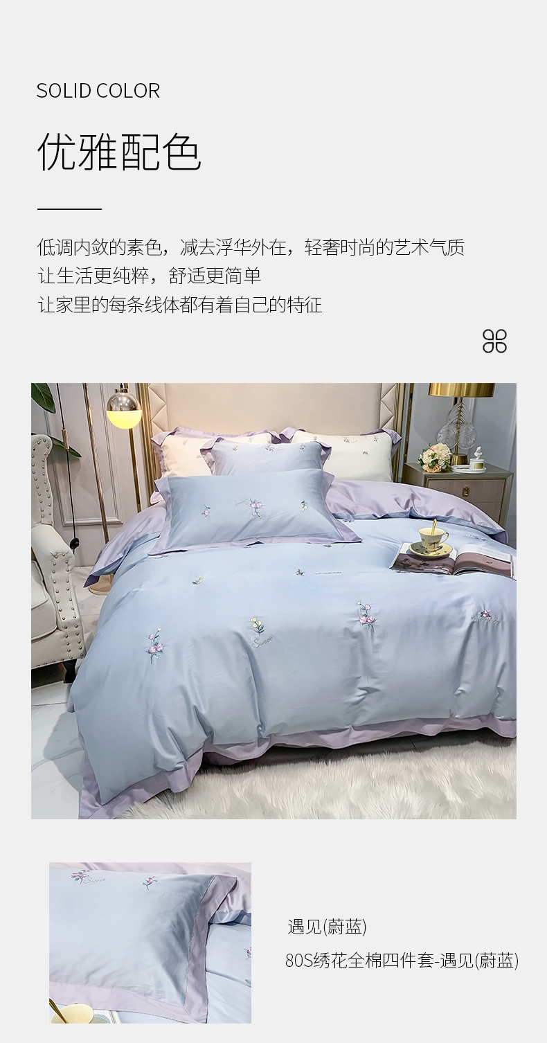 占姆士奥莱线上款 春夏新品80S绣花全棉四件套 活性印染被套床单4件套-遇见(蔚蓝)