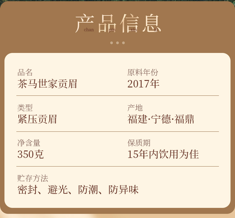 茶马世家2017年福鼎贡眉老白茶饼茶350g