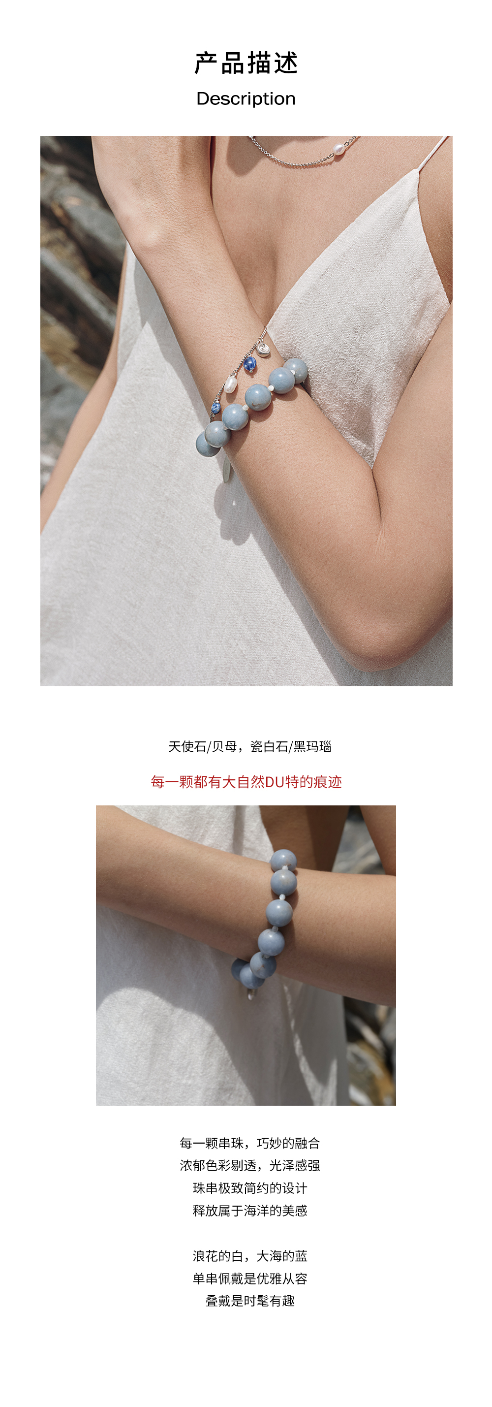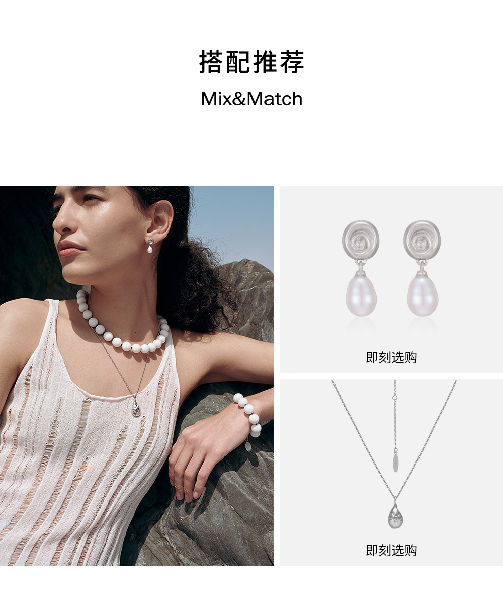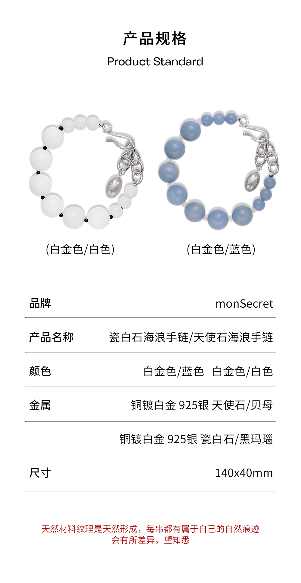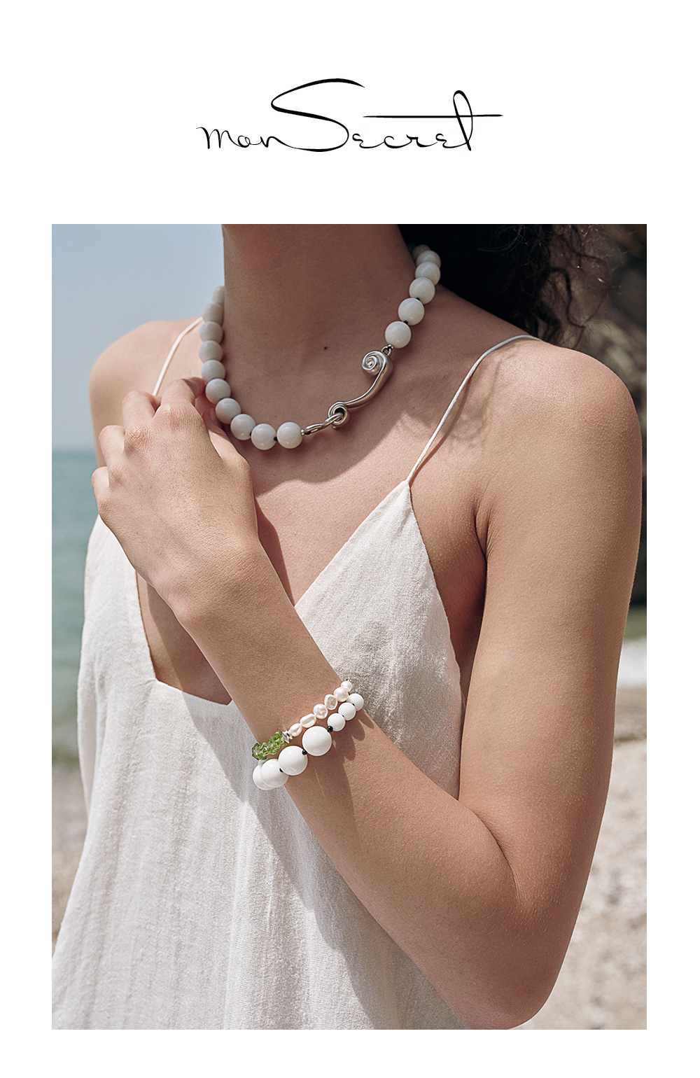 monSecret|WA240403_W1 瓷白石海浪手链【WAVE】 [ 白 ]