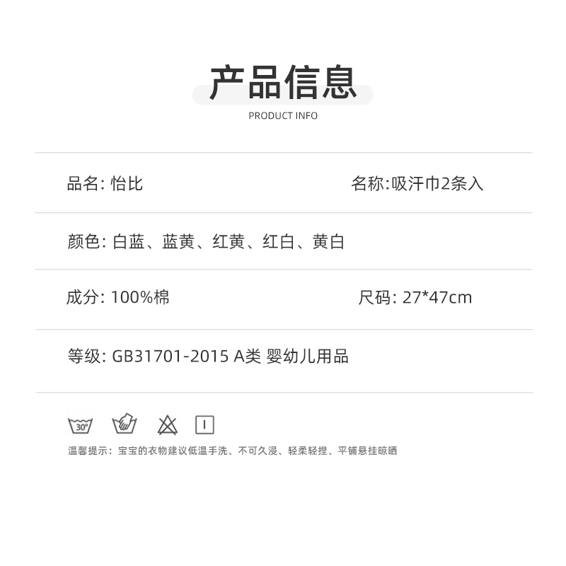 怡比奇妙生活吸汗巾2条入HY24SPP012红白色调/蓝黄色调27*47cm