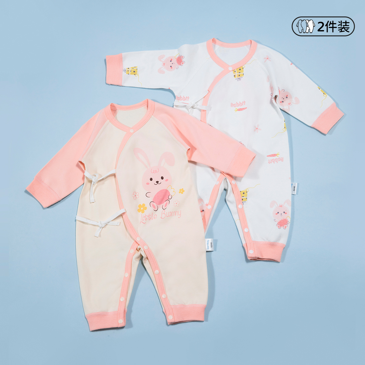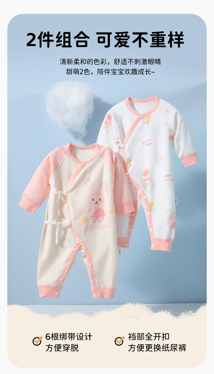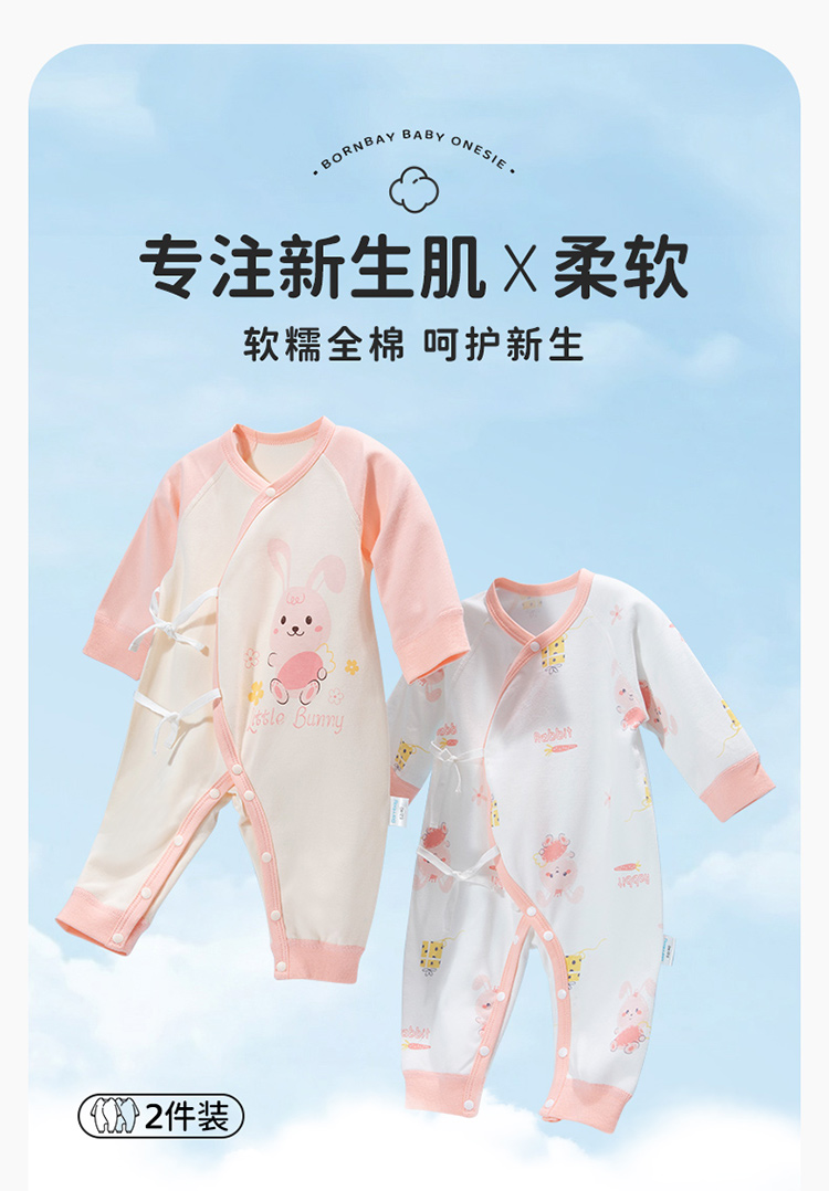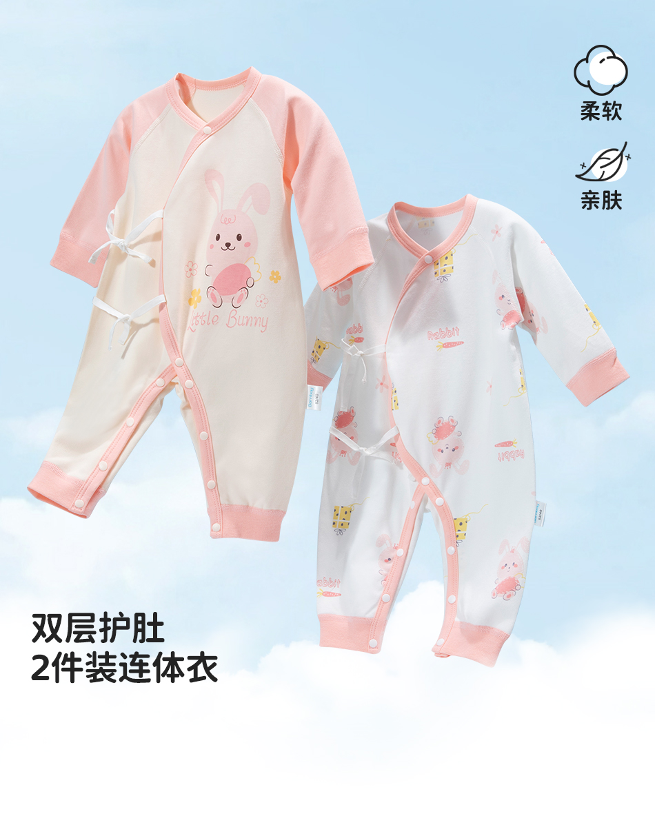 贝贝怡初生男女宝宝连体衣春装新生儿纯棉蝴蝶衣服婴儿哈衣两件装ZB1DL013