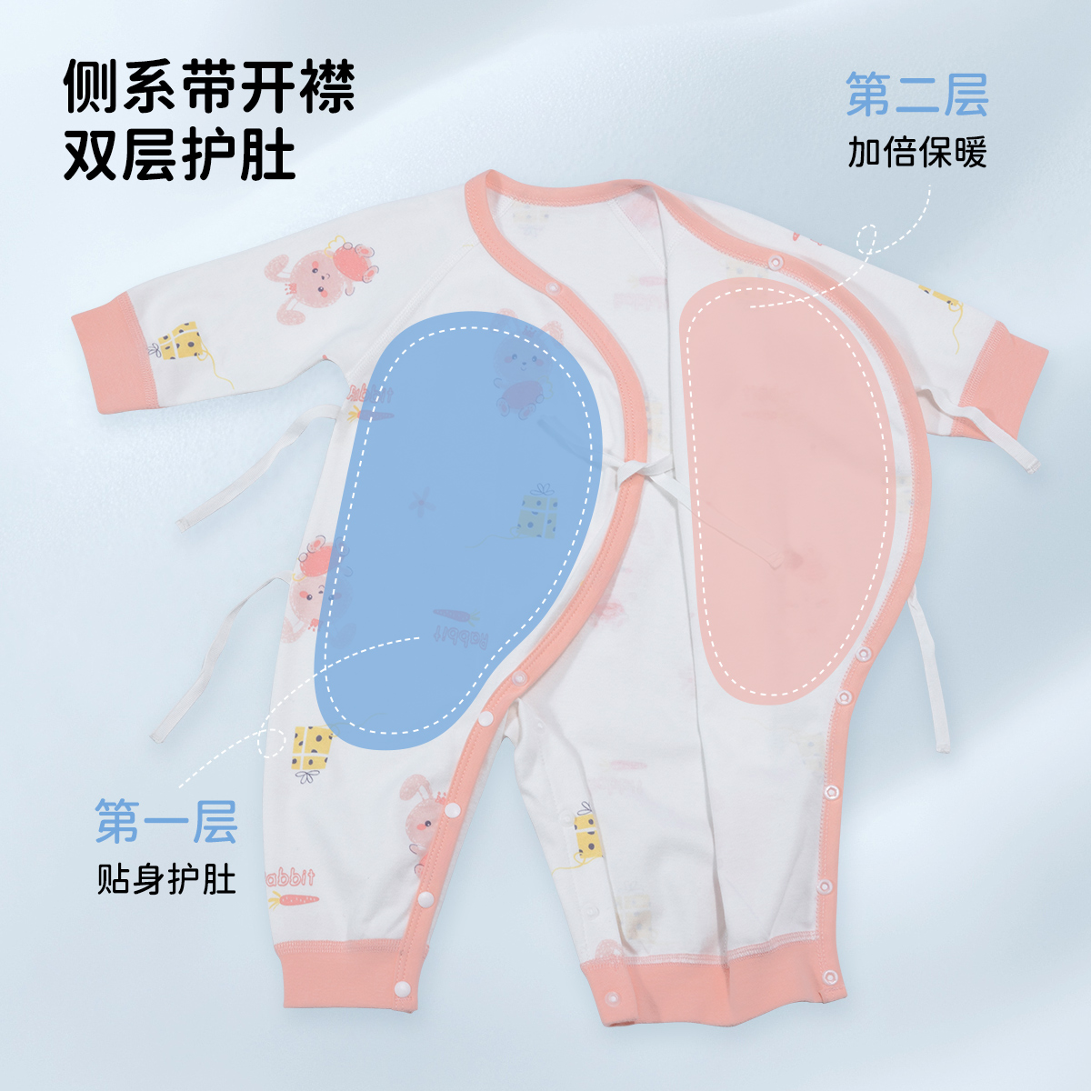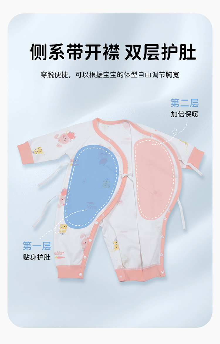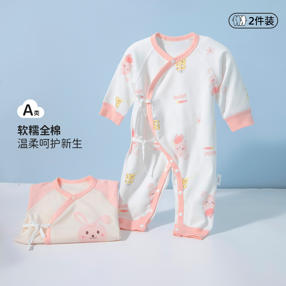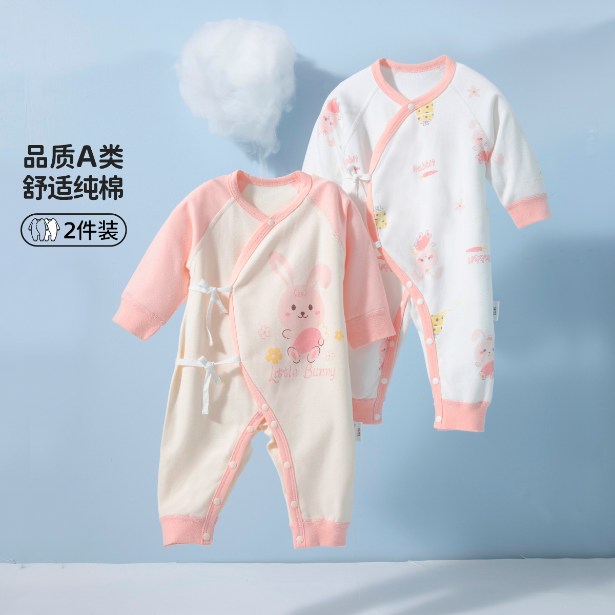 贝贝怡初生男女宝宝连体衣春装新生儿纯棉蝴蝶衣服婴儿哈衣两件装ZB1DL013