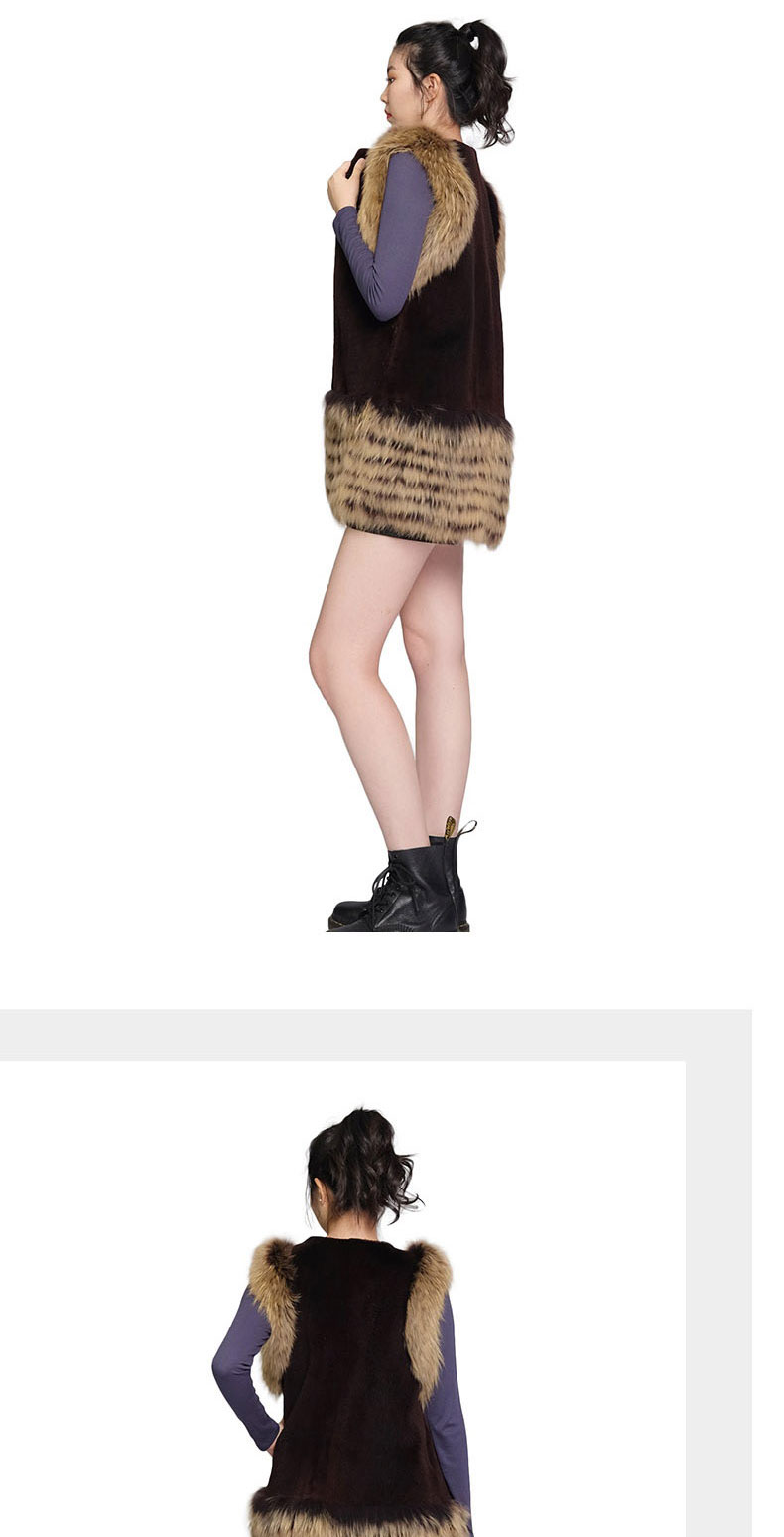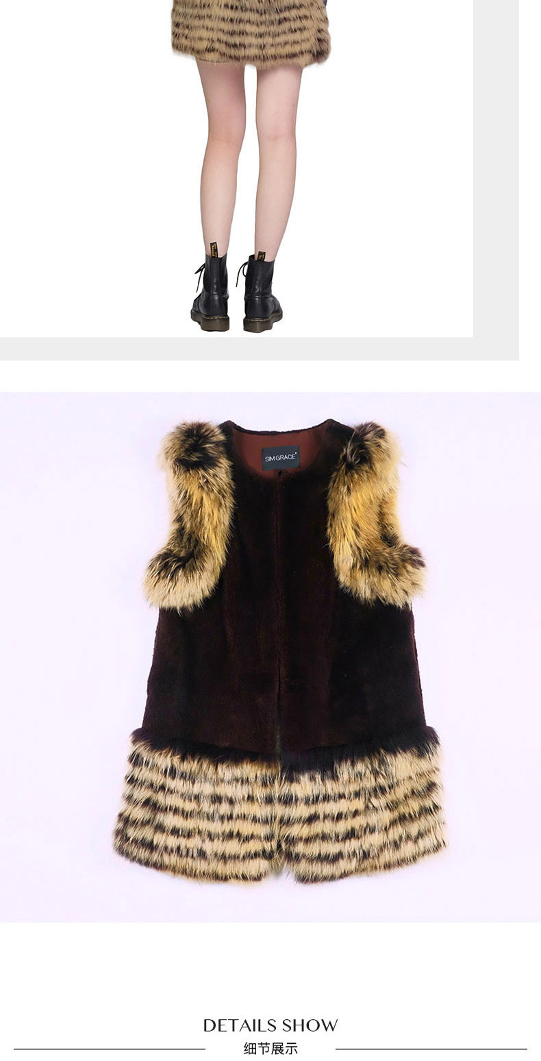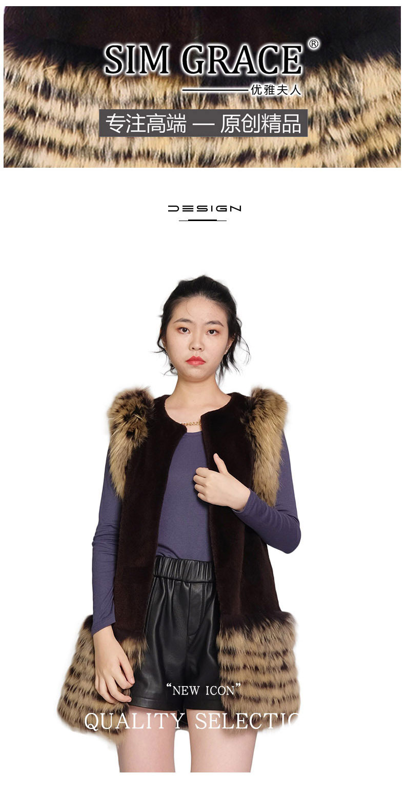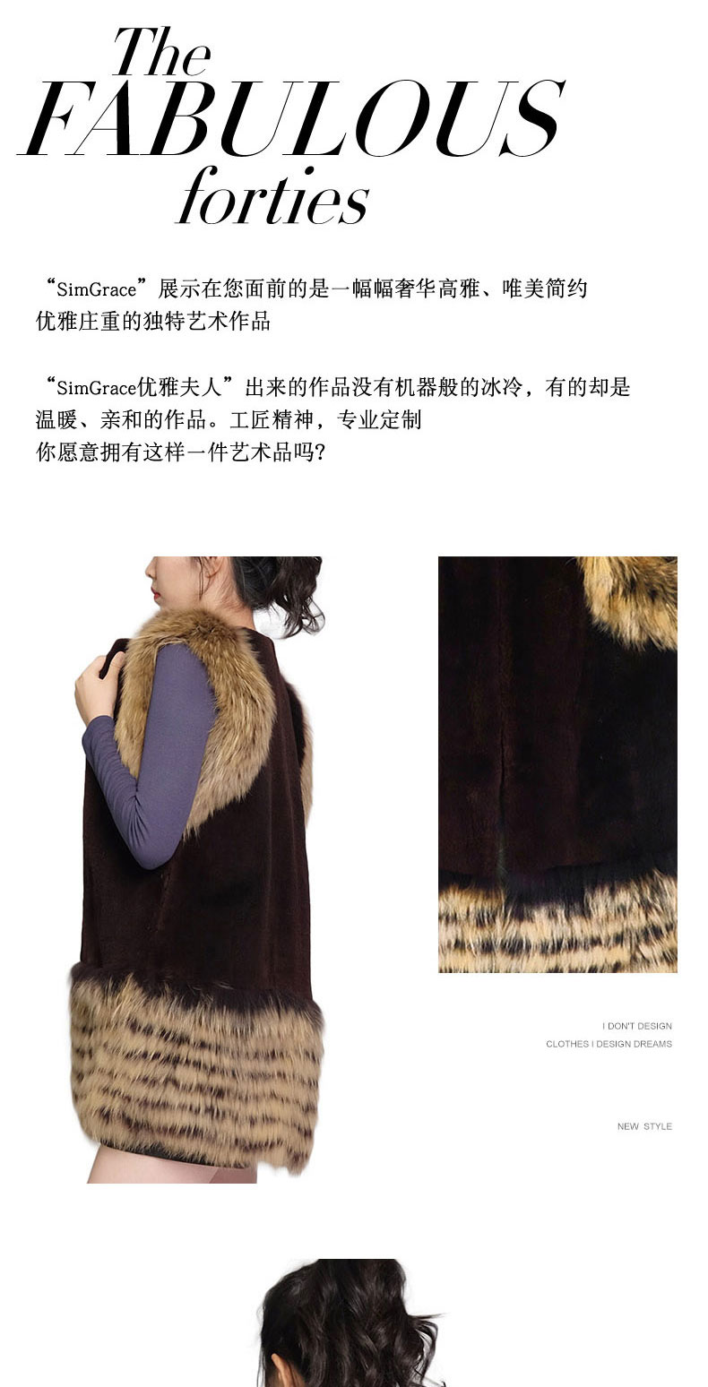 SIM GRACE 优雅夫人 秋冬民族风海狸貉子毛搭配,真毛中长款女士保暖马甲