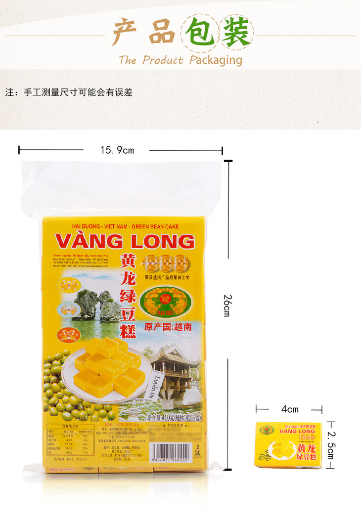 越南黄龙绿豆糕 410g/袋(含42小盒)传统净素小吃 怀旧小零食