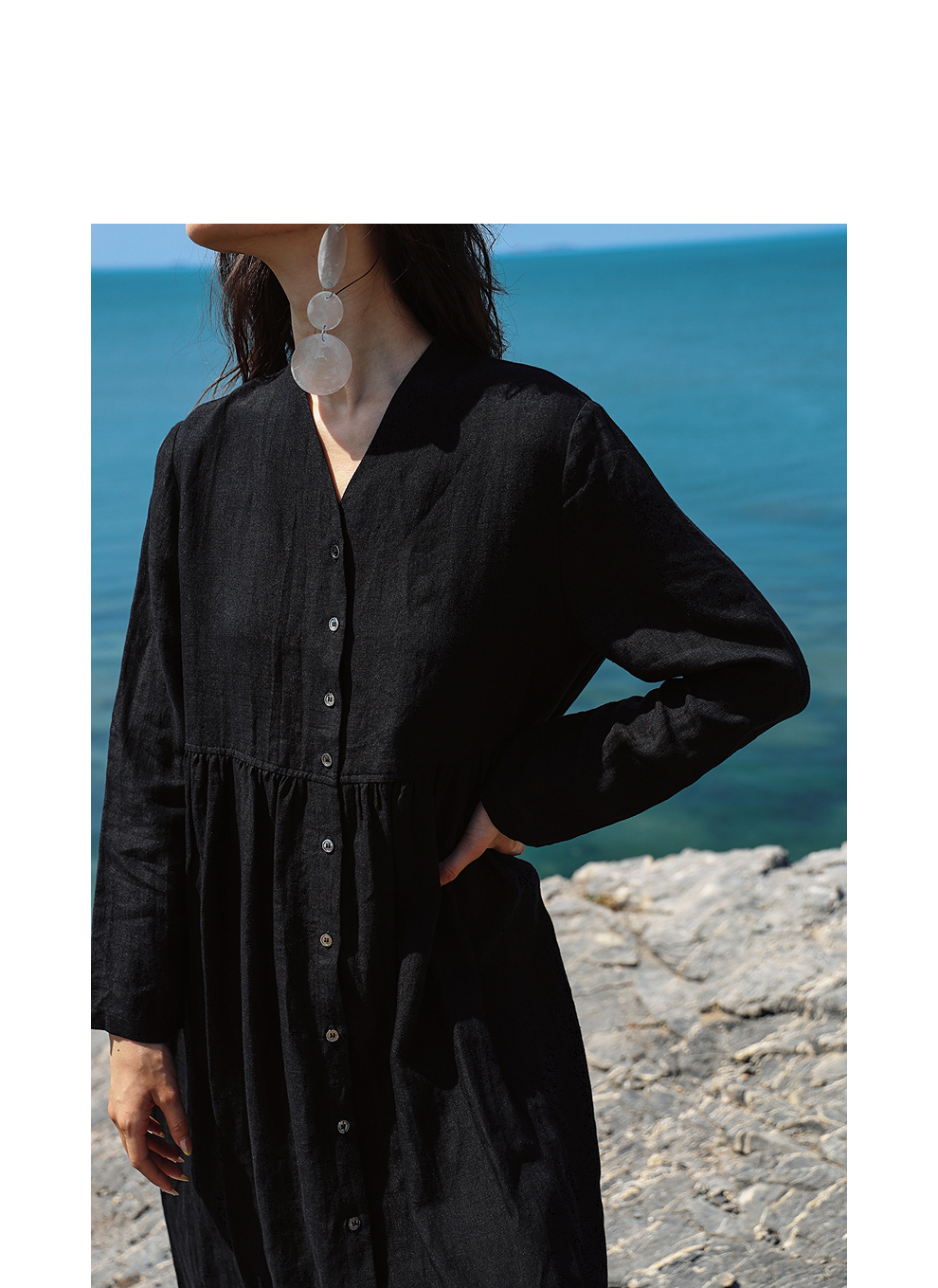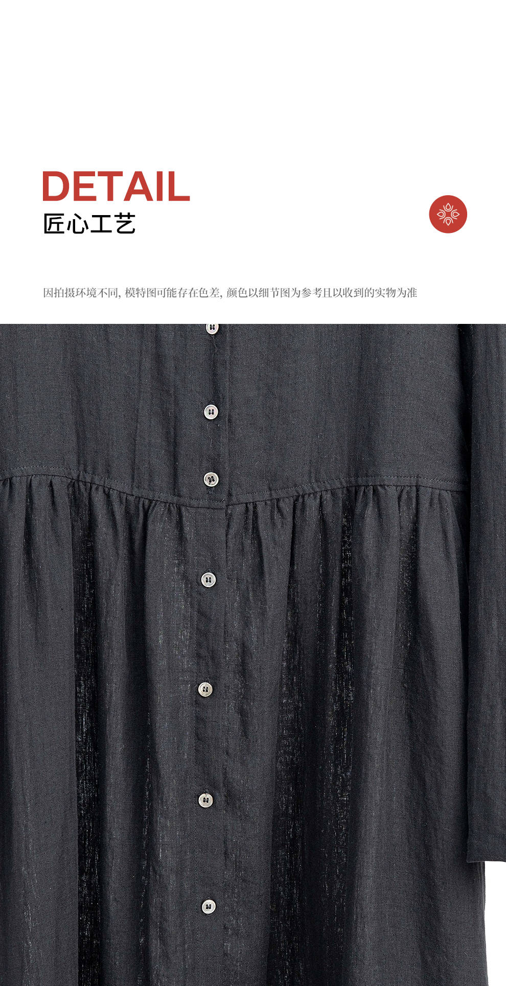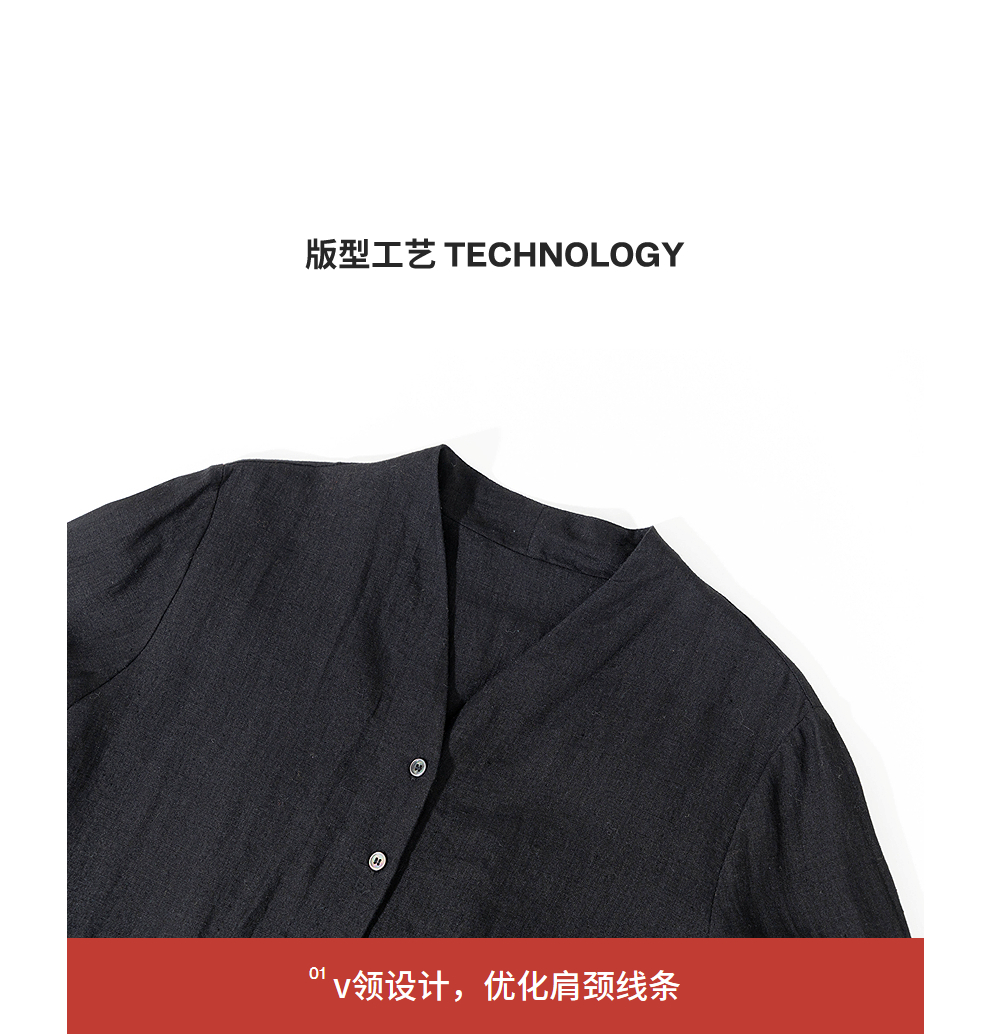 绽放旅行女装463朵/亚麻宽松V领气质文艺开襟长袖连衣裙女秋新款