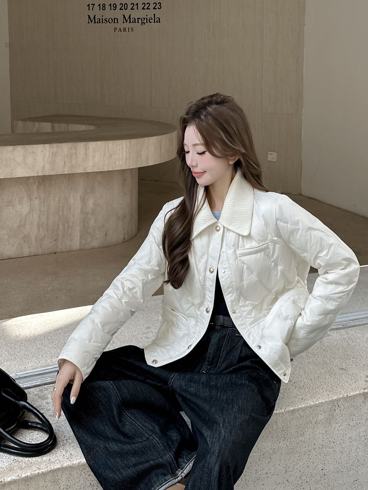 伯妮斯茵 | 温柔小香风 针织翻领短款羽绒服 菱形绗缝工艺 轻盈保暖 日常通勤款 SZ6R29 凝脂色
