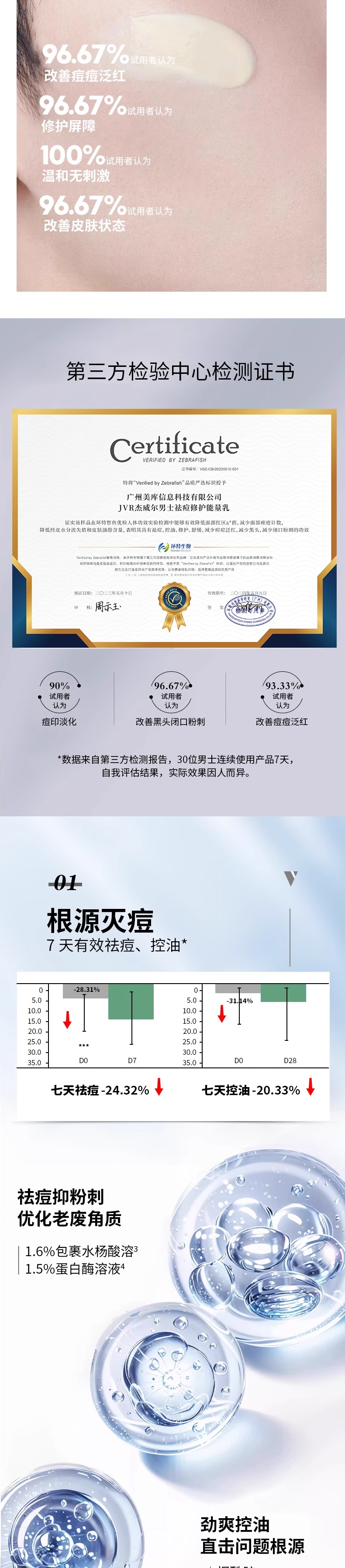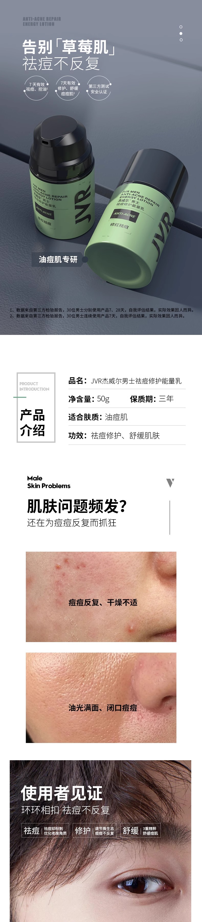 JVR杰威尔男士祛痘修复能量乳液夏季控油补水保湿面霜护肤品