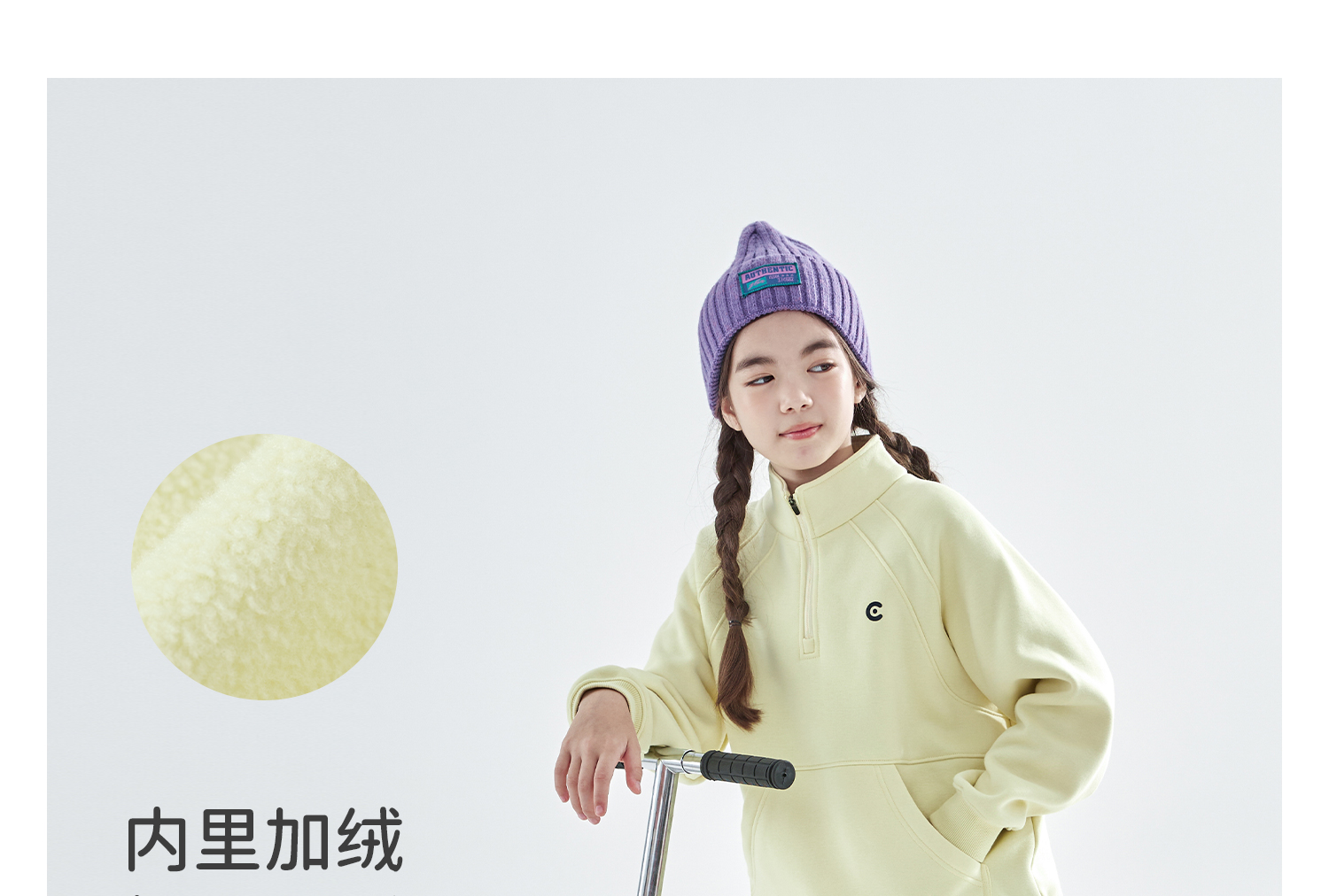 预售12.20发 cicochild25年秋冬新款亲子中大女童加绒立领卫衣抗静电保暖上衣
