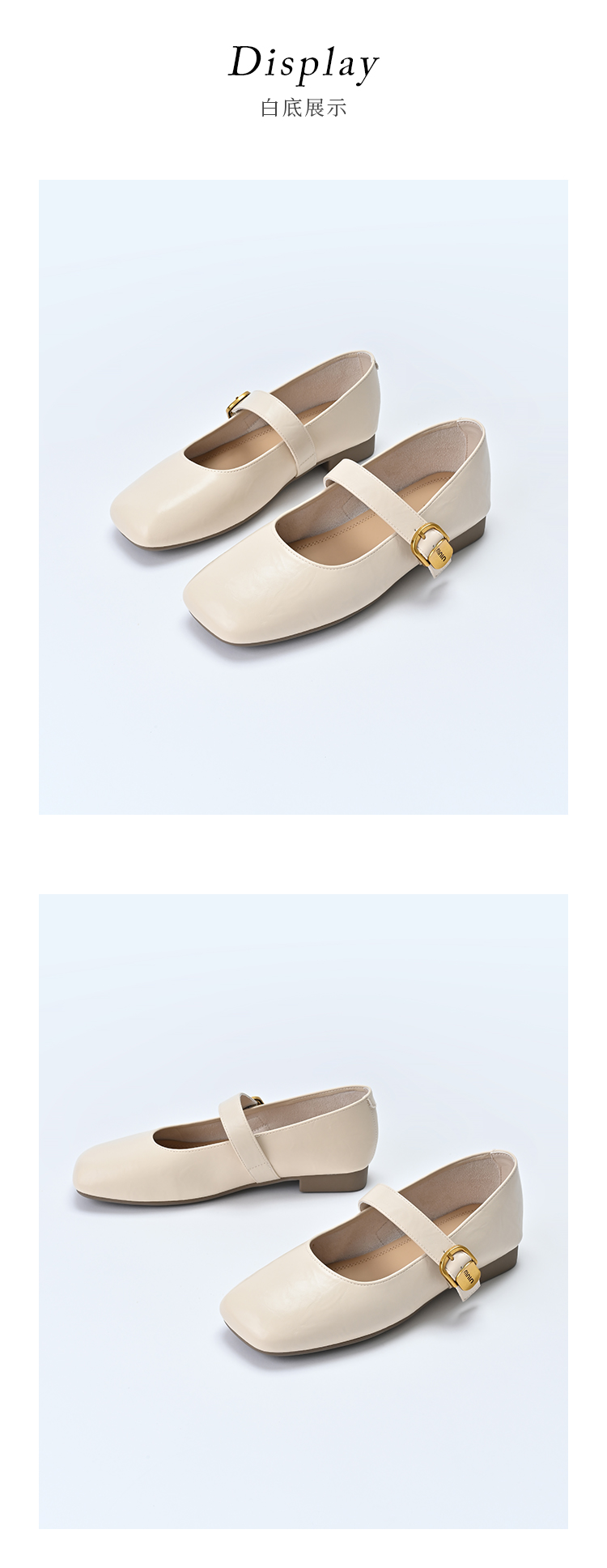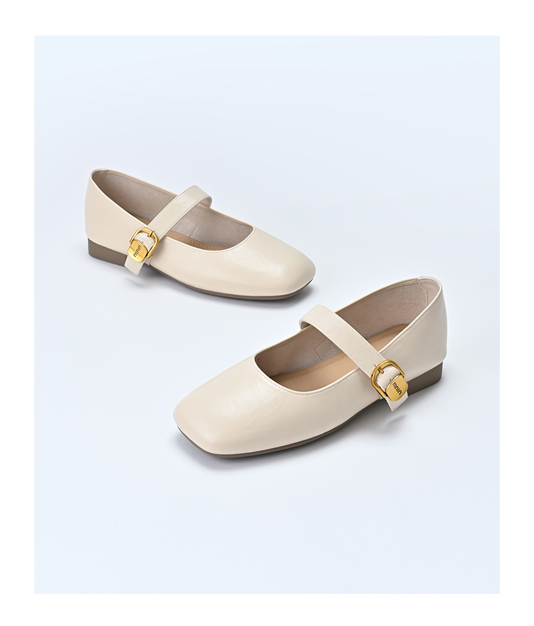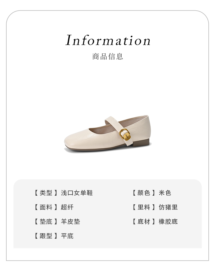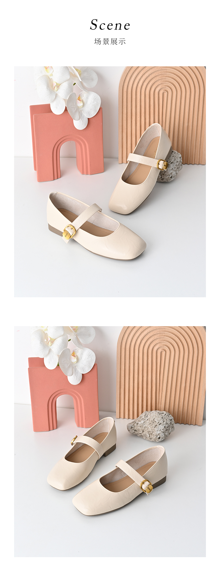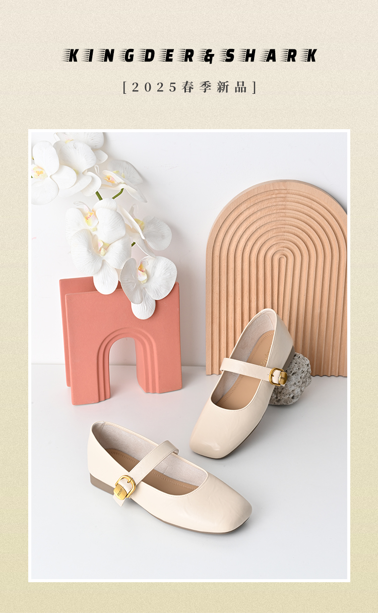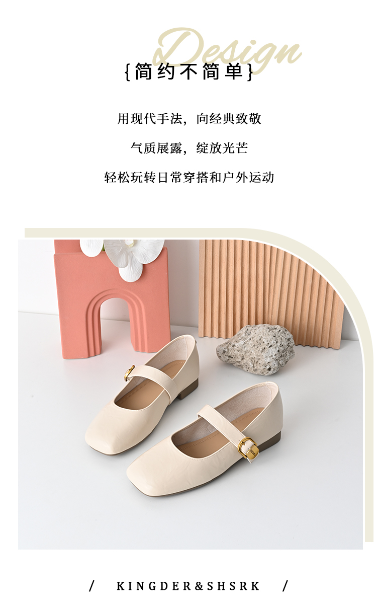 经典鲨2025春季新品复古方头一字扣平底舒适简约百搭通勤单鞋女KW89-517051