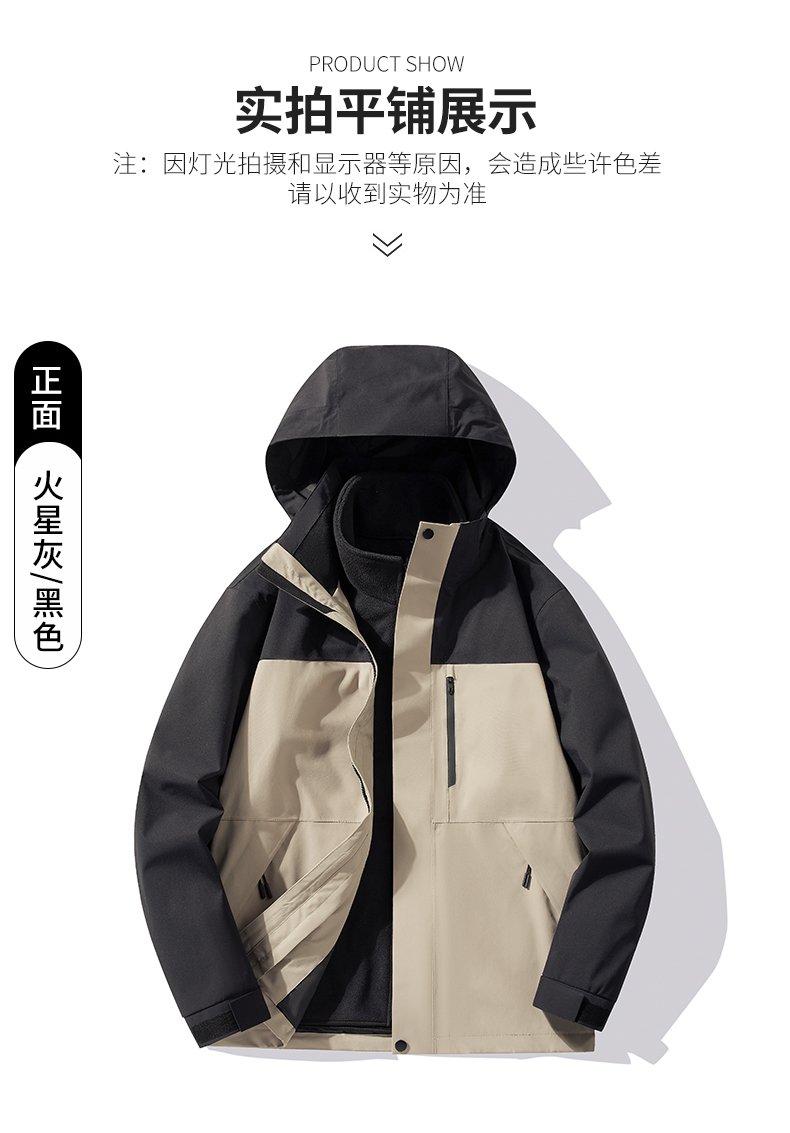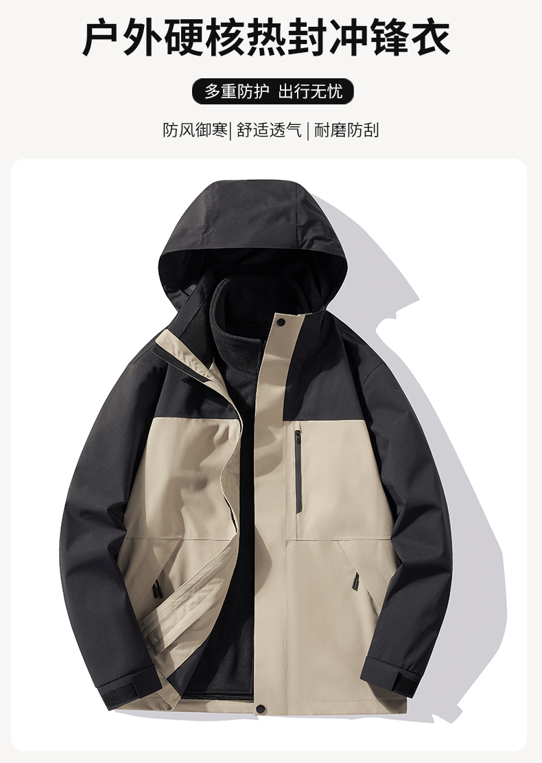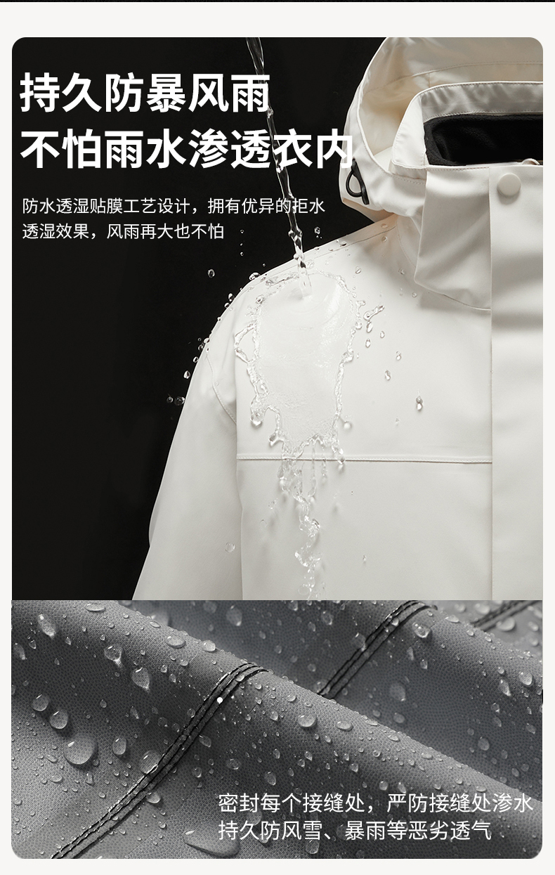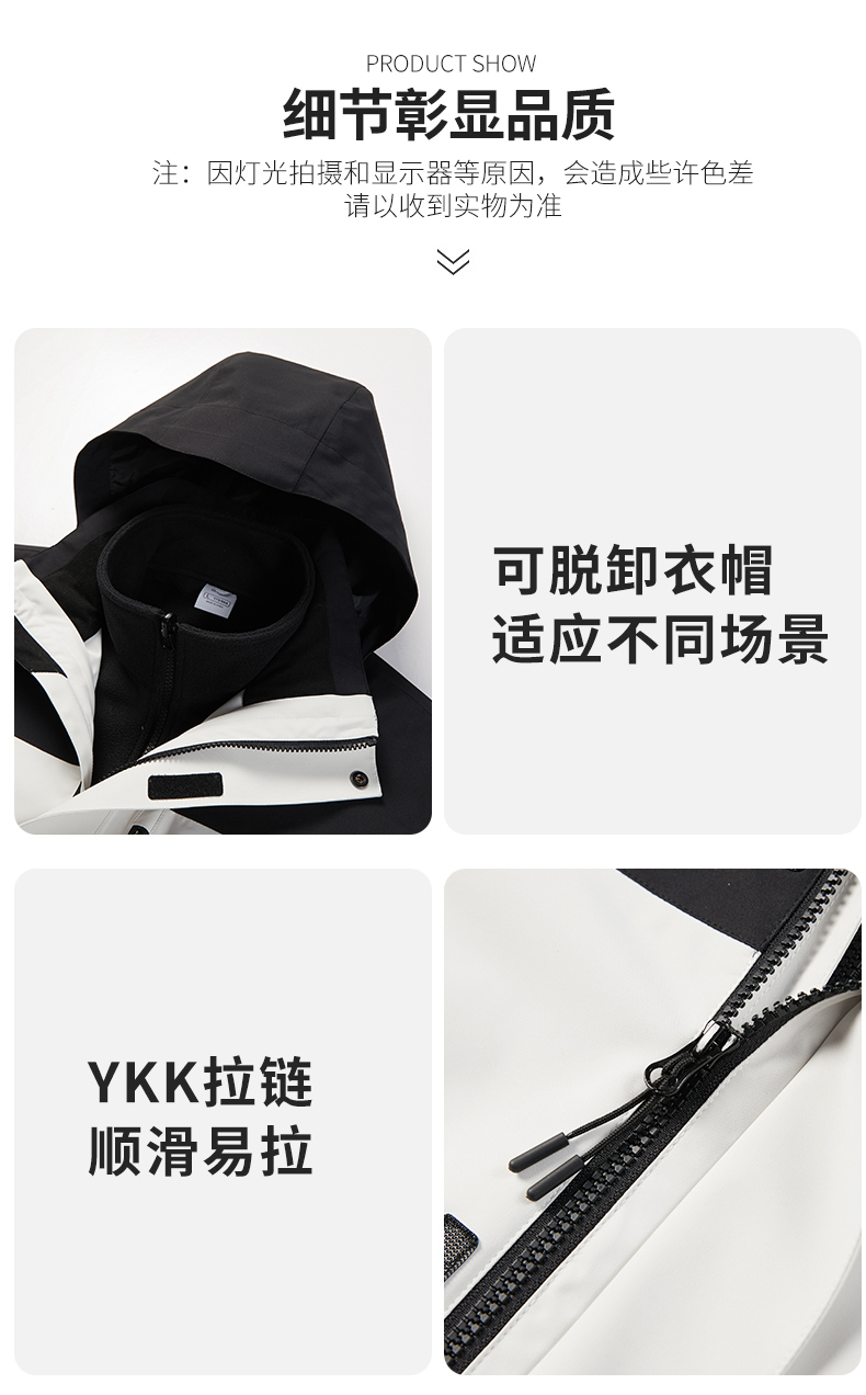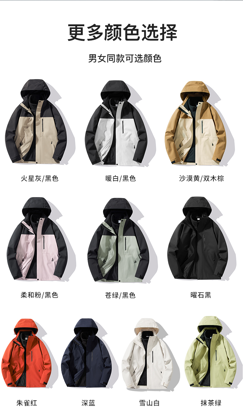 HOTDEMON户外登山运动硬壳情侣款4级防水防风保暖拼色三合一冲锋衣3333