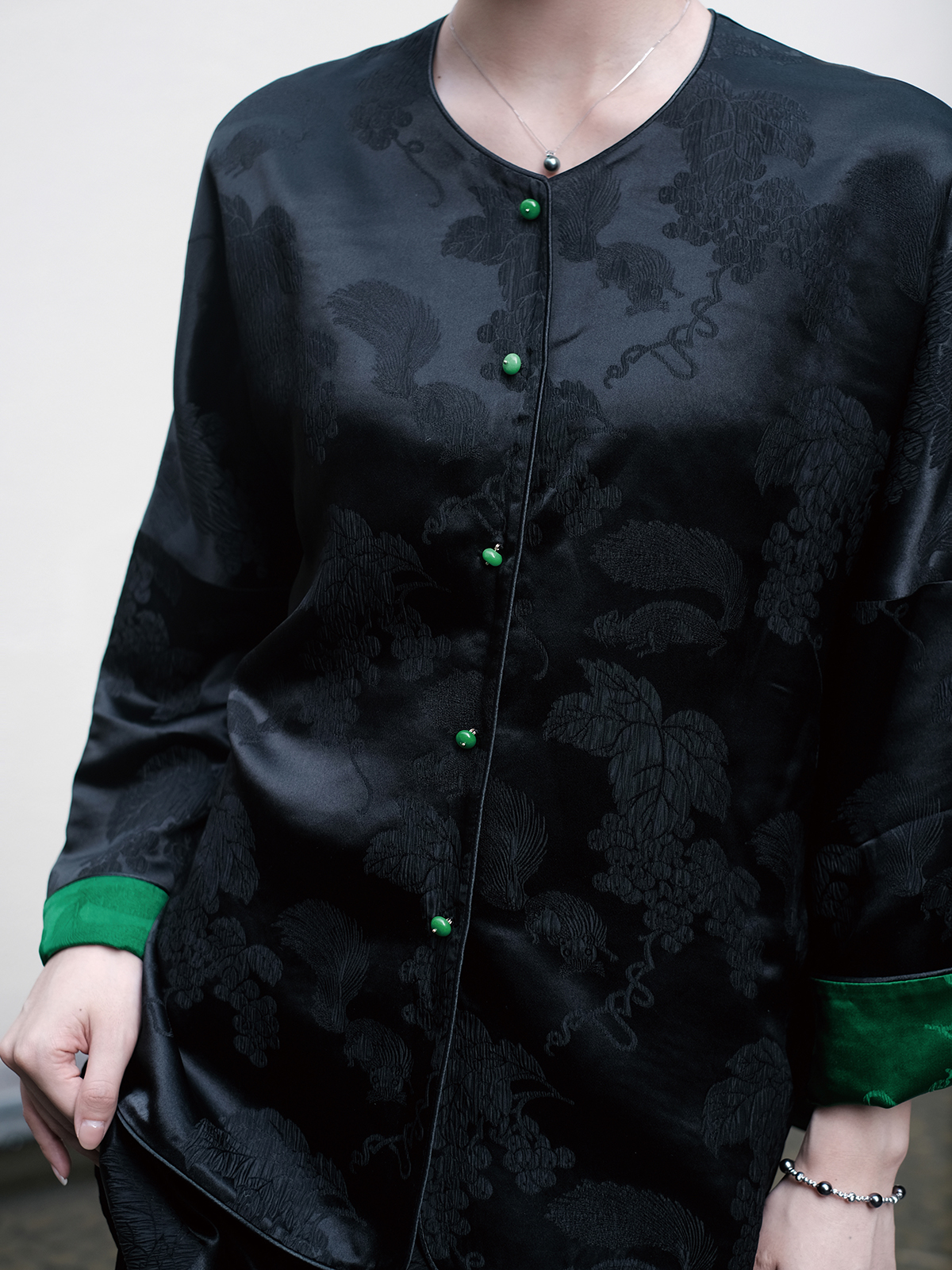 盛唐牡丹 | 真丝冠乐绉松鼠葡萄纹双面穿外套