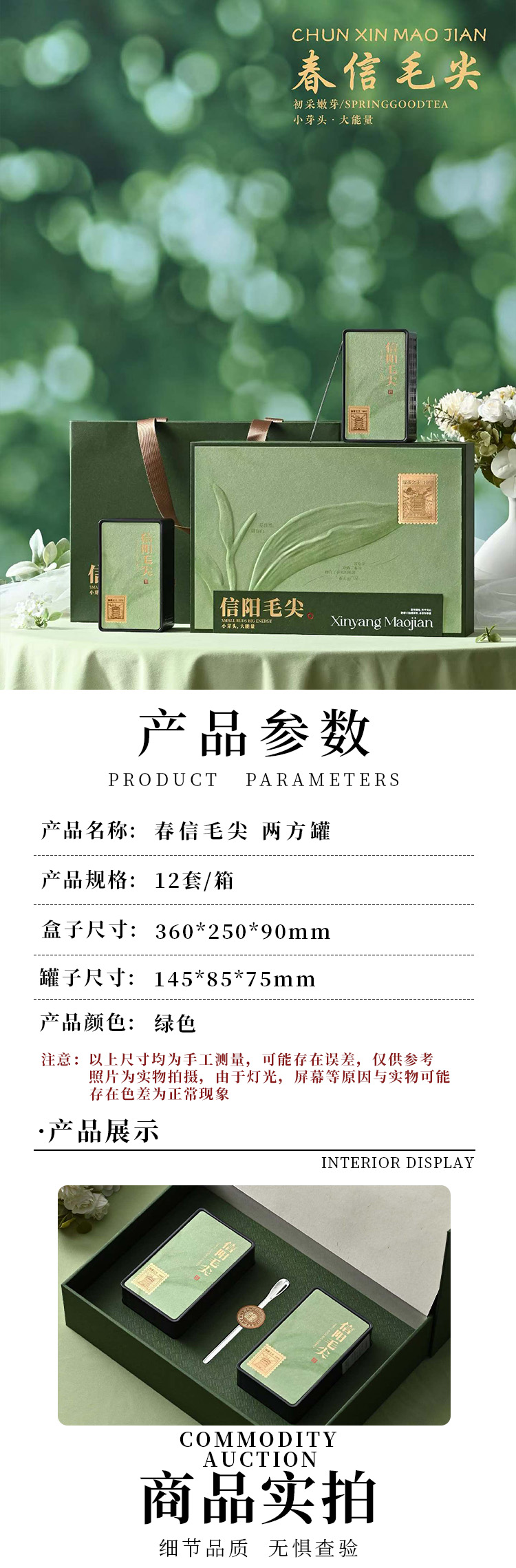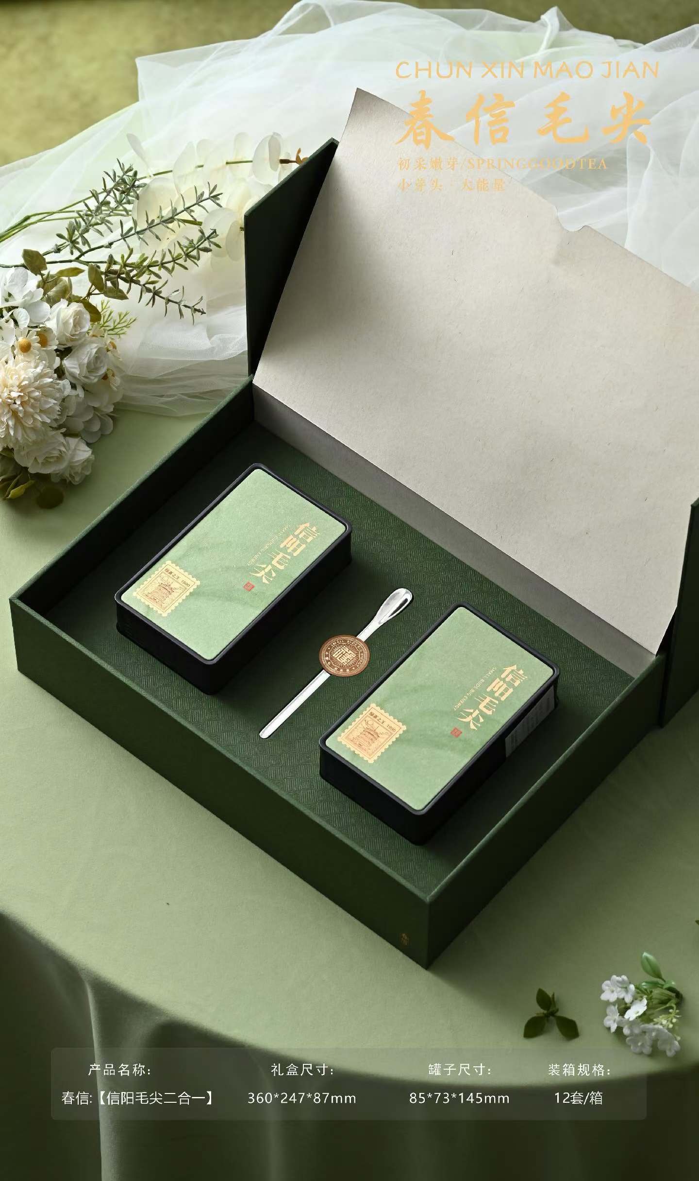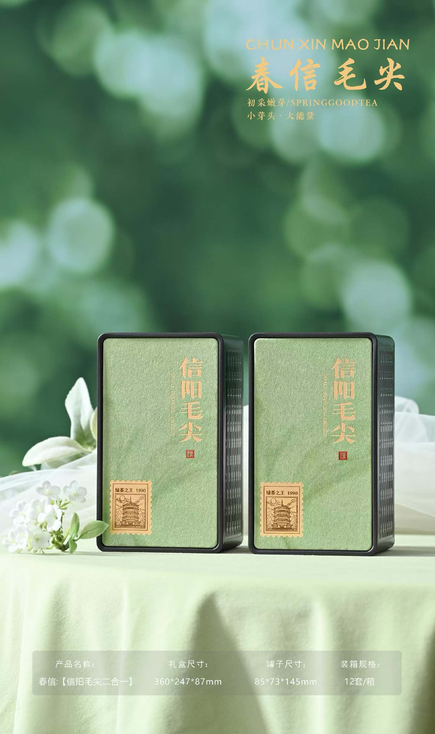 38元一套 / 一箱12套 春信001【信阳毛尖专版 两方罐 浅绿色】