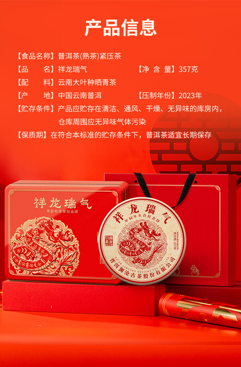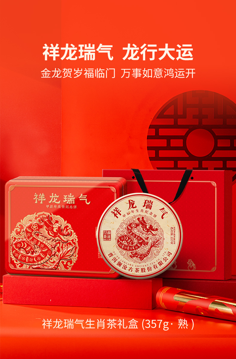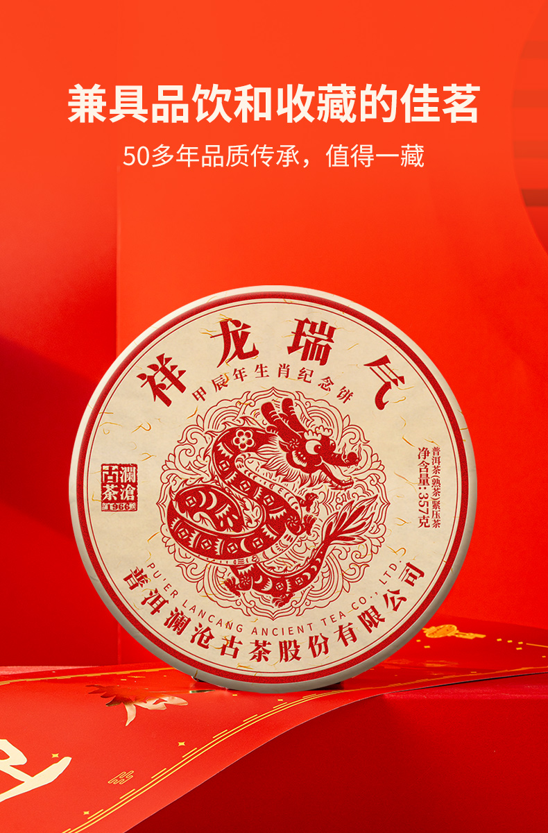 [生肖饼]澜沧古茶2024年祥龙瑞气普洱熟茶357g