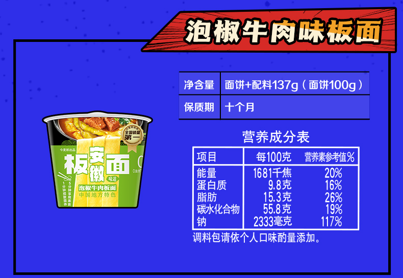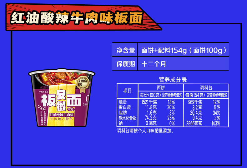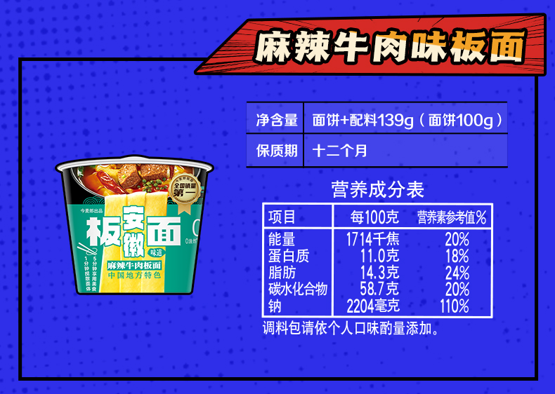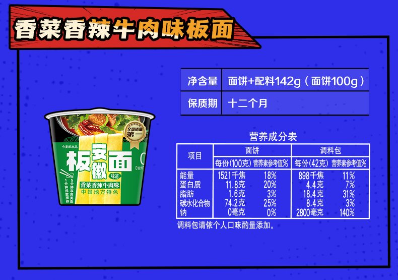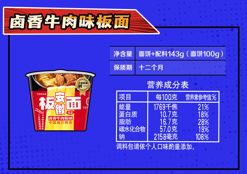 【店铺专享】今麦郎方便面香辣牛肉安徽板面 非油炸面饼