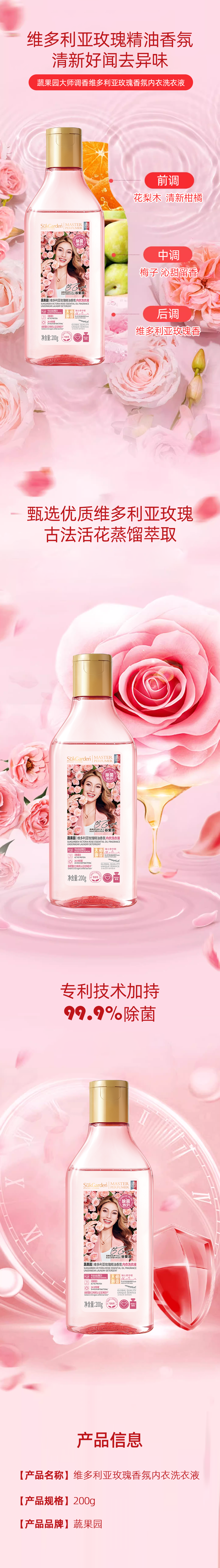 蔬果园维多利亚玫瑰精油香氛内衣洗衣液200g【21003697】