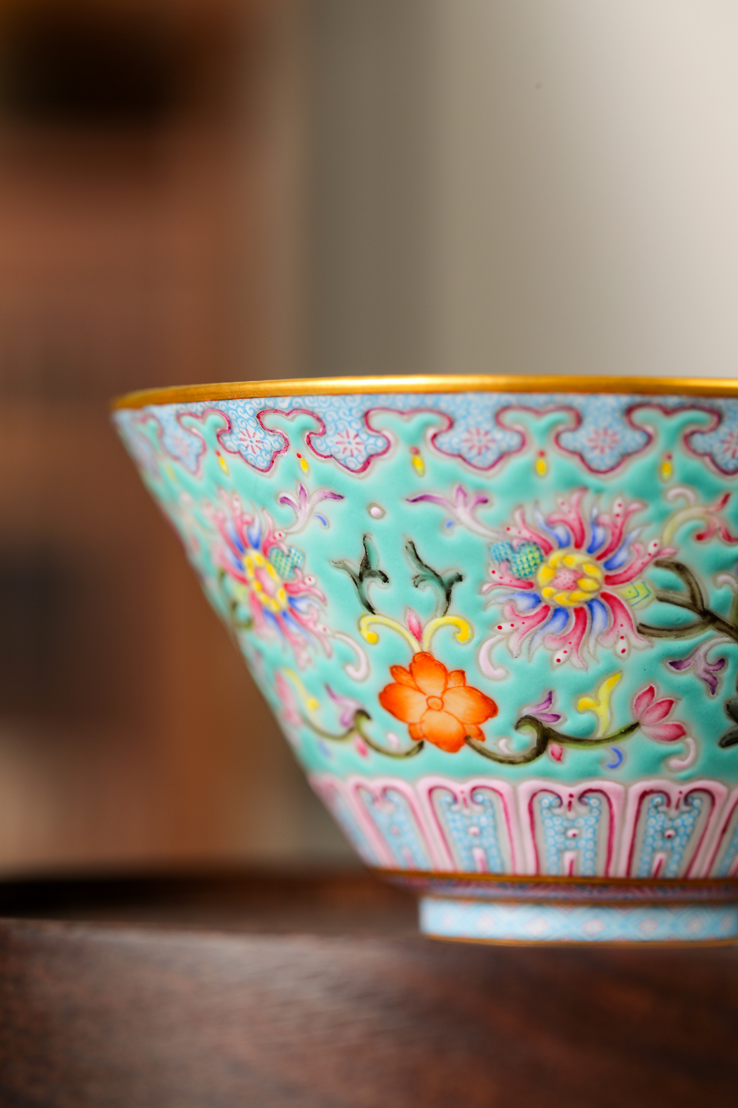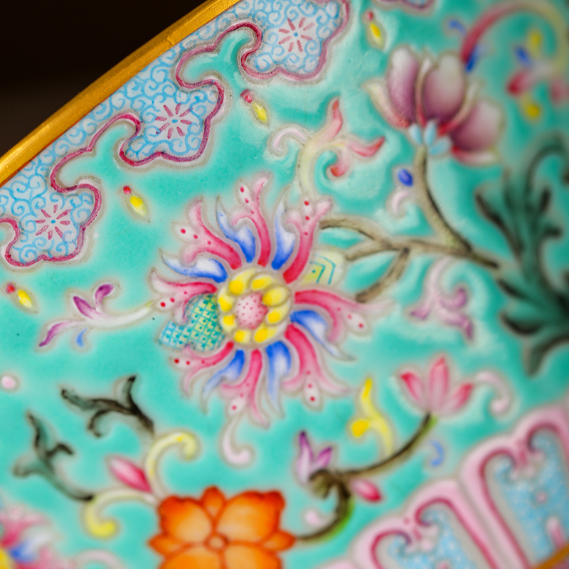 宋瓷影青浅盘半刀泥刻绘花纹 花开富贵