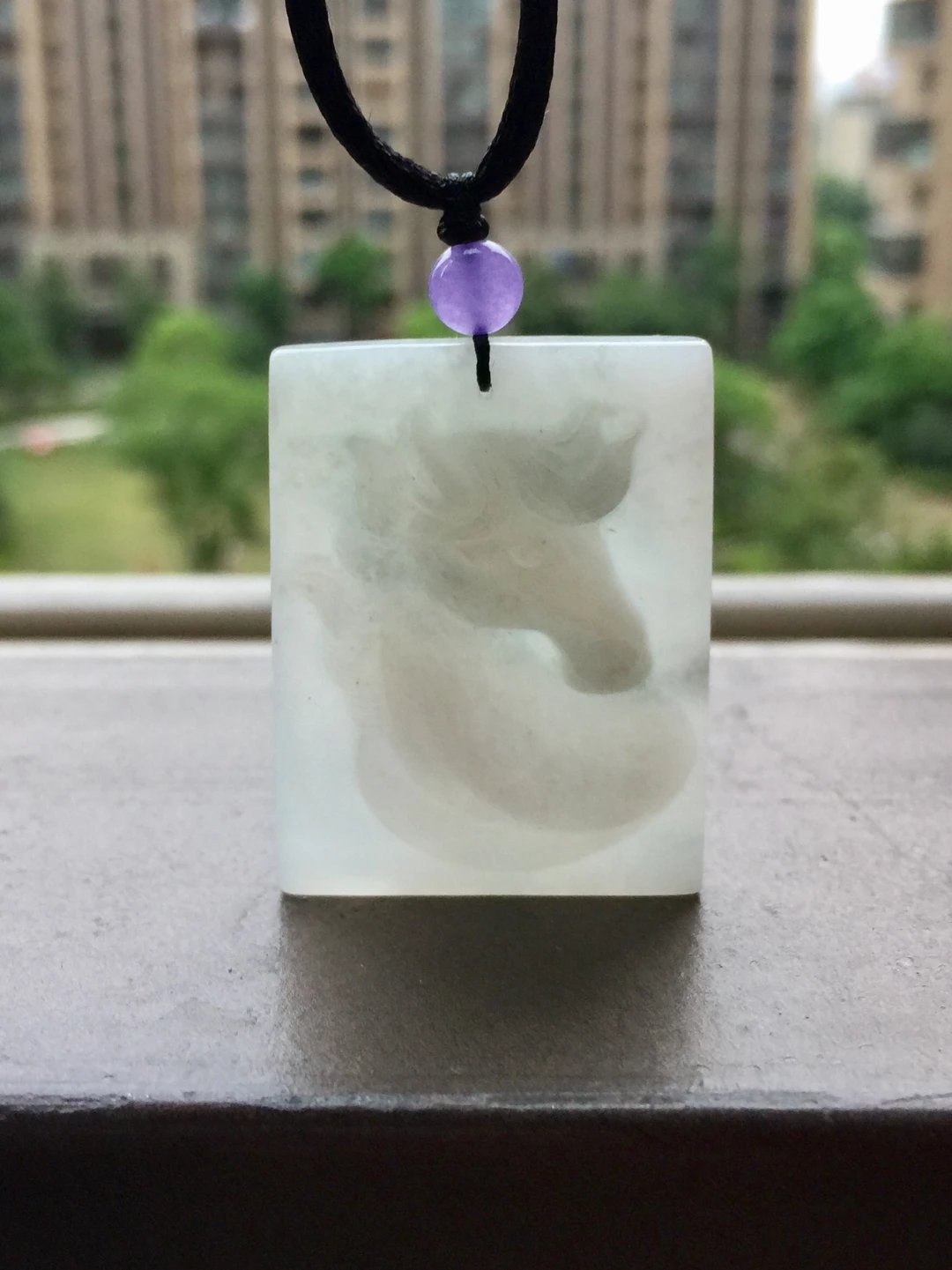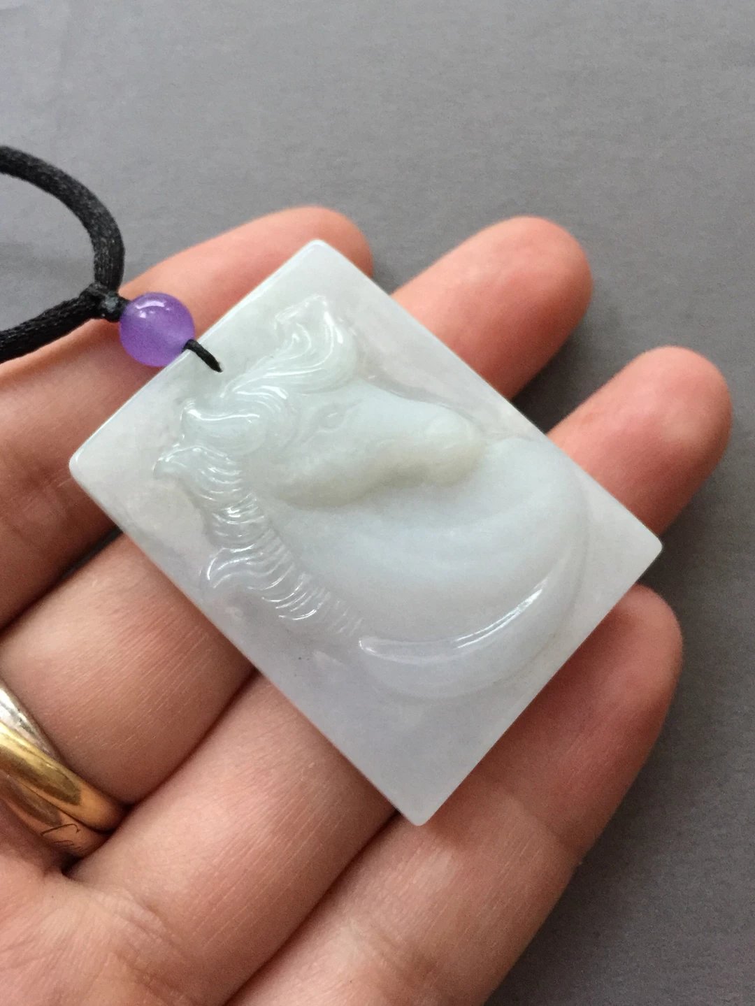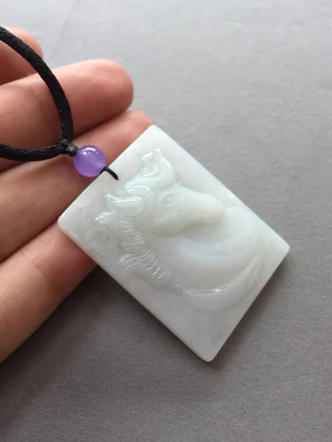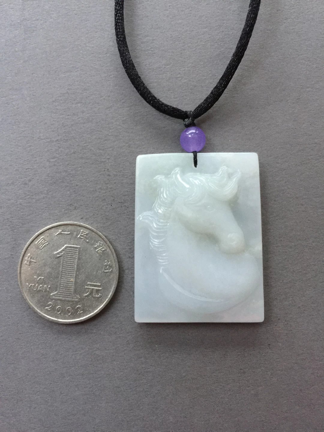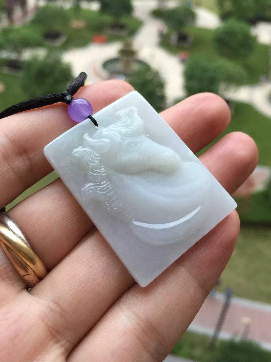 一块漂亮的翡翠马牌,马到成功,41.5×31.5×8.2mm。方正大气的尺寸,立体精雕,马儿磨砂质感,实物特别漂亮,糯种细腻,古典气质,只要小四价位,男女皆宜,推荐
