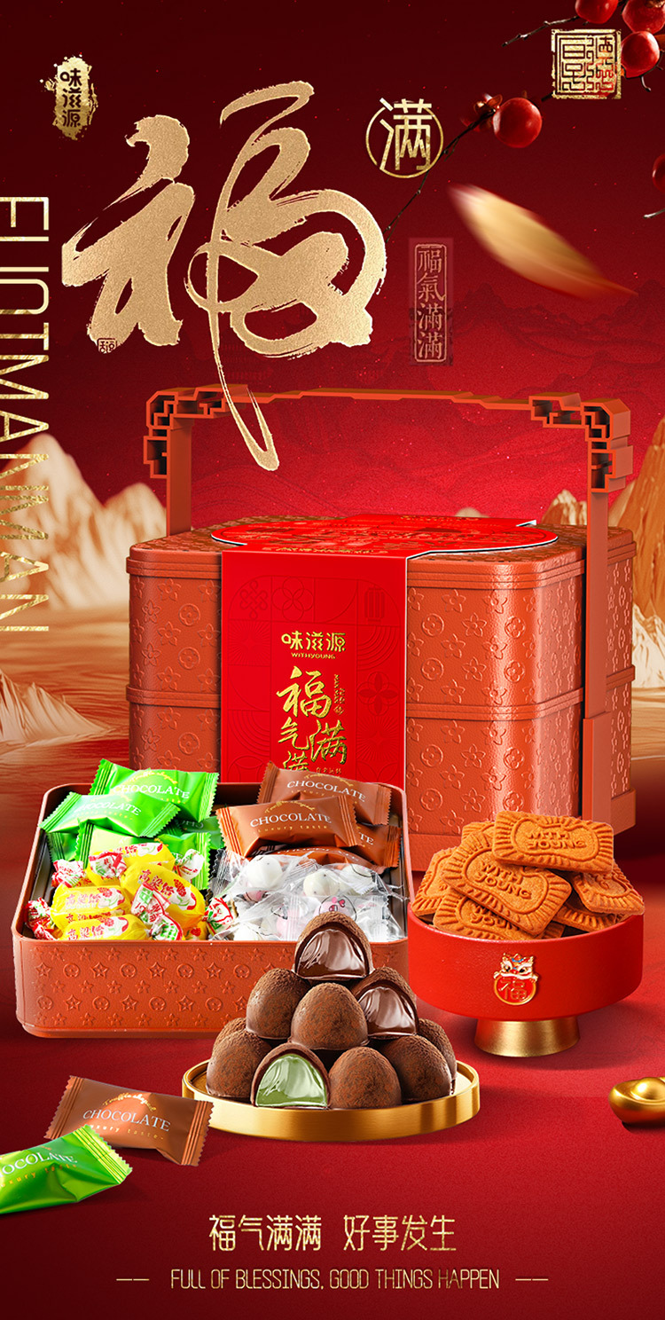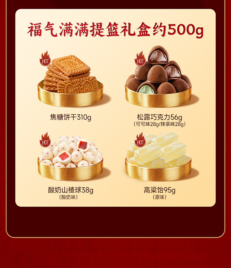 【2层提篮❗️福气满满 好事发生】味滋源饼干糖果礼盒 巧克力焦糖饼干年货 零食大礼包