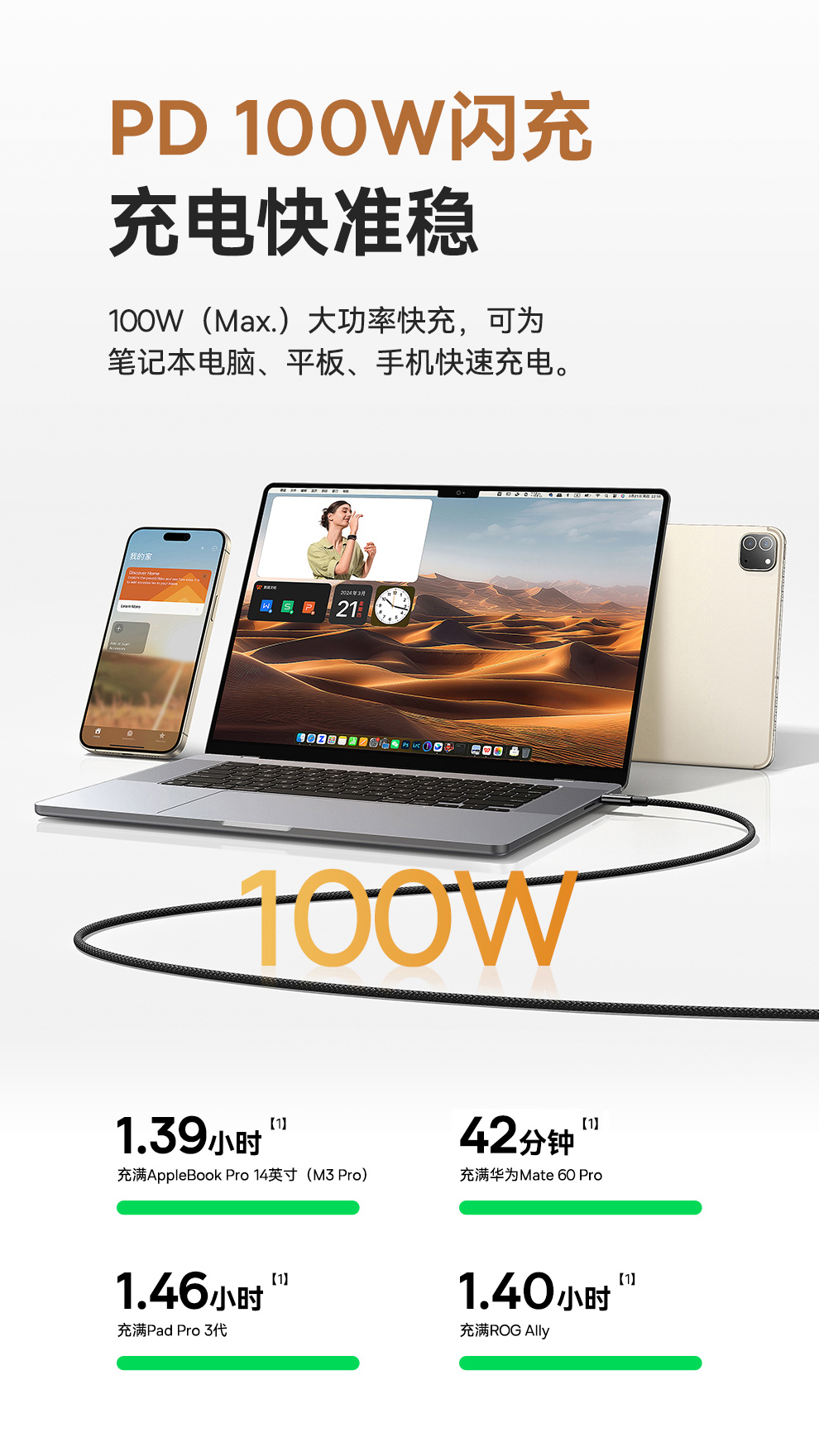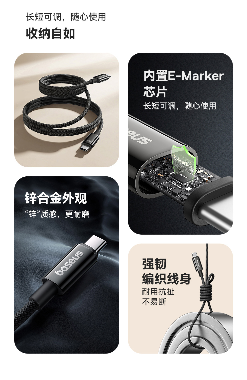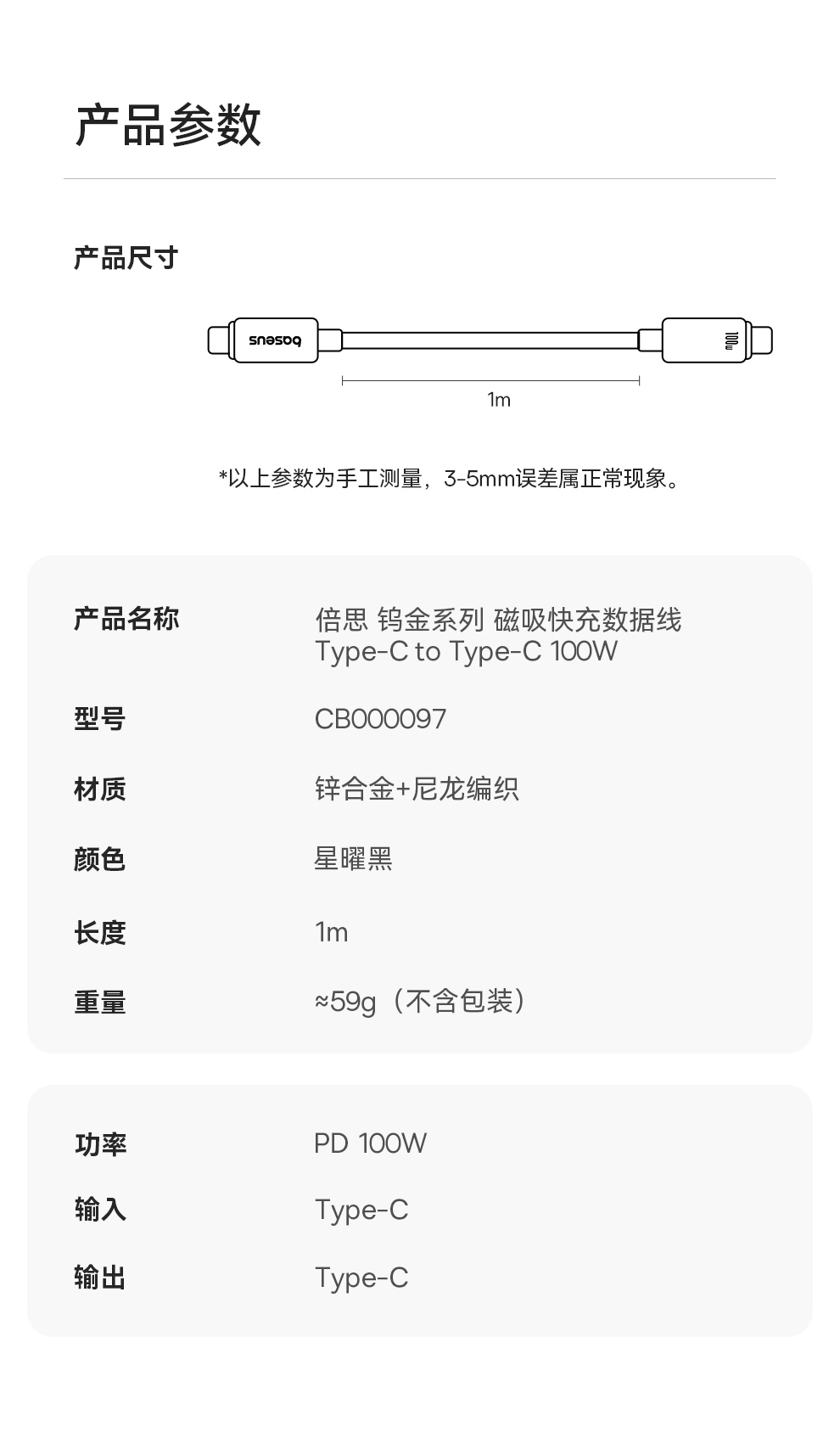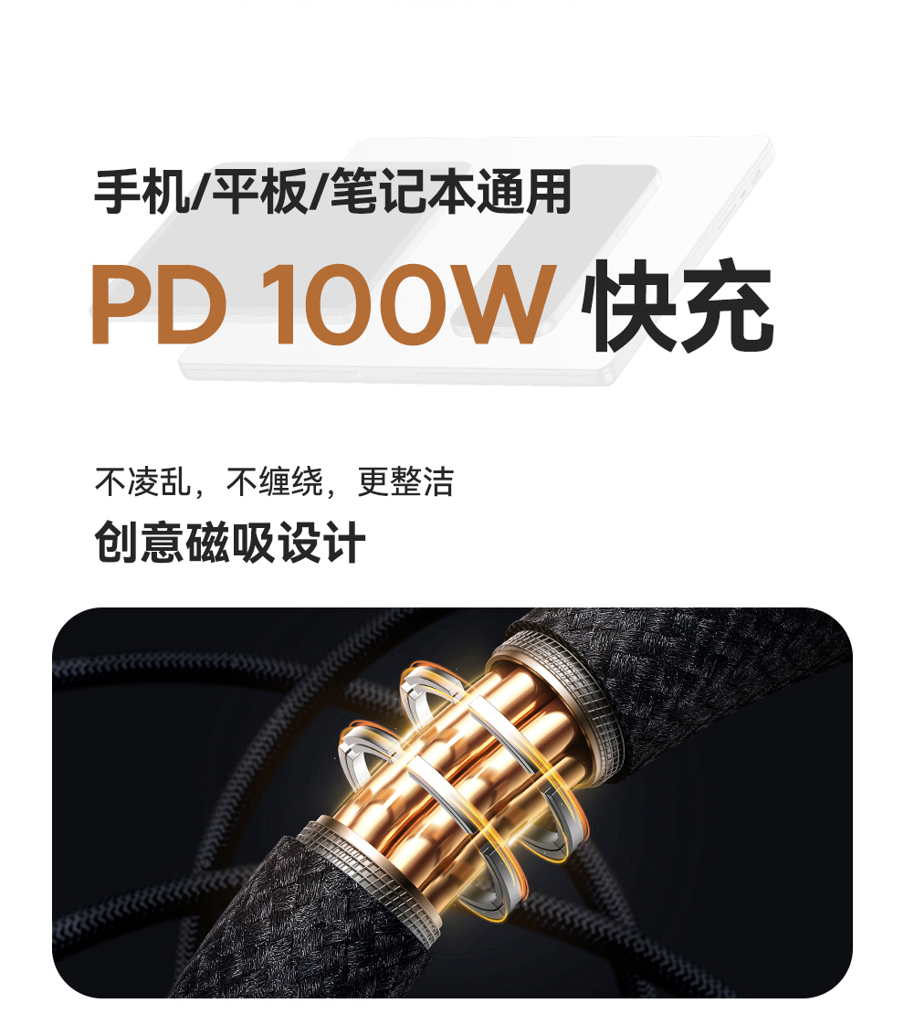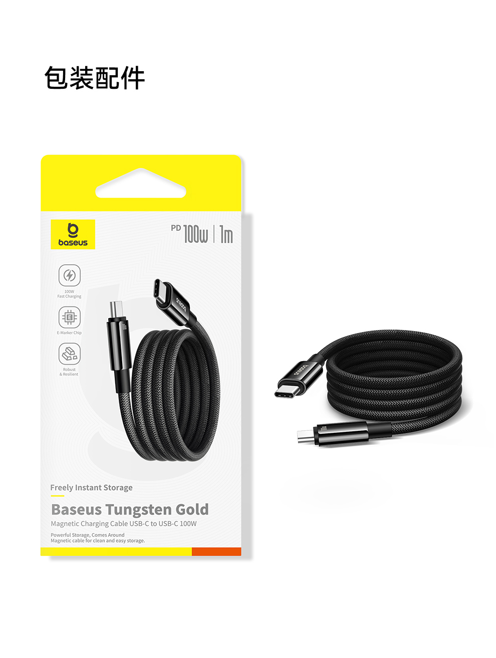 倍思 钨金系列 磁吸快充数据线 Type-C to Type-C 100W