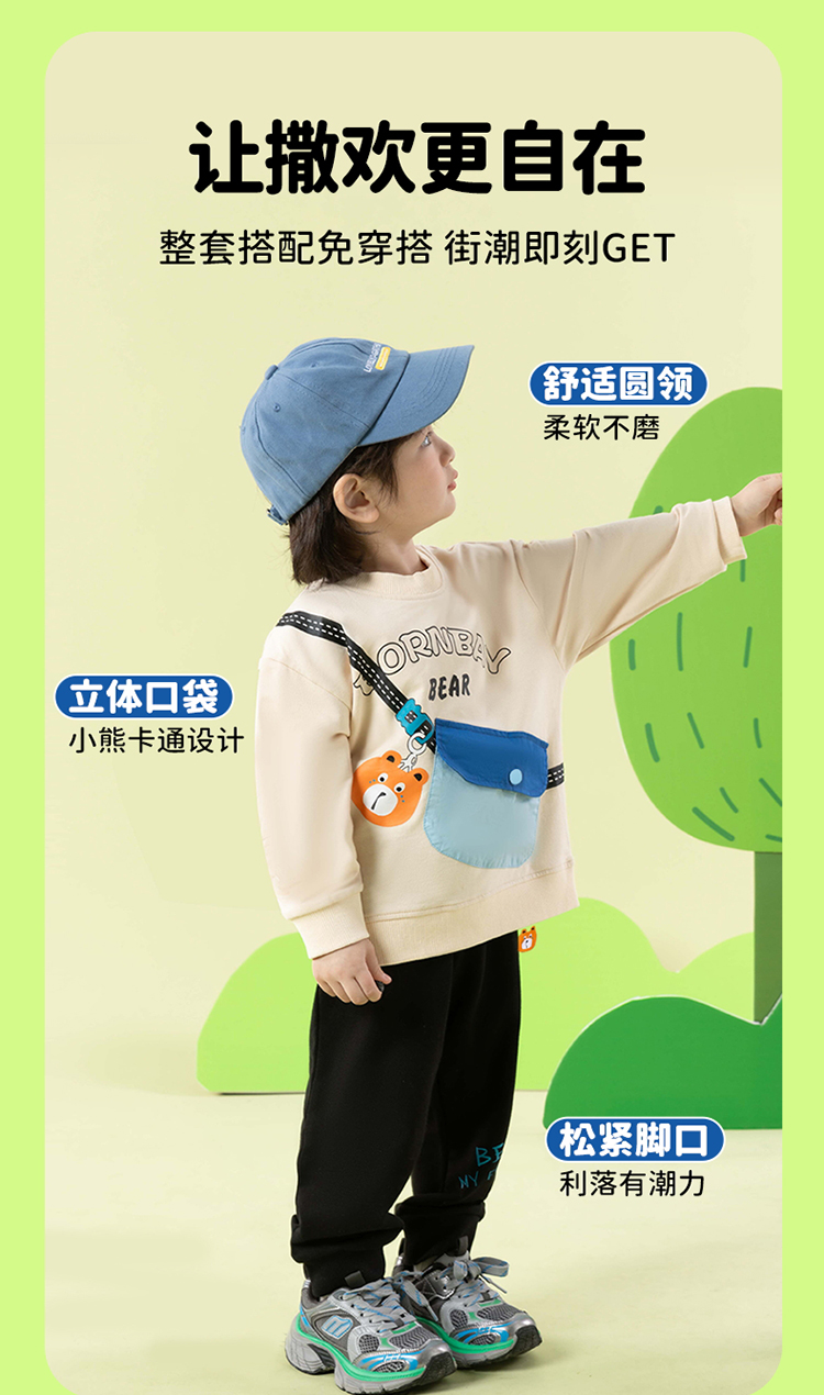 贝贝怡童装儿童春秋套装卫衣长裤新款洋气男童两件春装ZB1ET009