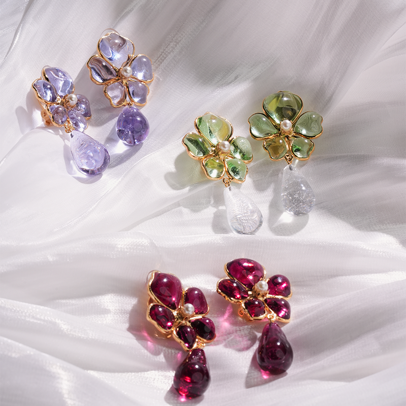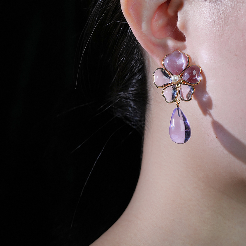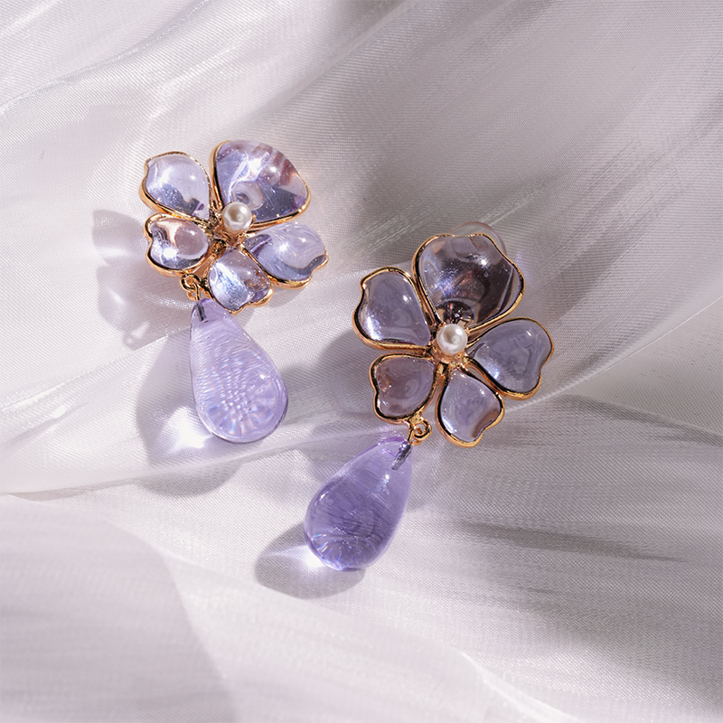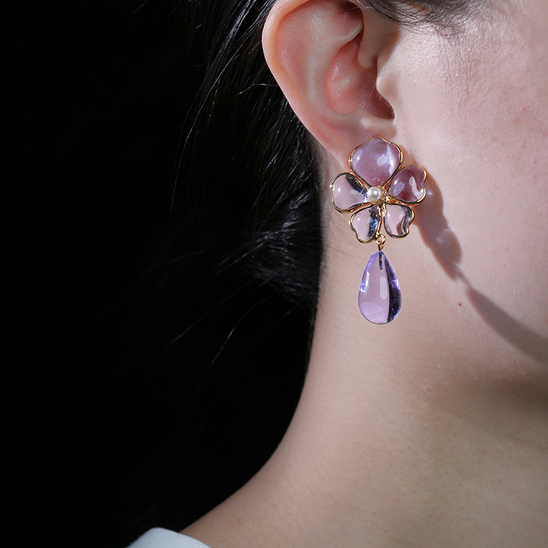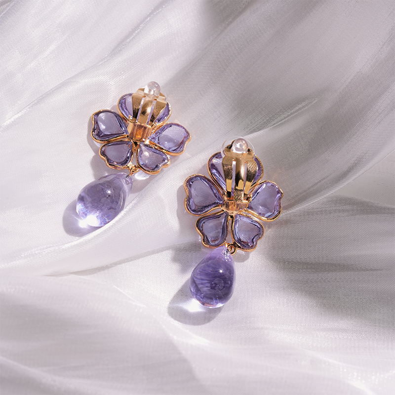 北京仓|Gripoix Paris-Tropical Flower-透光紫 耳夹[法国设计师]