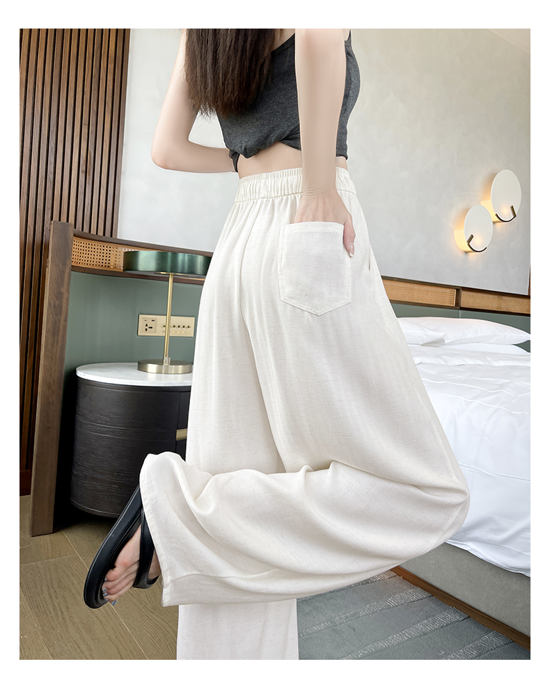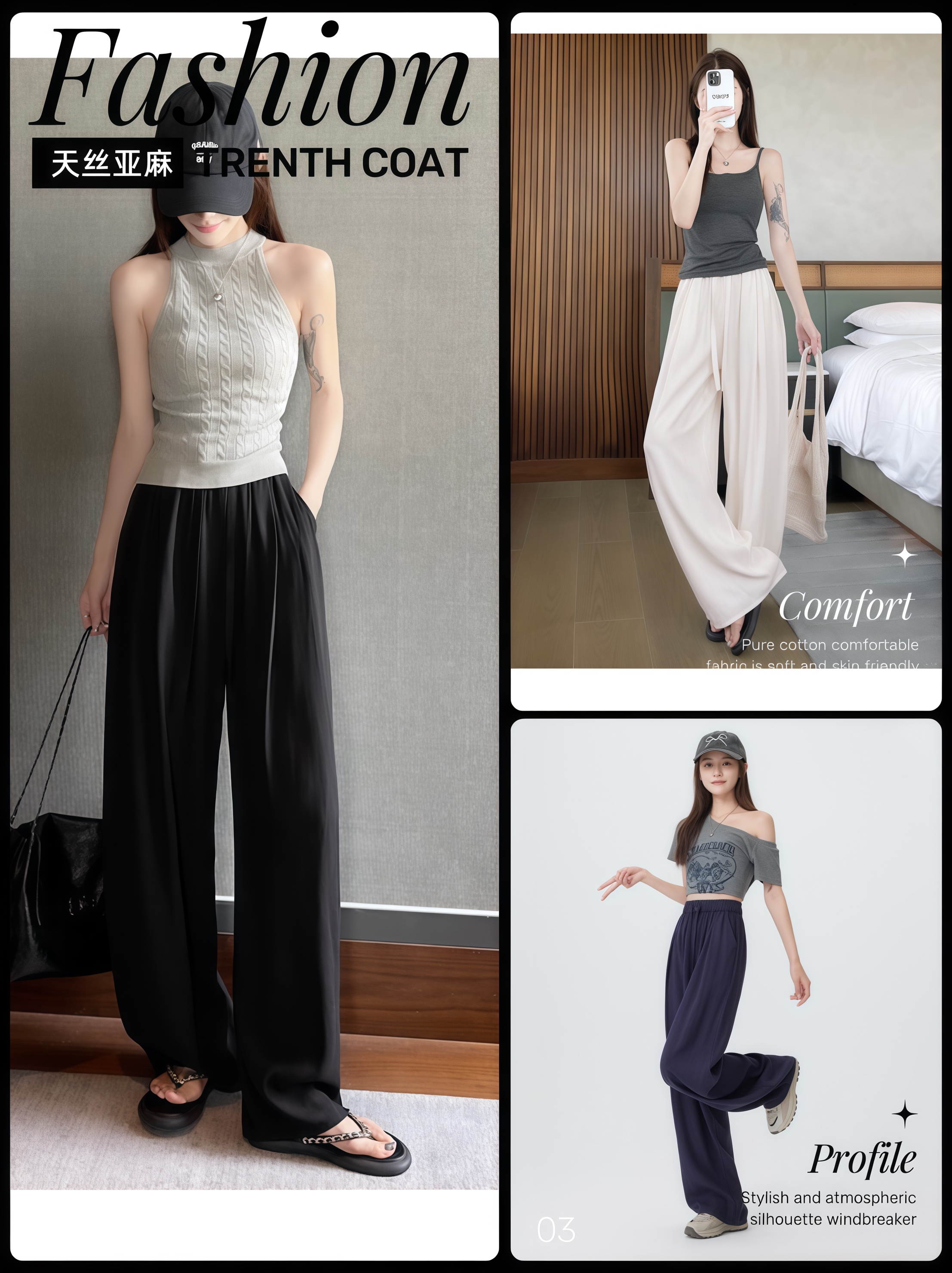 春夏高级感穿搭【透梦-天丝亚麻弯刀阔腿裤】天丝亚麻混纺面料柔软透气、宽松版型遮肉显瘦、高腰垂感设计不挑身材、轻松拉长腿部线条、舒适与氛围感双在线