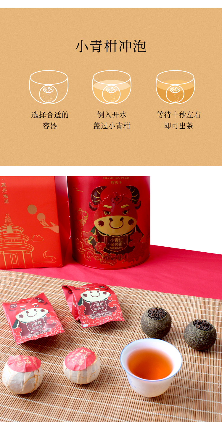 牛气冲天 正宗新会天马头采小青柑普洱茶特级云南熟茶陈皮桔普茶叶礼罐装