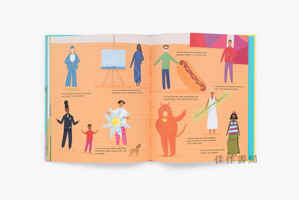 这本色彩斑斓、趣味横生的书籍面向4至8岁的儿童,但同样吸引各年龄段的读者。它提出了以下问题:艺术家是谁?他们为什么创作艺术?他们使用什么材料?他们借助什么工具?他们的艺术作品有哪些形式?