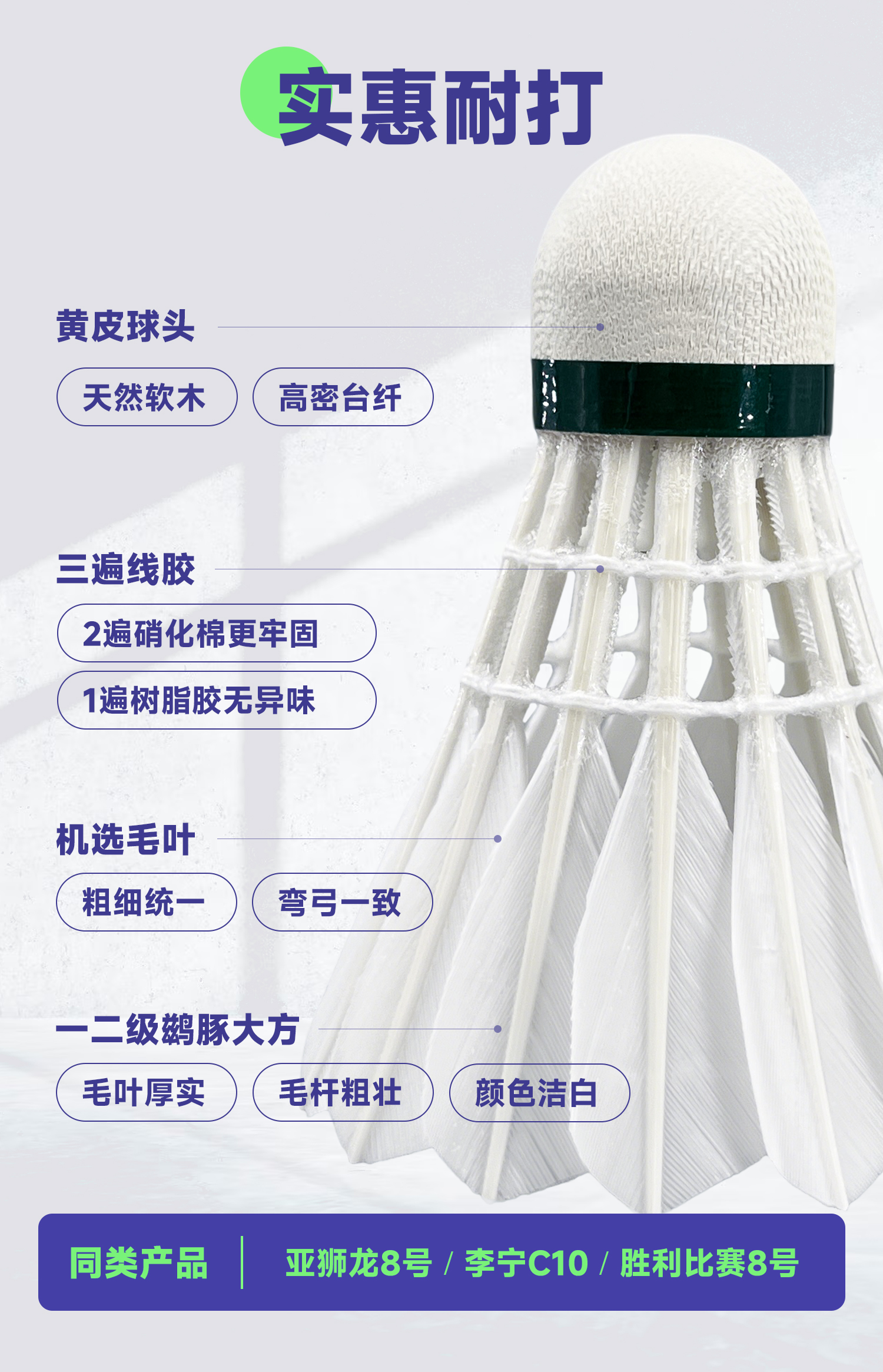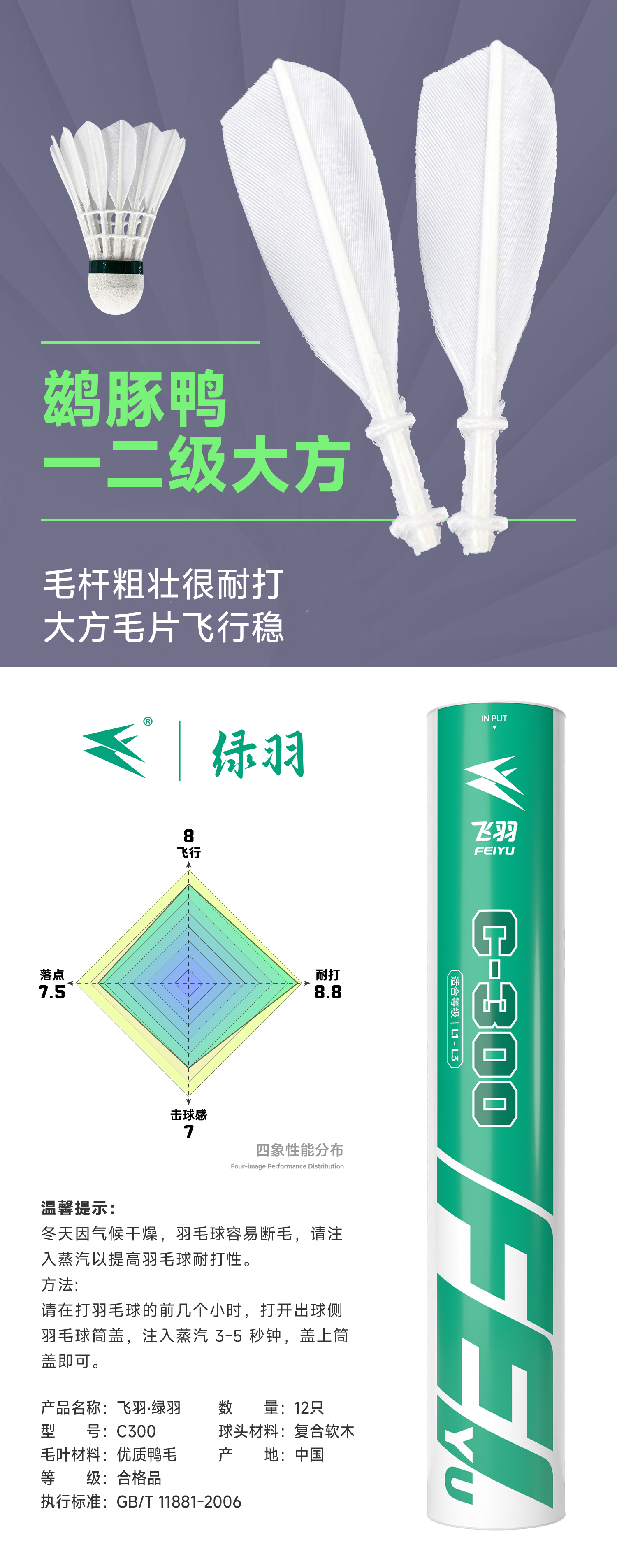 飞羽 羽毛球 训练级 优质鸭毛 绿羽-C300