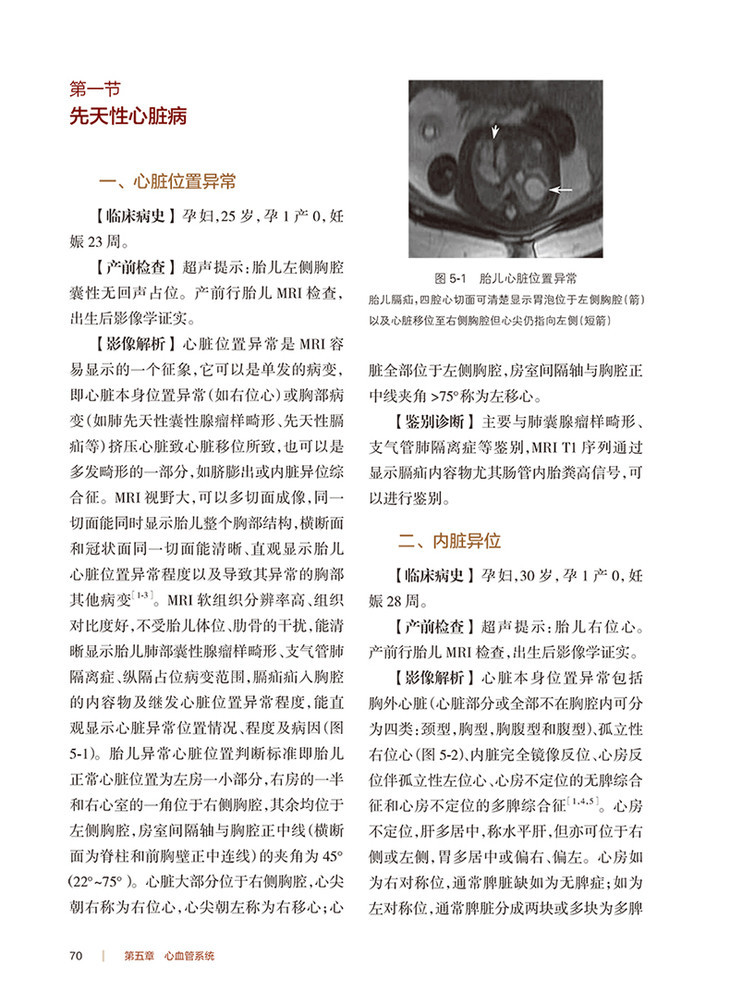 编者从实际工作出发,主要收录了日常工作中所遇到的常见病例和部分少、罕见病例,结合磁共振与超声图像,针对胎儿正常结构的磁共振影像解剖、胎儿全身各系统疾病及畸形的影像特点,进行全面的影像解析及鉴别诊断要点分析,具有较高的学术价值。鉴于胎儿磁共振与目前常规使用的胎儿超声在临床畸形筛查中优势互补,本书详细介绍了两种方法的临床应用,主要内容为胎儿各系统先天畸形及疾病的磁共振、超声表现及典型图像;诊断要点及鉴别诊断。以胎儿各个系统具体病例的磁共振表现及超声表现;以图像为主,配以详细的图像说明。