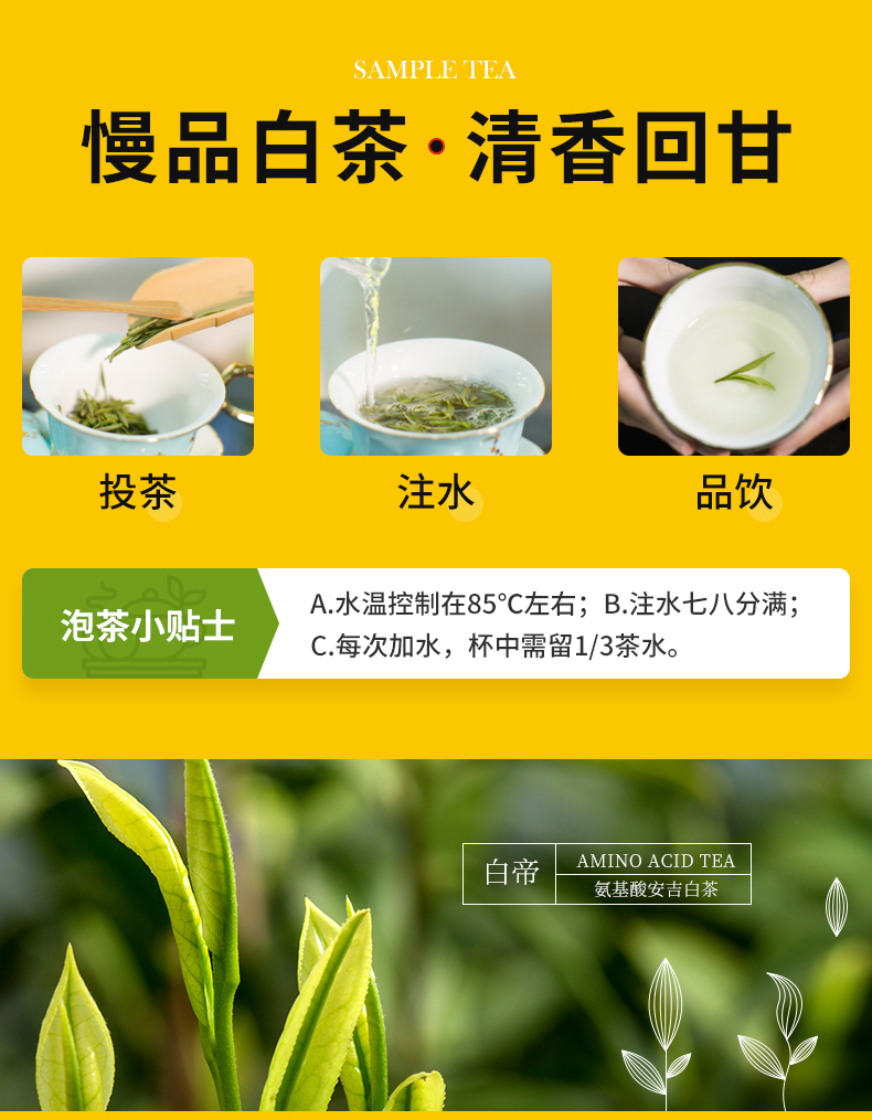 美:安吉白茶是茶中仙子,每年只采10多天,一芽一叶,视觉享受。